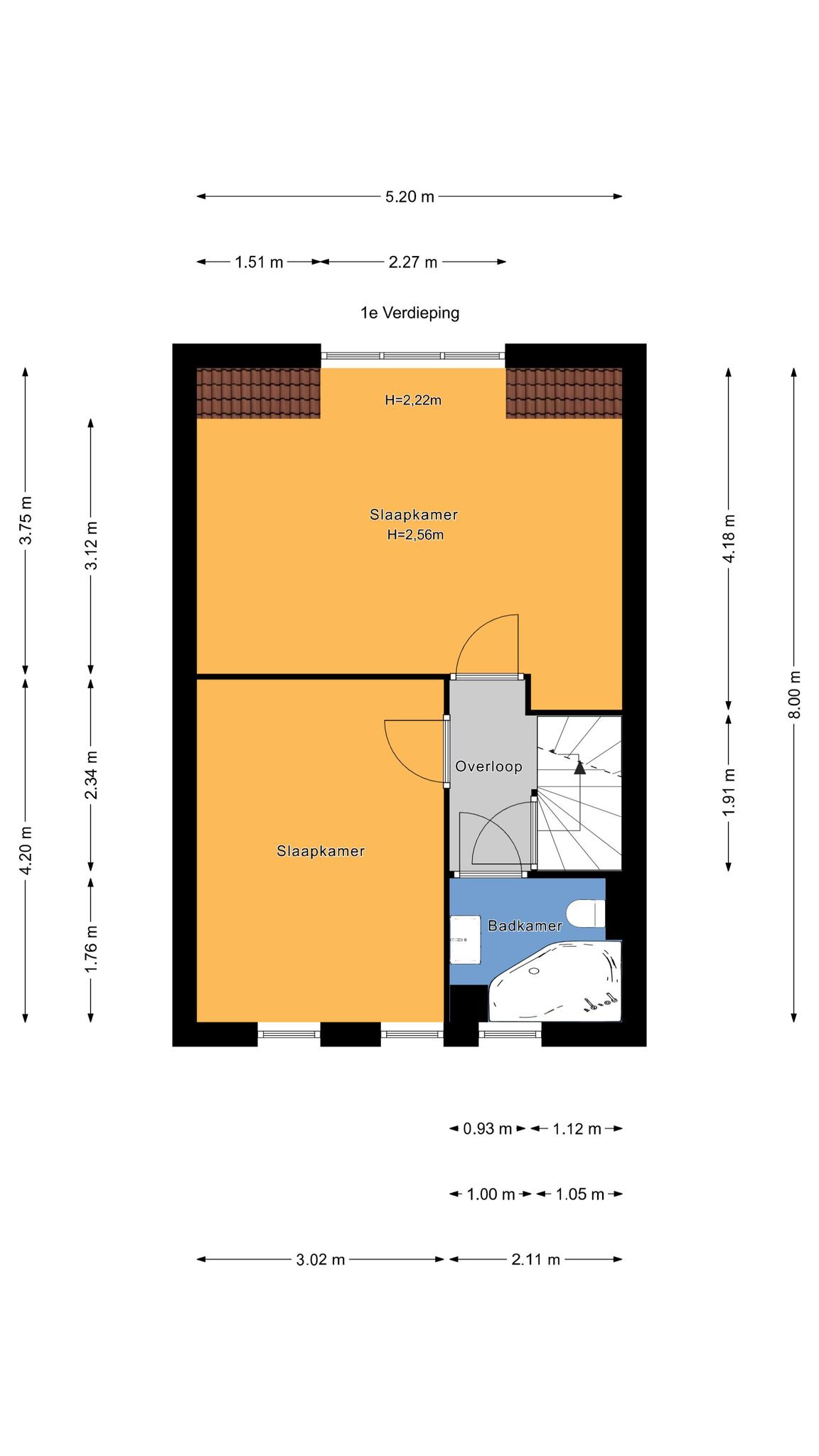 Op deze verdieping zijn 2 ruime slaapkamers. De slaapkamer aan de achterzijde beslaat de volledige breedte van de woning en is extra ruim dankzij de dakkapel. De gehele eerste verdieping is voorzien van een nieuwe laminaatvloer.