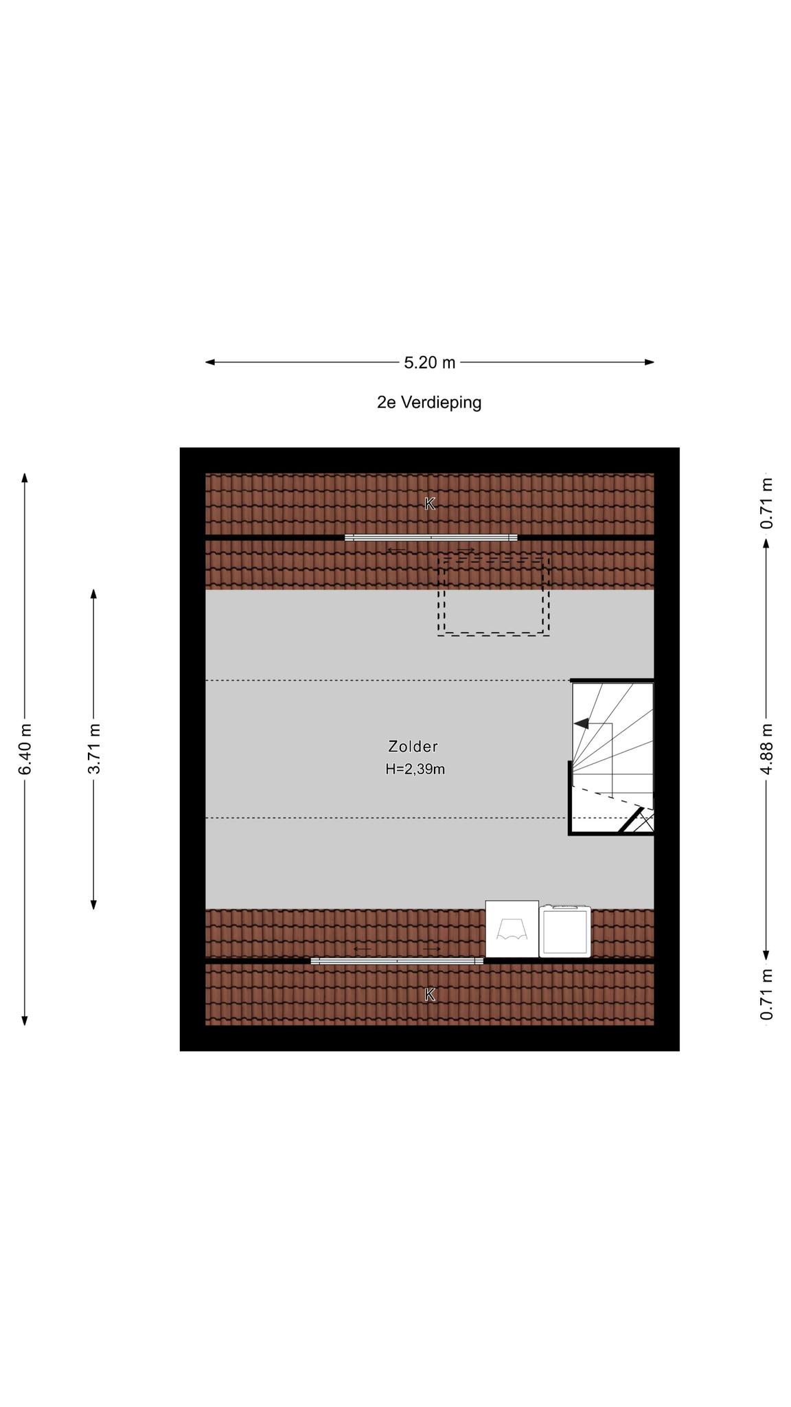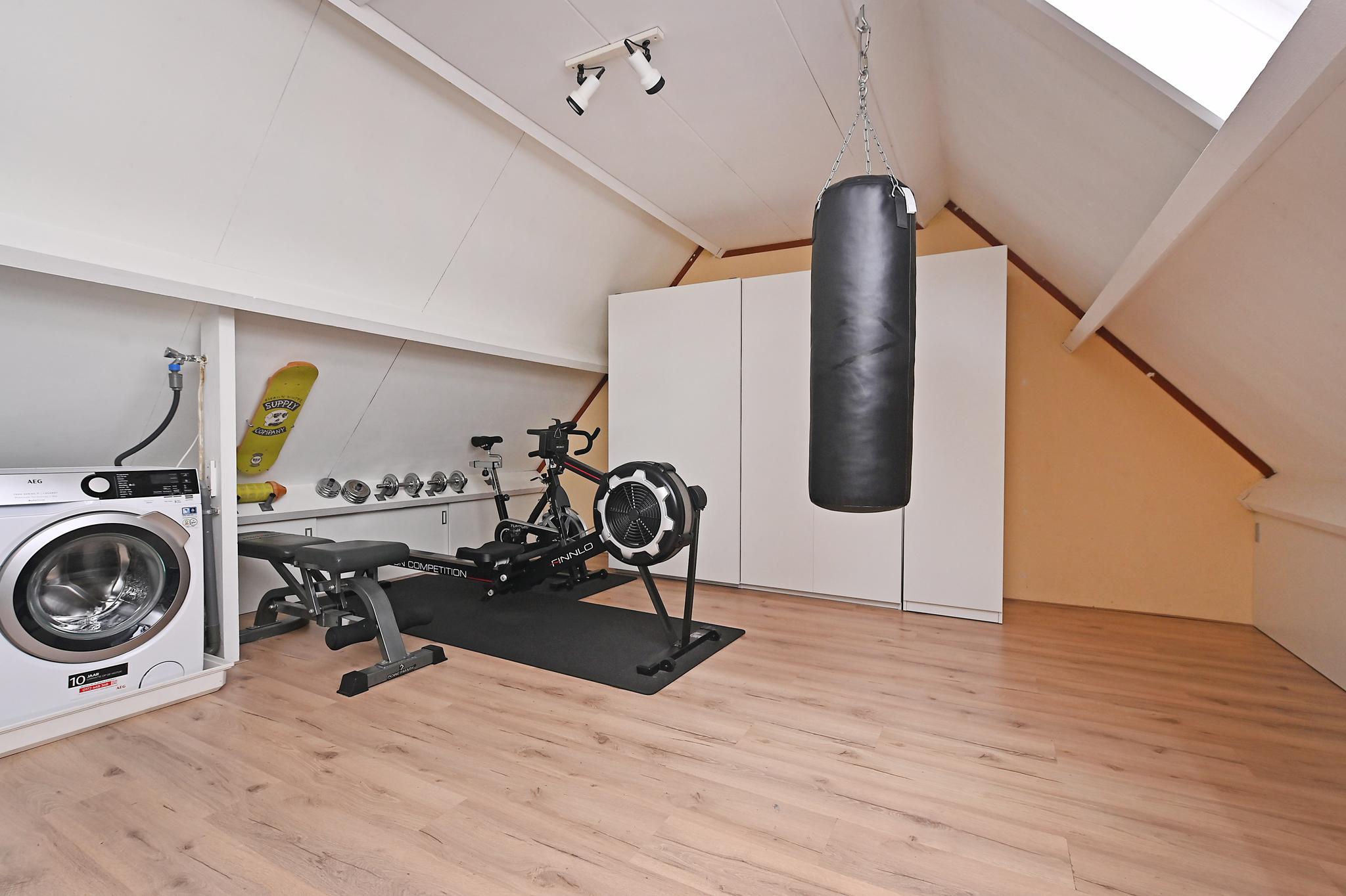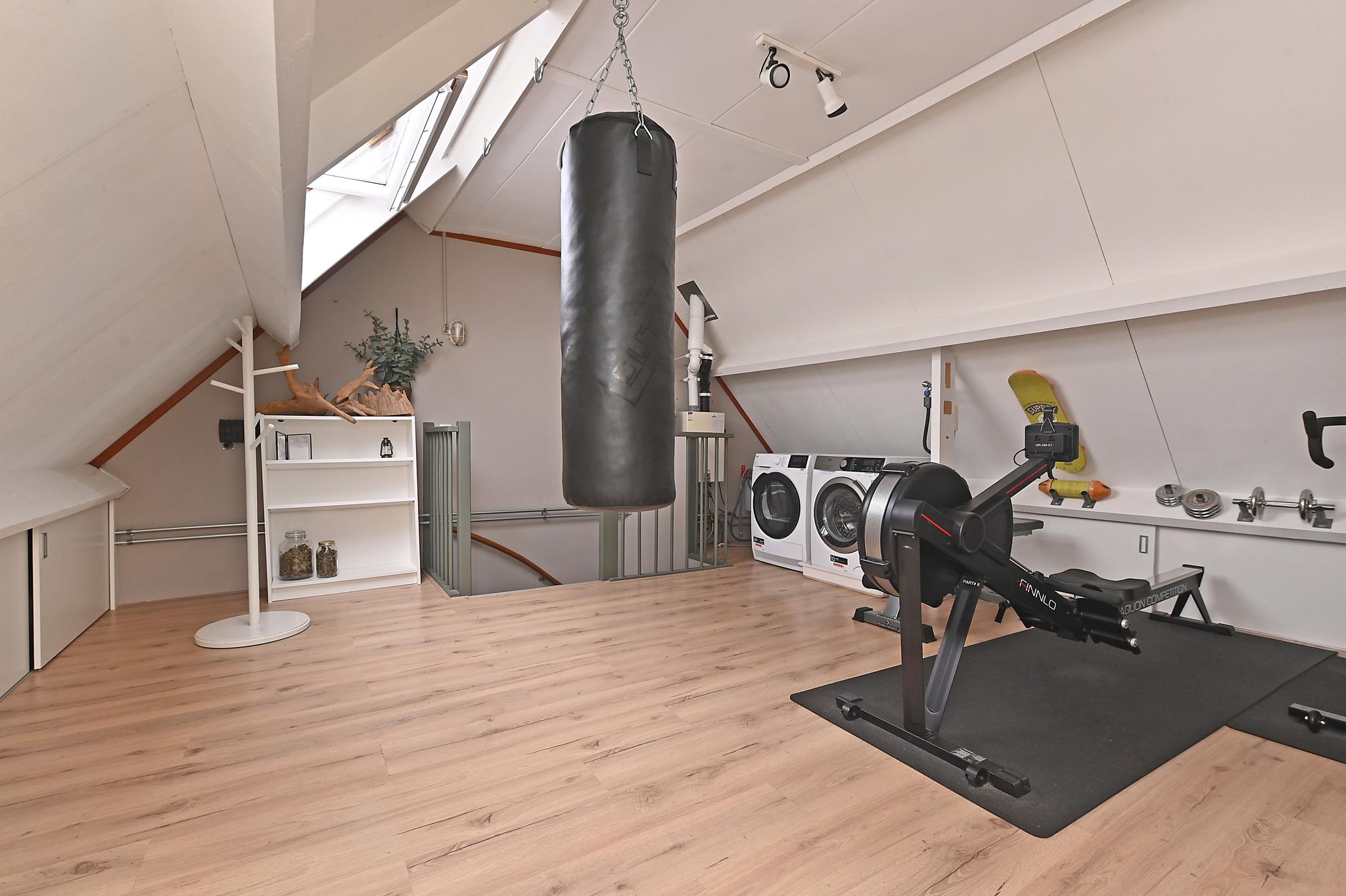 Deze ruime, open verdieping met dakraam, is zeer geschikt als extra slaapkamer, hobbyruimte of werkplek. Ook zijn hier de cv-ketel en de aansluitingen voor wasmachine en droger.