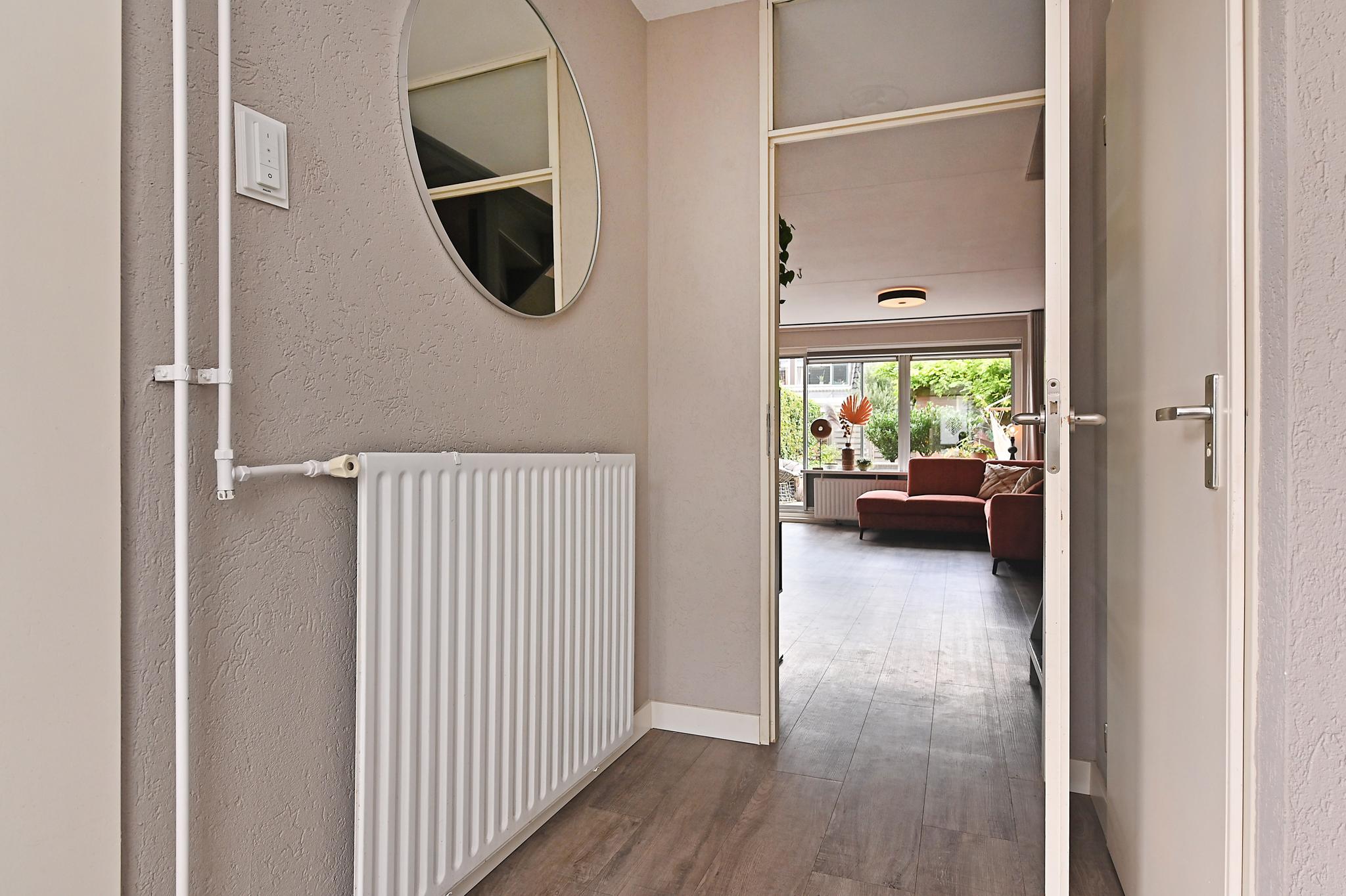 Bij binnenkomst valt meteen de lange raampartij op, die zorgt voor een prettige lichtinval in de entree.