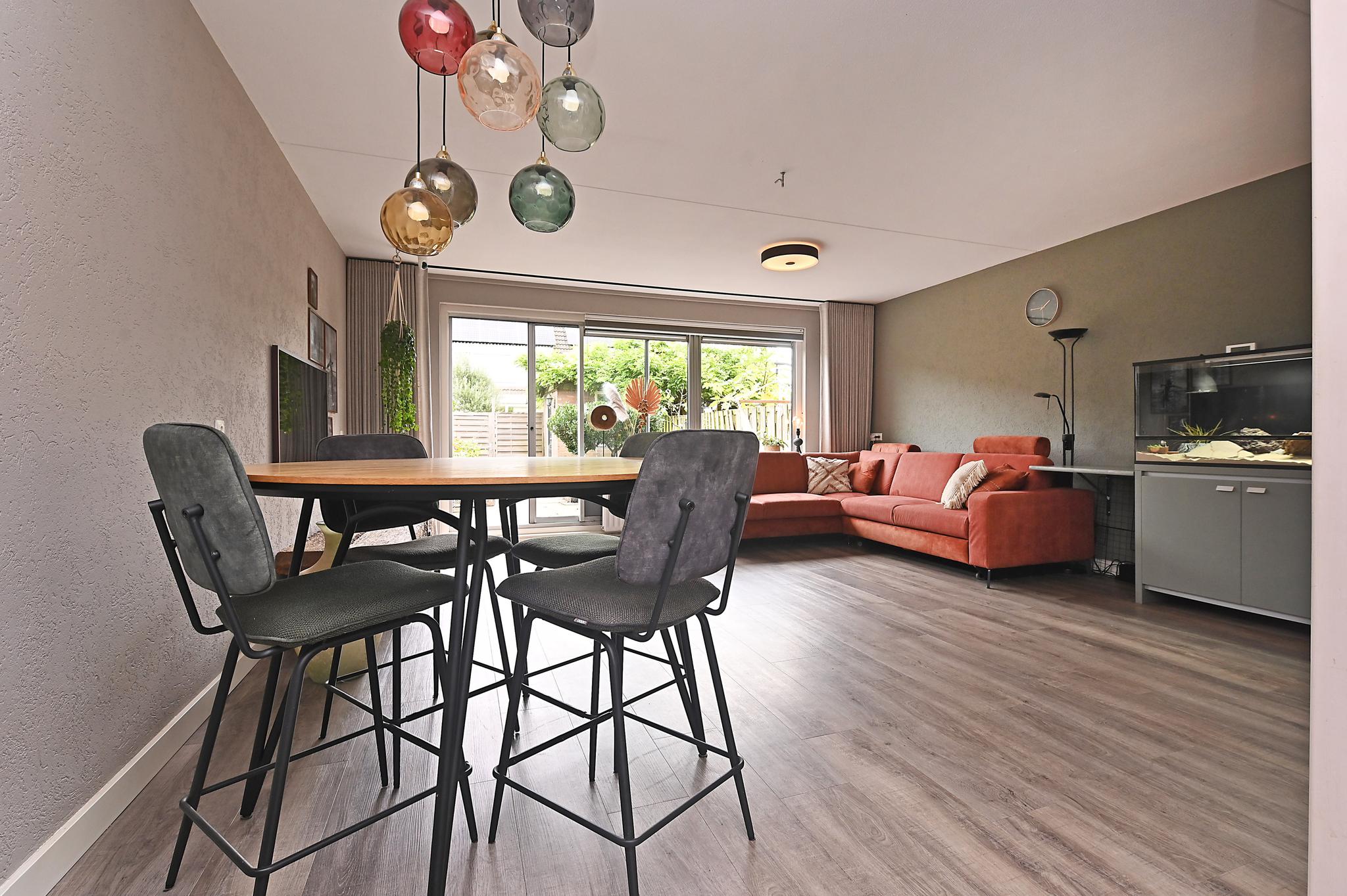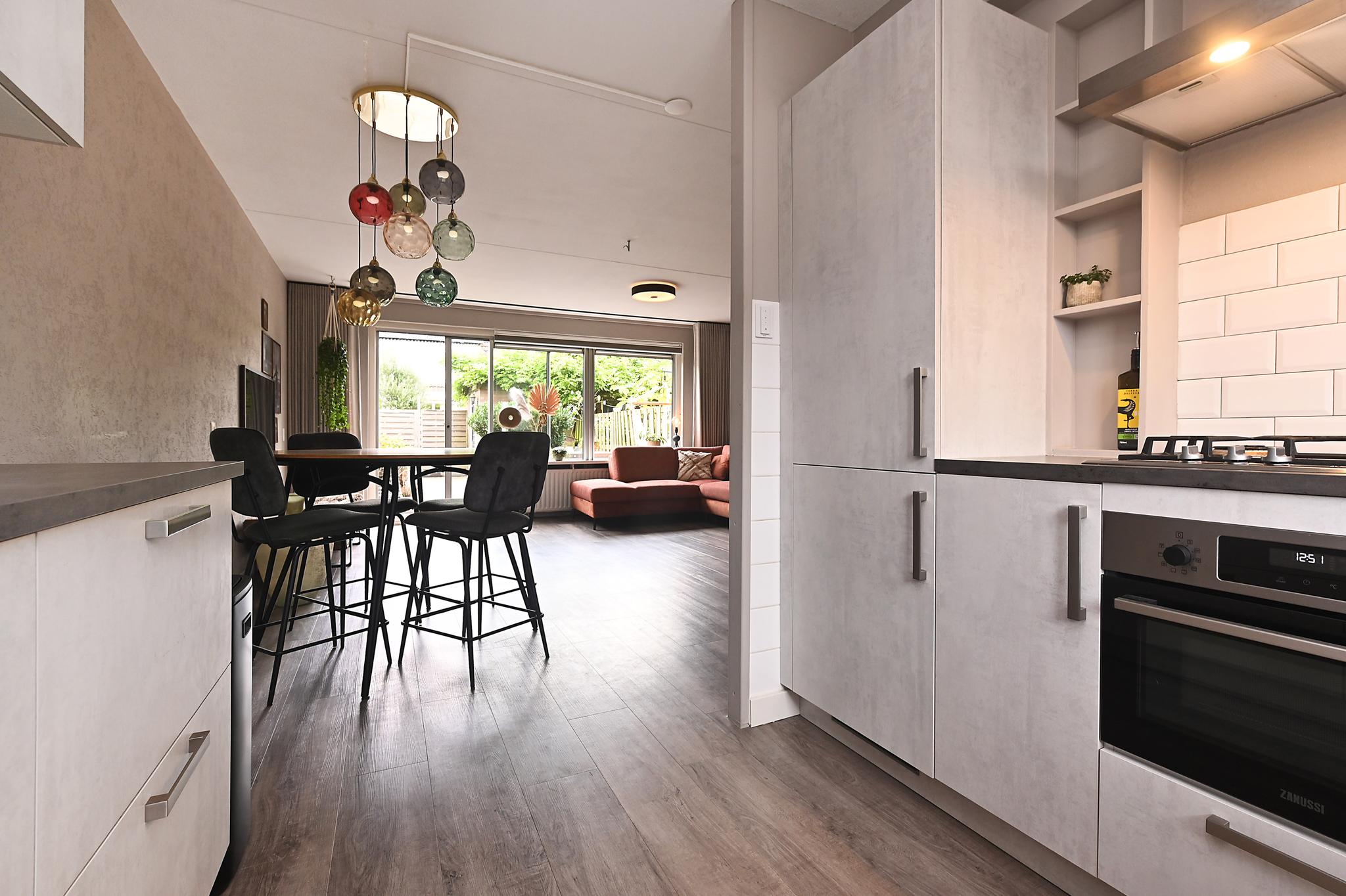 Wat een fijne woonkamer! Deze ruimte is in 2022 onder handen genomen en afgewerkt met een keurige PVC vloer en een moderne U-vormige keuken aan de voorzijde. Deze indeling zorgt voor een ideale plek om te koken, te ontspannen of gezellig samen te komen. De open keuken (2022) is perfect voor een echte chef, met voldoende werk- en opbergruimte! De keuken is voorzien van een 5-pits gaskookplaat, vaatwasser, combi-oven en koel-vriescombinatie.