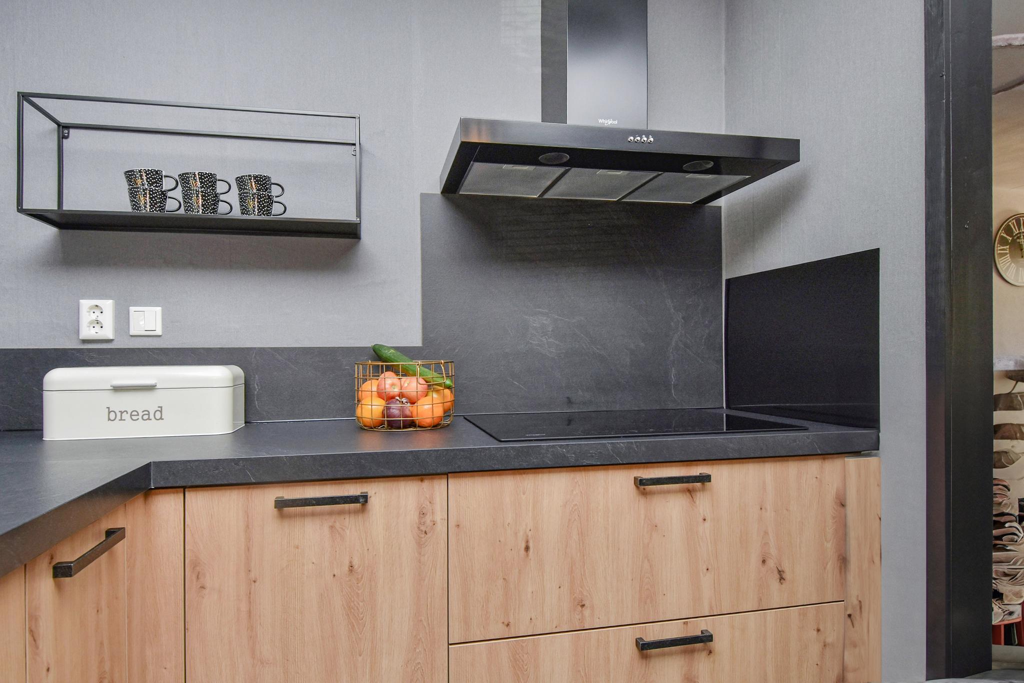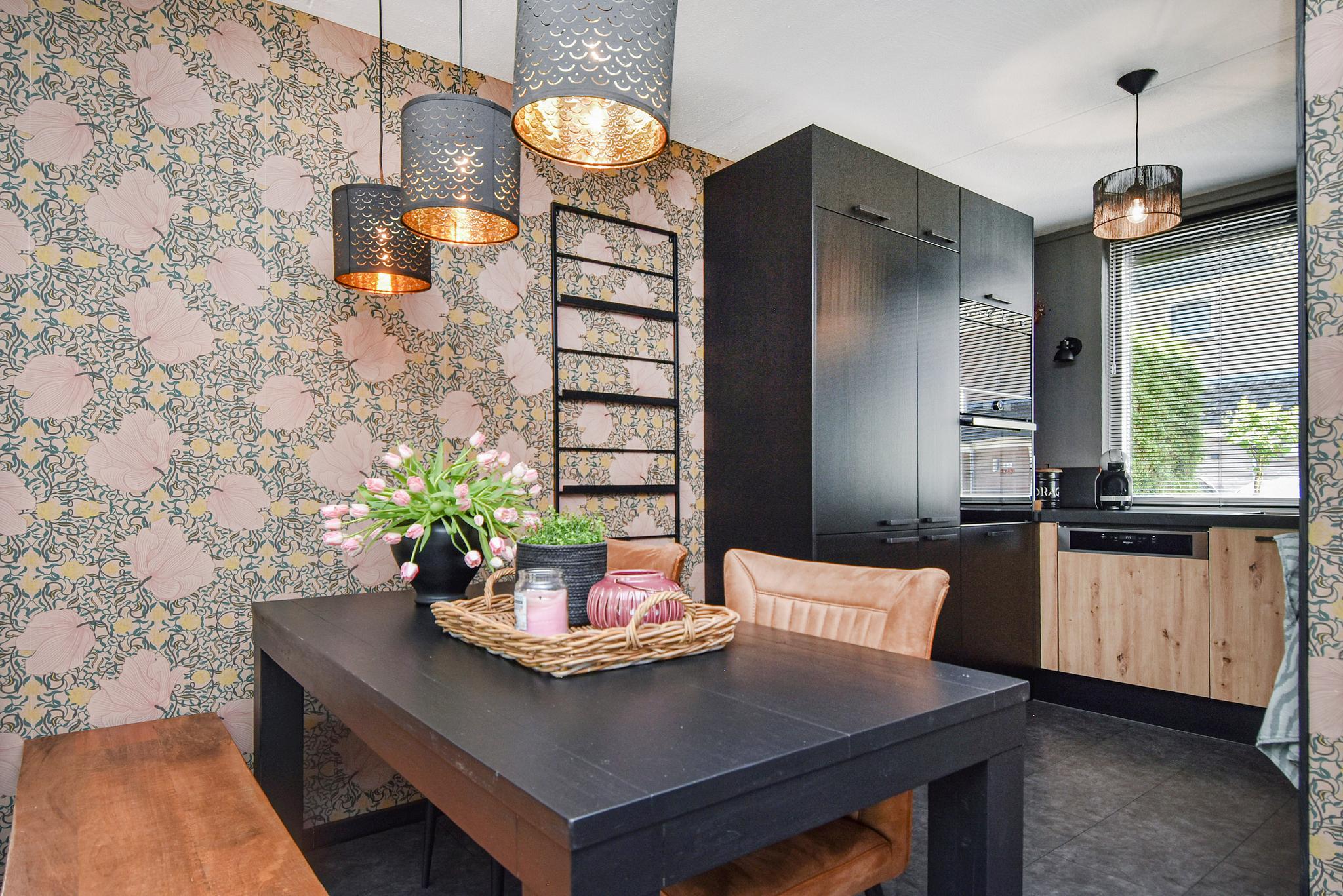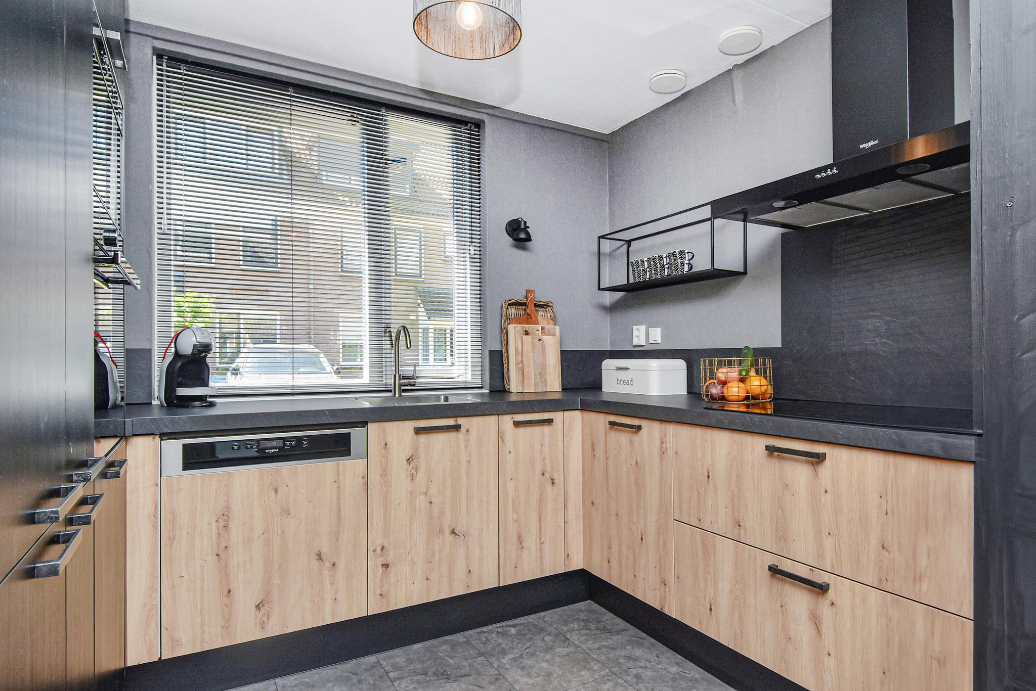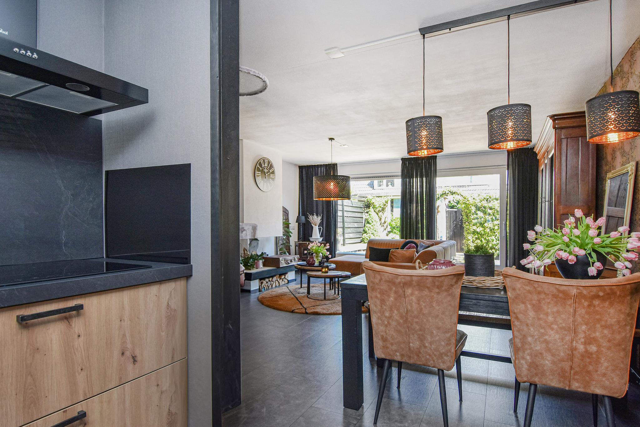 Keuken: Open aan de voorzijde gerealiseerde keuken met een U-vormige inrichting, in 2022 vernieuwd met een moderne en stoere uitstraling, mooi aanrechtblad en voorzien van diverse inbouwapparatuur.