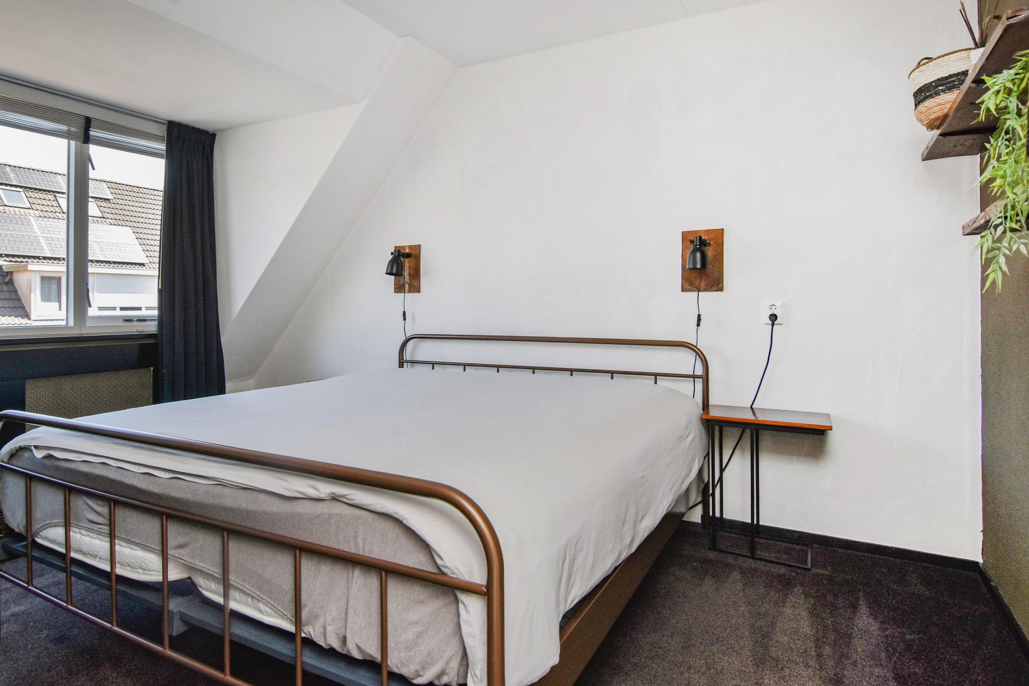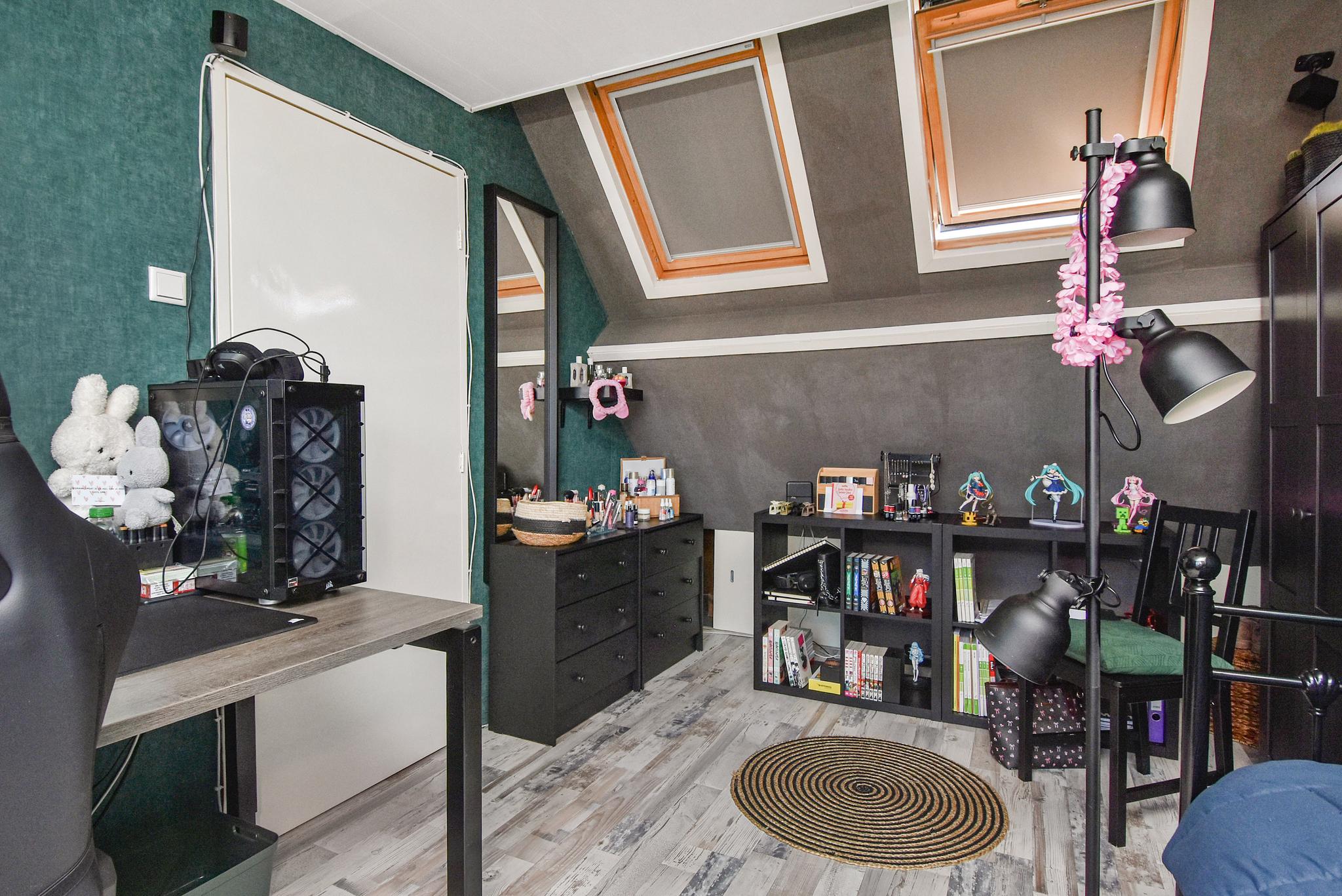 Slaapkamer: 4e leuk afgewerkte, ruime slaapkamer met dakkapel die beschikt over een elektrisch rolluik (2024) met afstandsbediening en 2 extra Velux dakramen.