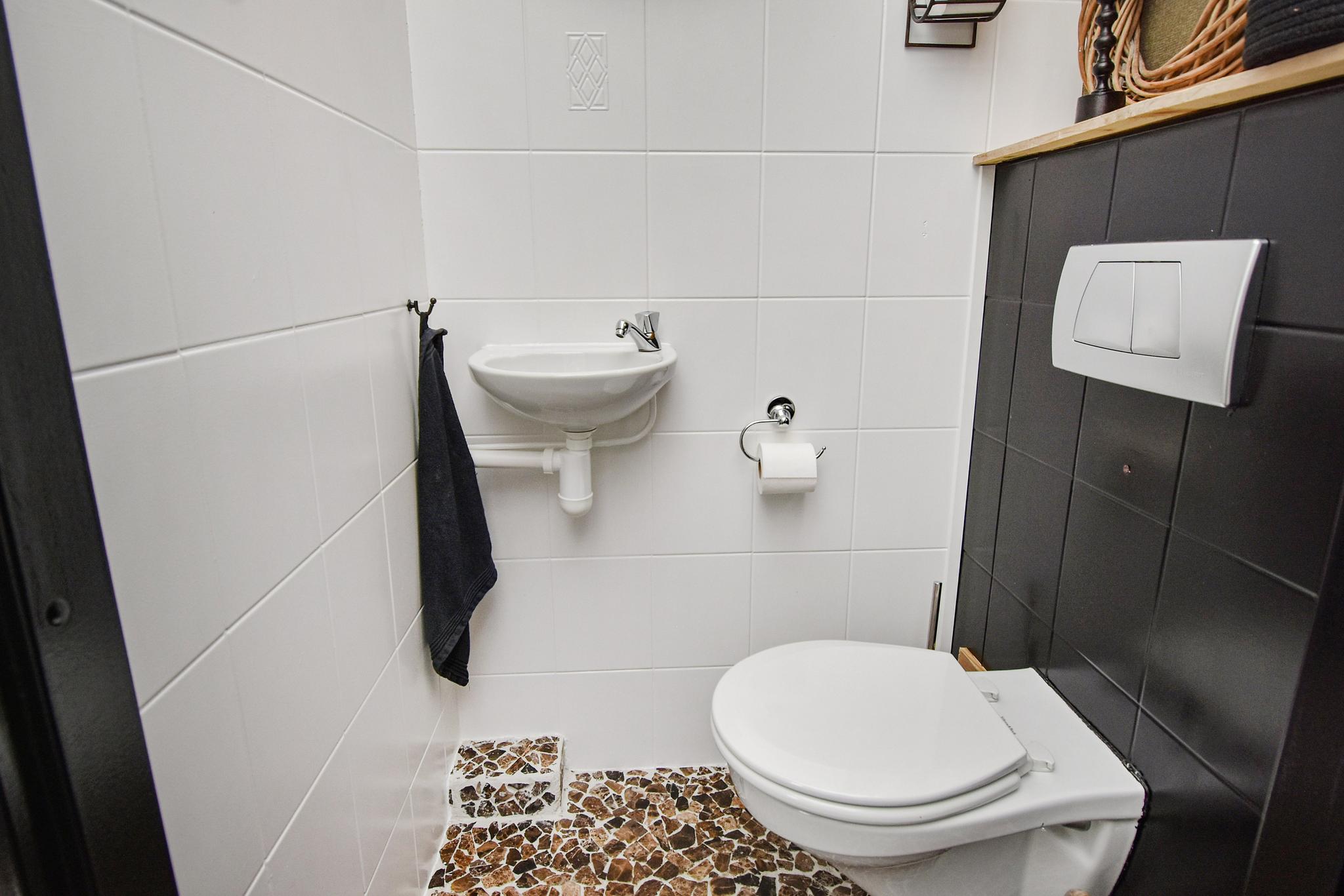Hal: Ruime hal met meterkast (uitgebreid naar 8 groepen). en modern toilet met wandcloset en wasbakje.