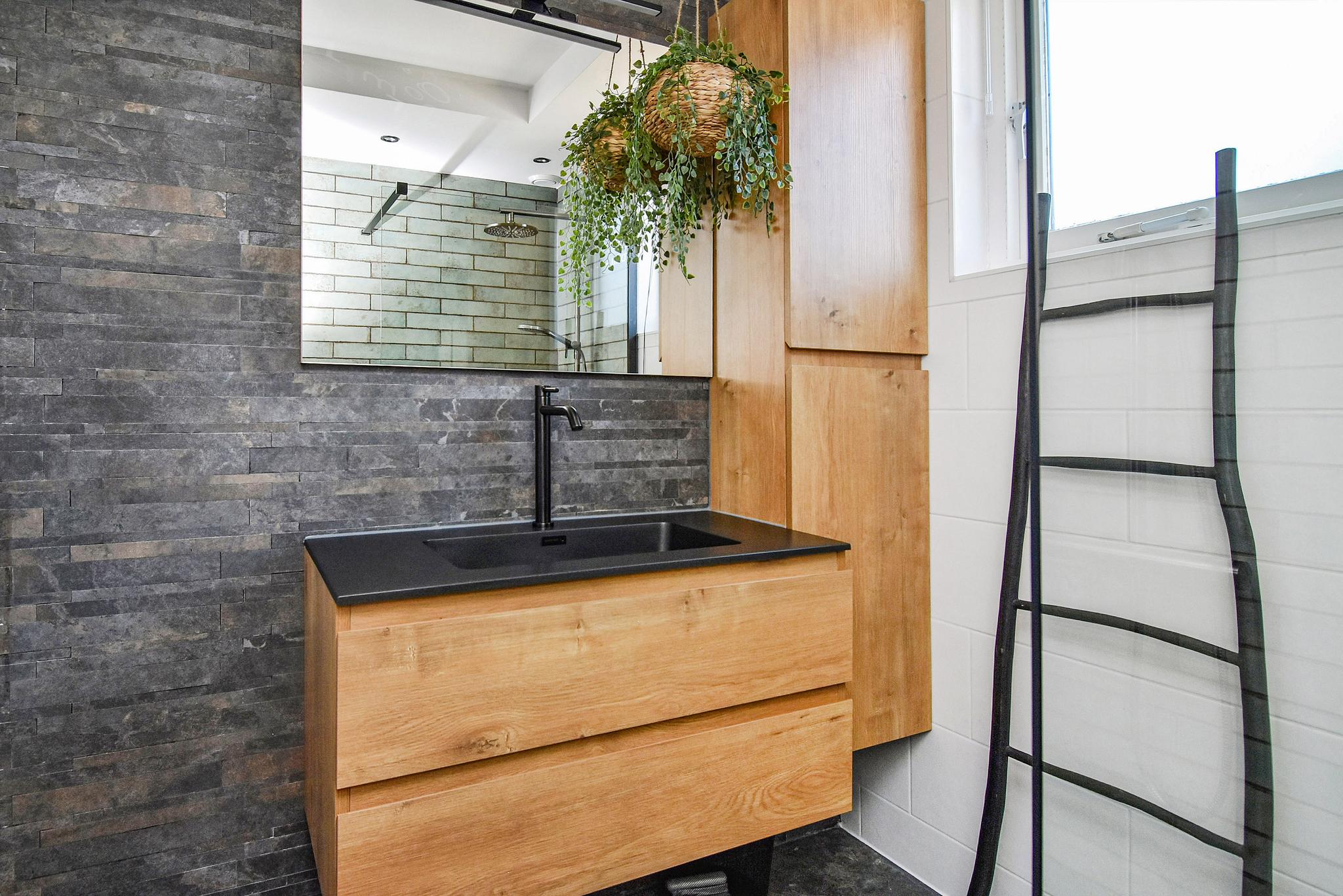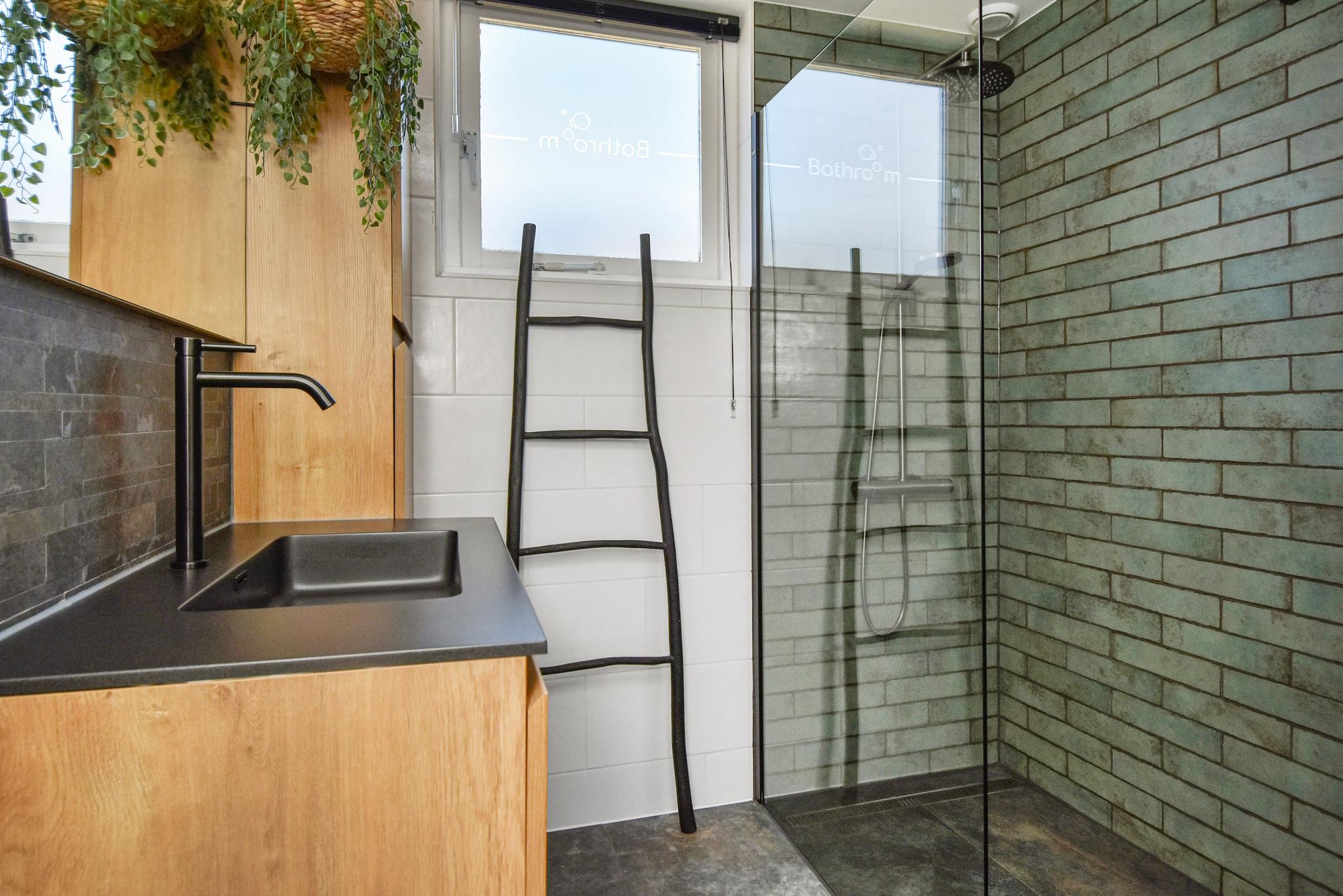 Badkamer: Aan voorzijde gerealiseerd, gemoderniseerd en uitgevoerd met een inloopdouche en wastafelmeubel. Ook fijn is het raampje in de badkamer voor lichtinval en ventilatie/ontluchting.