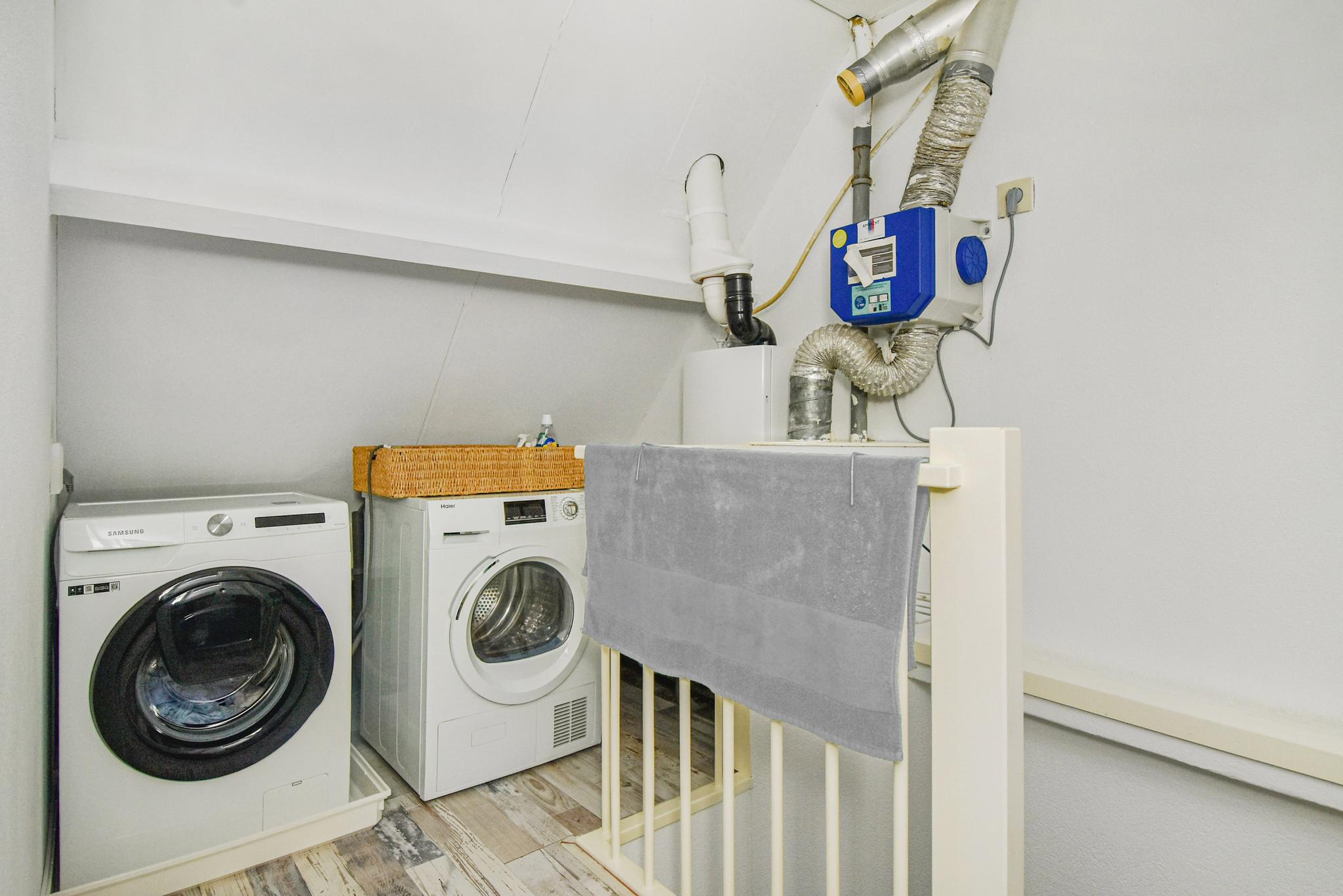 Overloop: Lichte overloop met een Velux dakvenster, bergruimte en opstelplaats voor de wasapparatuur, c.v.-combiketel uit 2019 en vernieuwde unit voor de mechanische ventilatie.