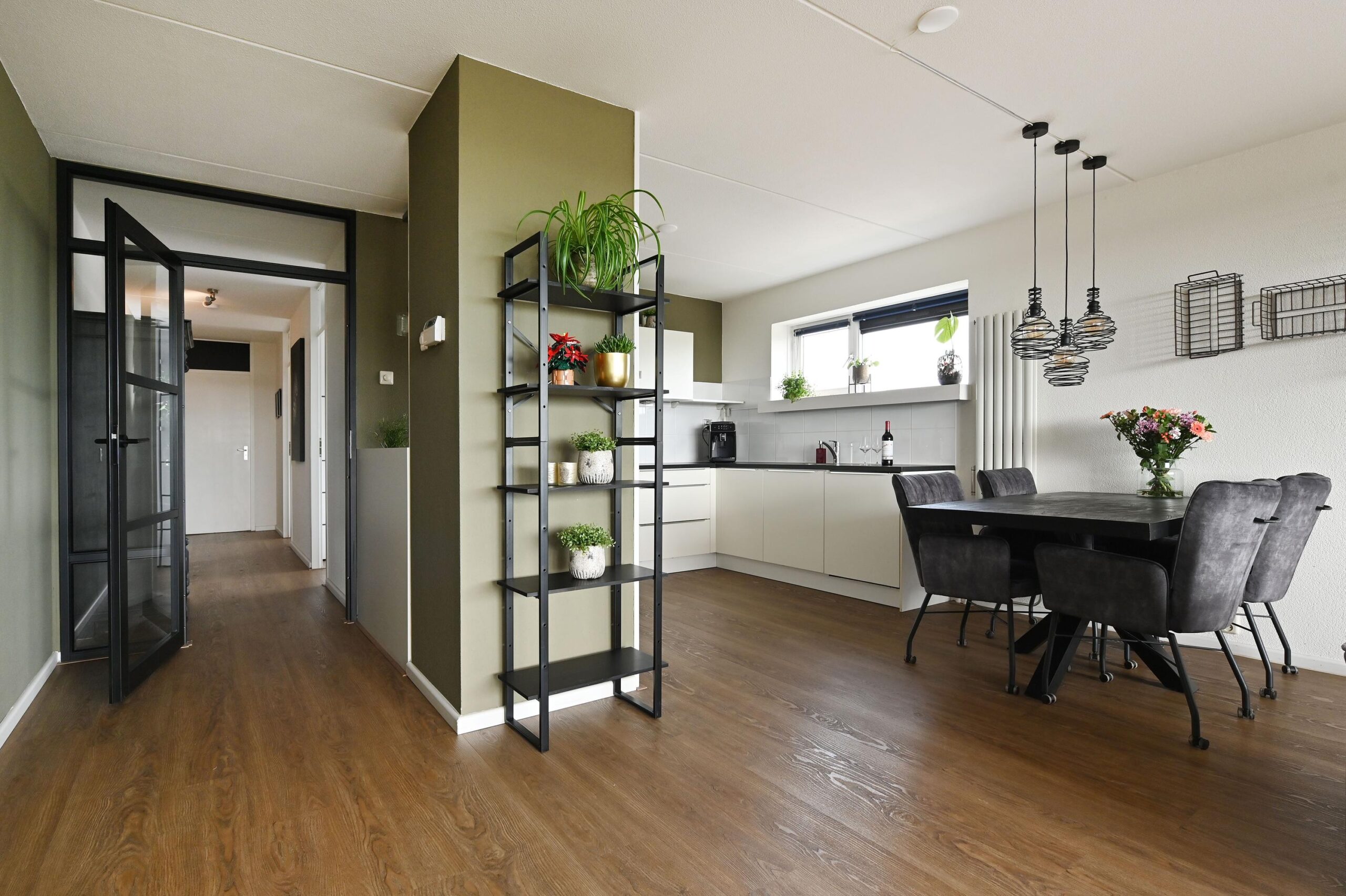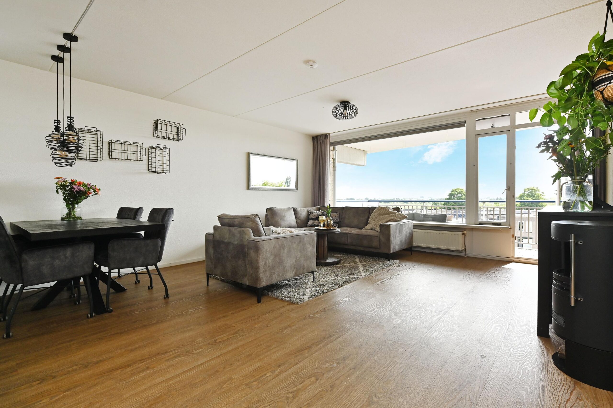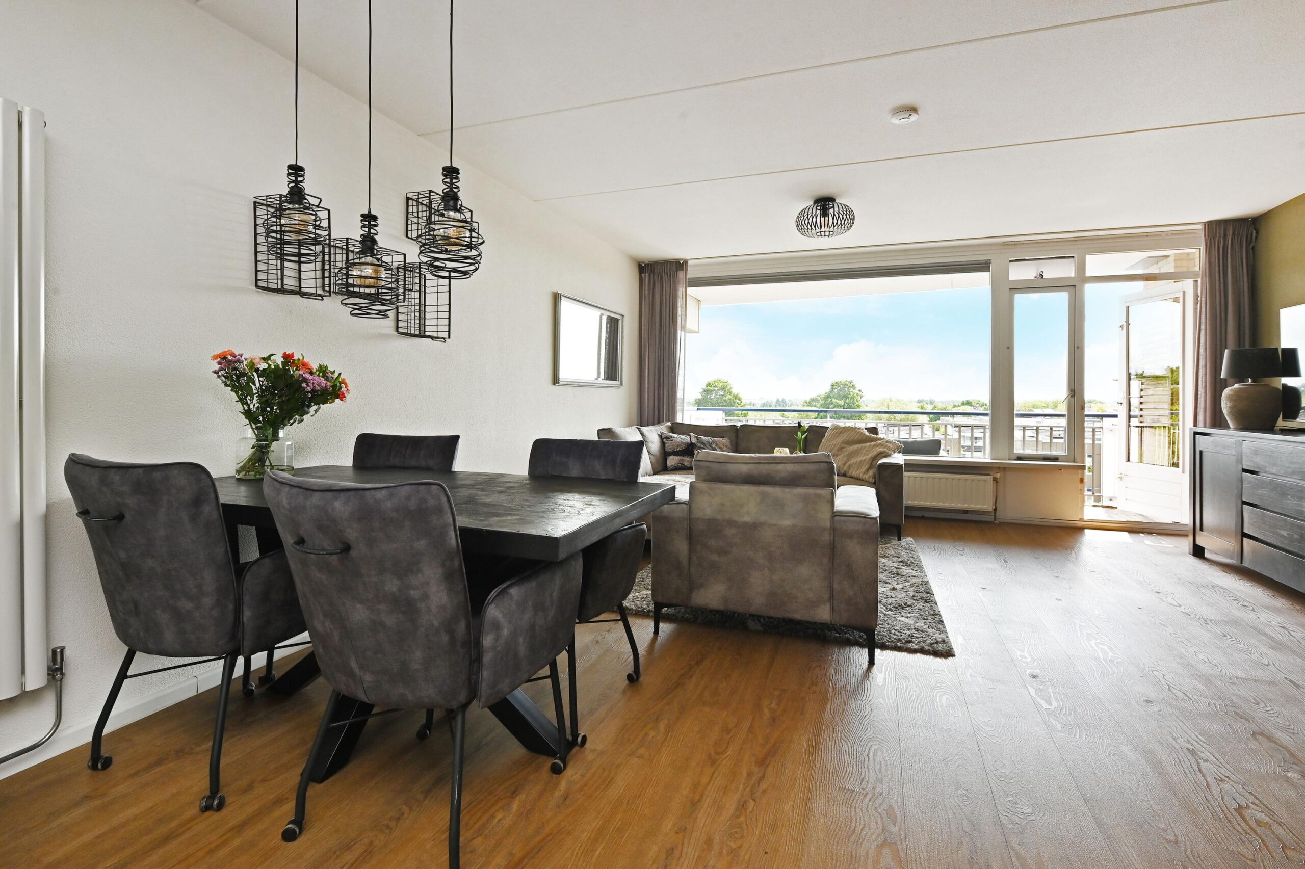 De ruime living biedt voldoende ruimte voor een sfeervolle eet- en zithoek.
