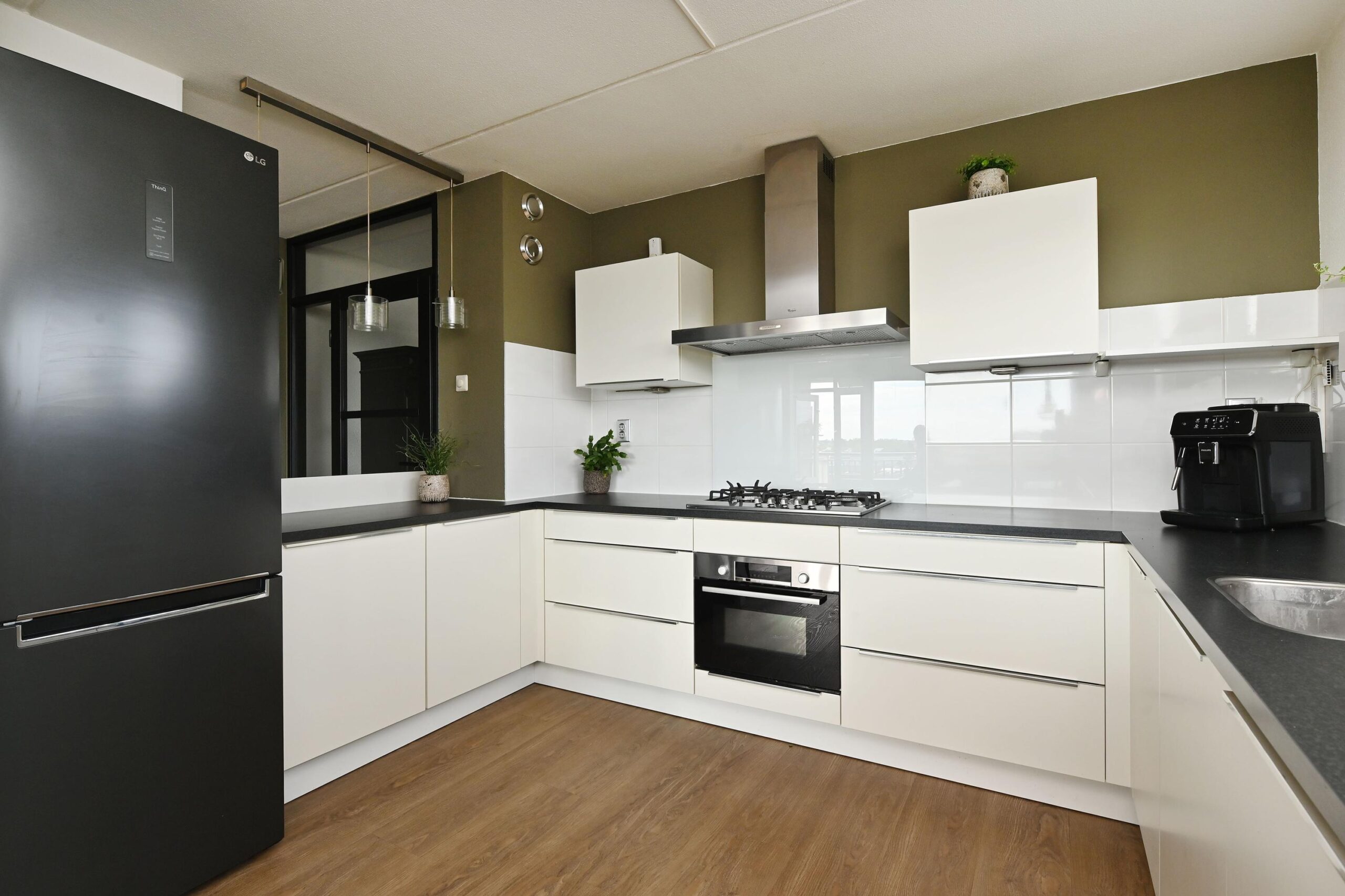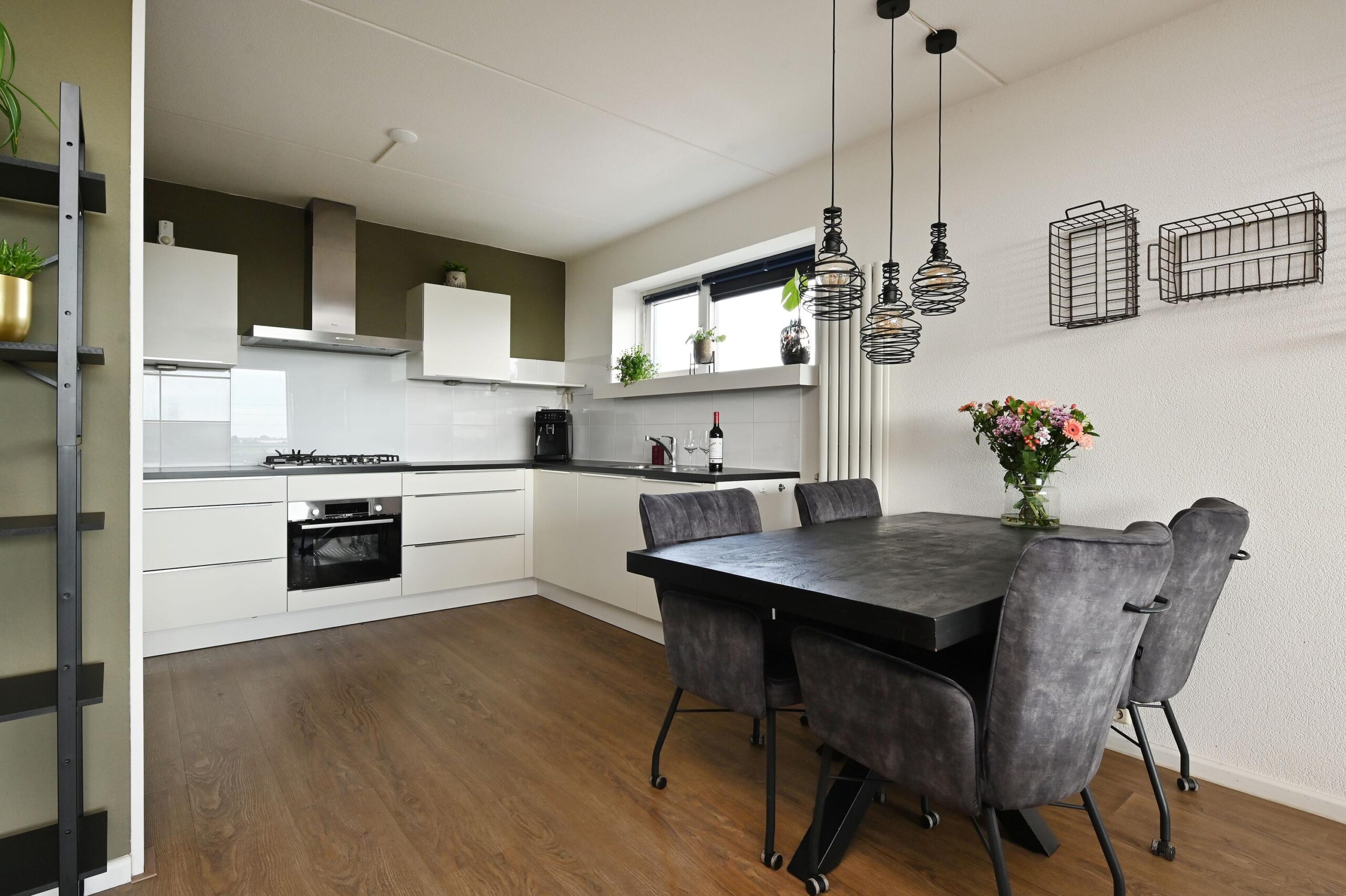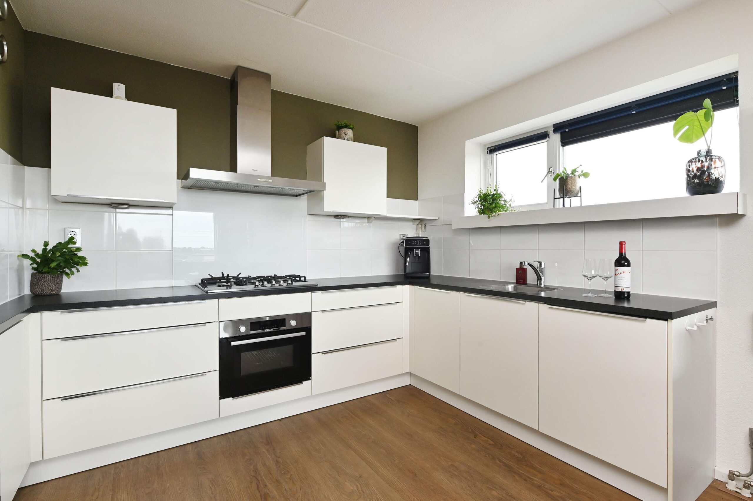De keuken is uitgerust met een 5-pits gaskookplaat, vaatwasser (2025), combioven (2025) en biedt volop werkruimte voor kookliefhebbers.