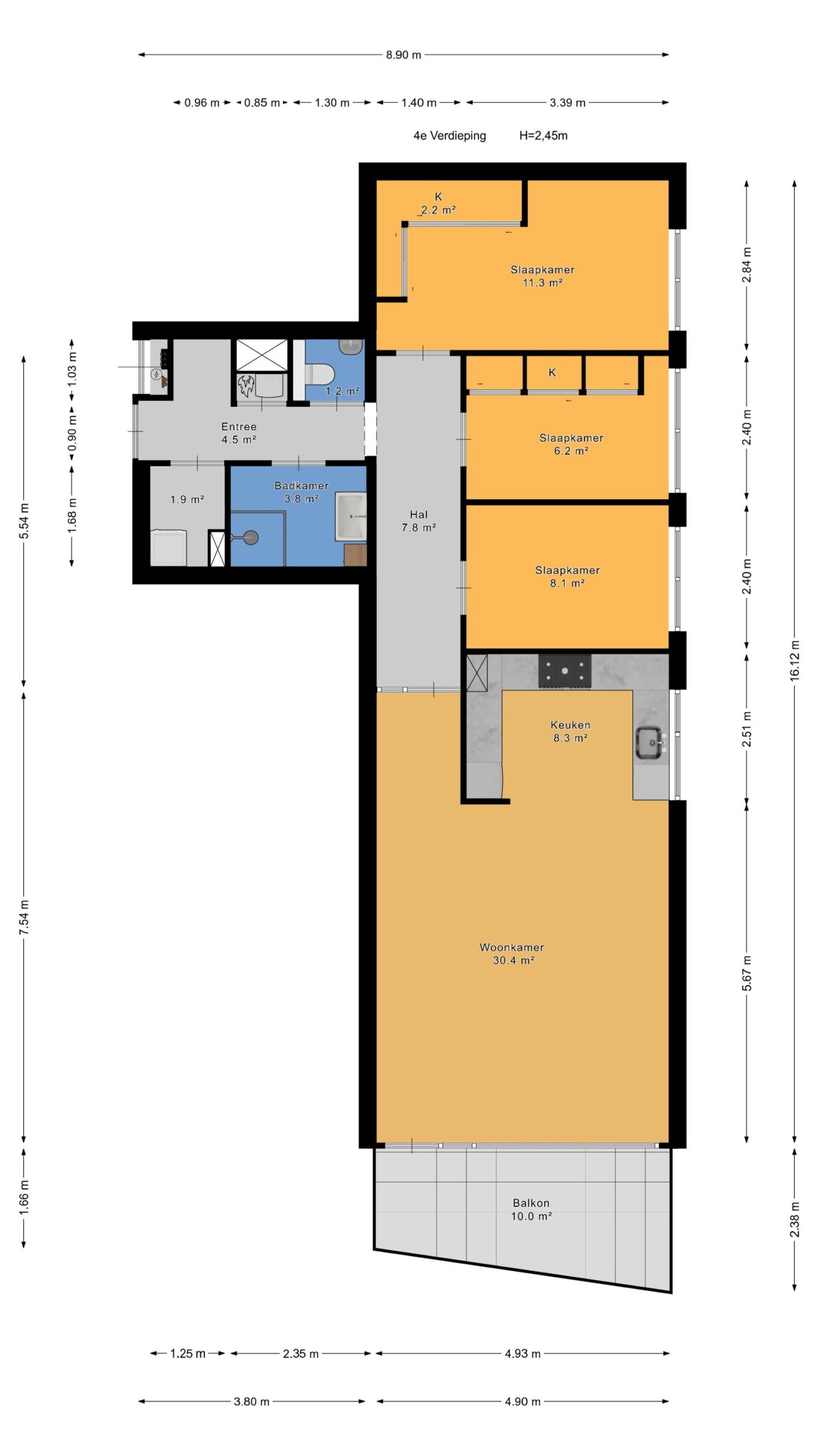 – Gelegen op de bovenste (4e) verdieping met prachtig vrij uitzicht