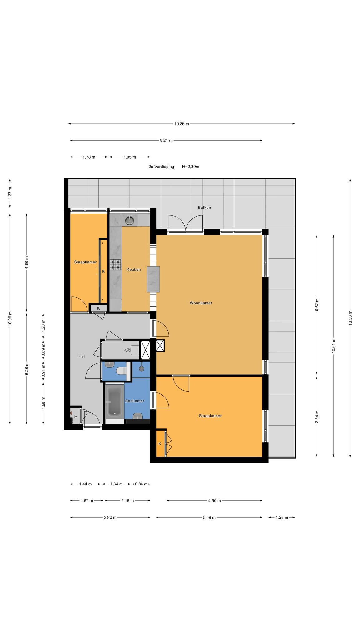 – 2 slaapkamers;