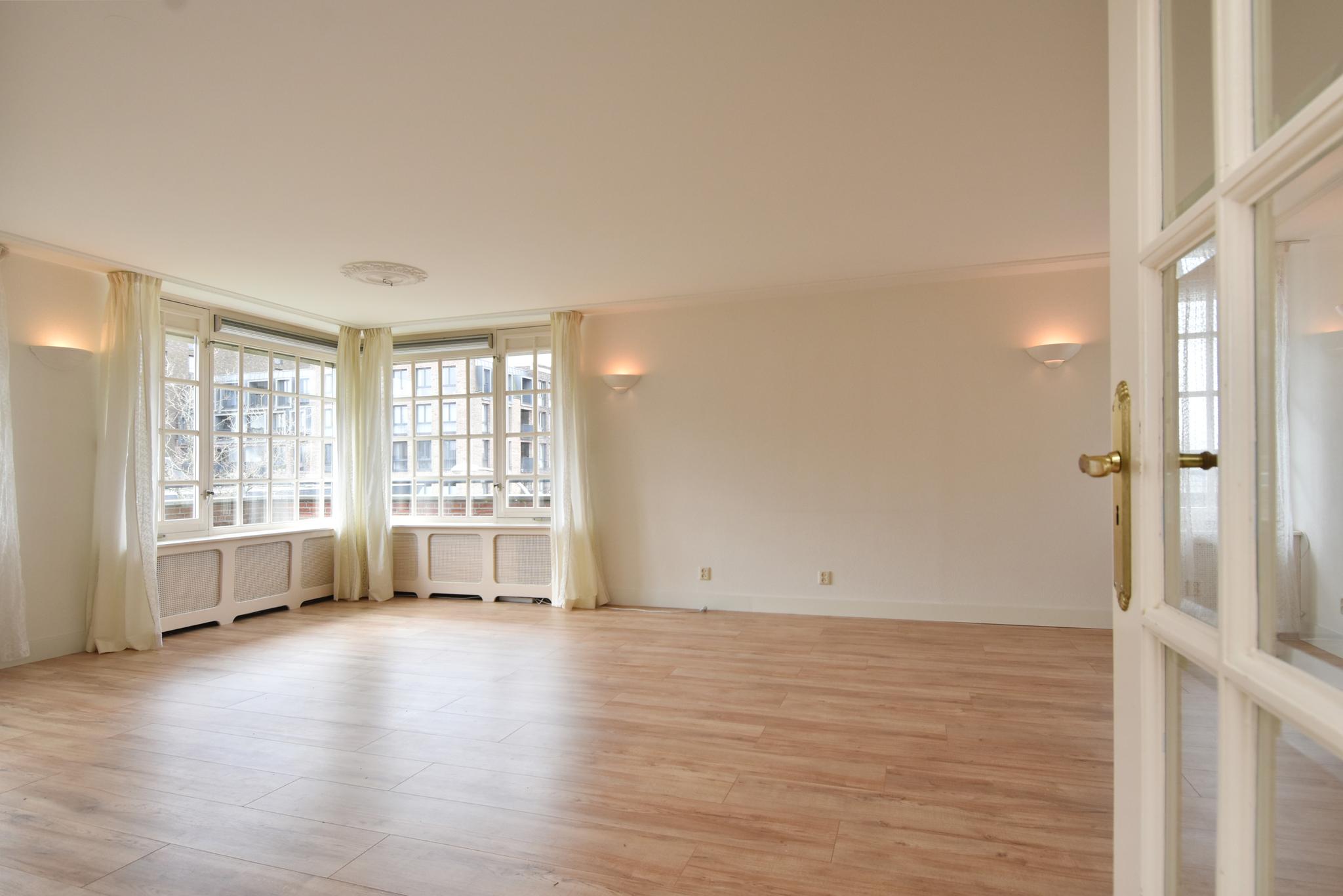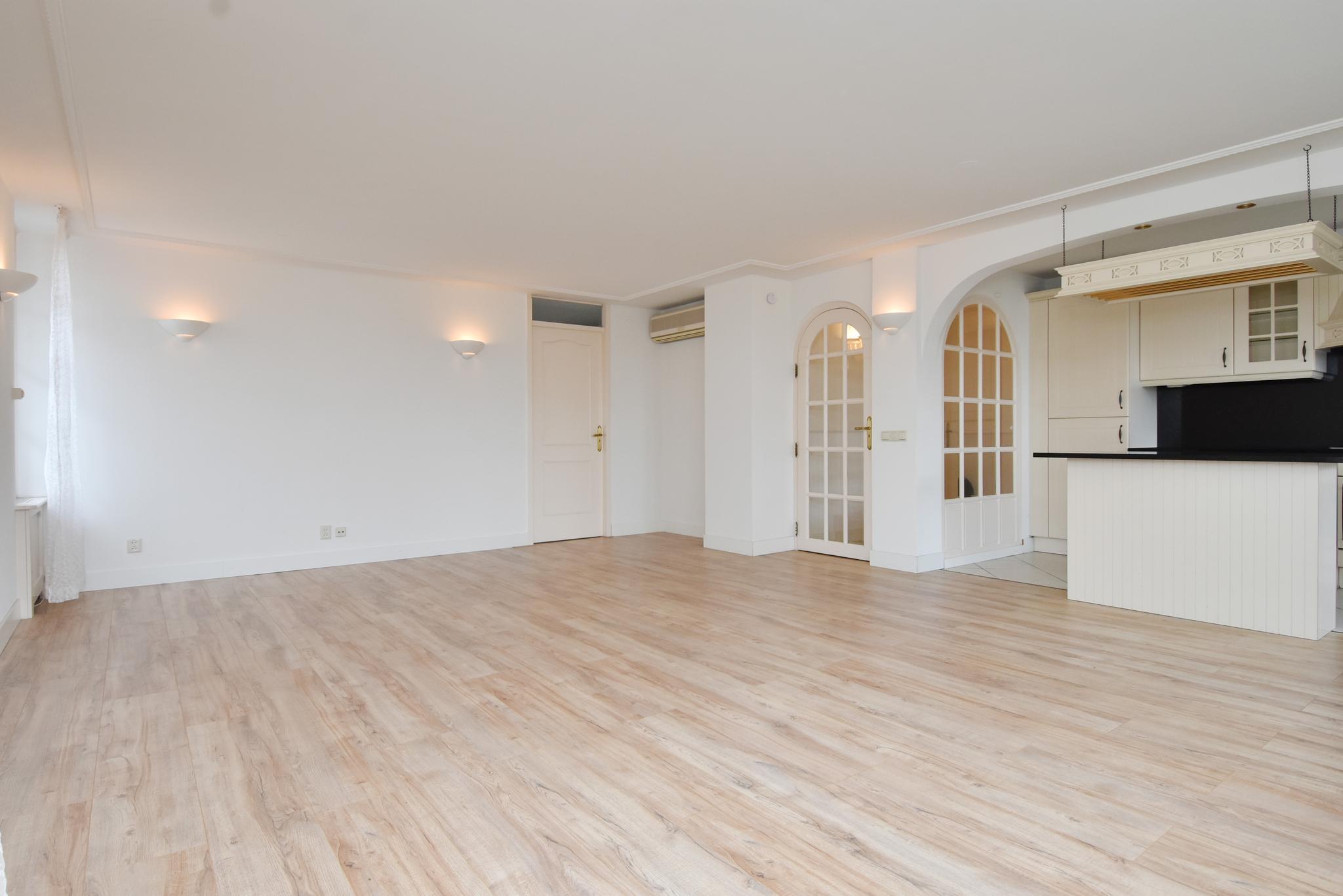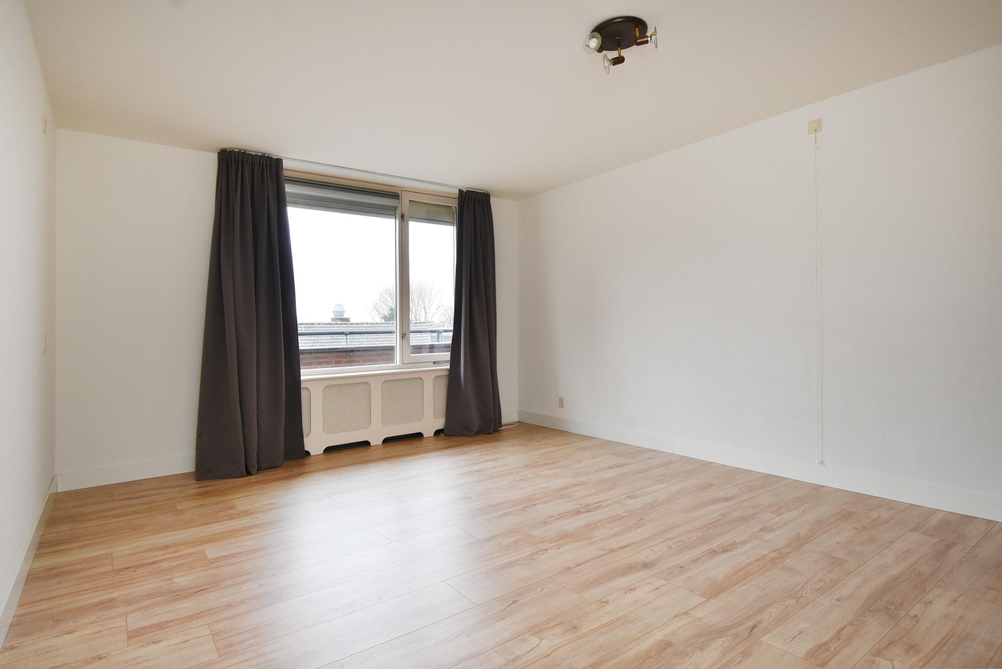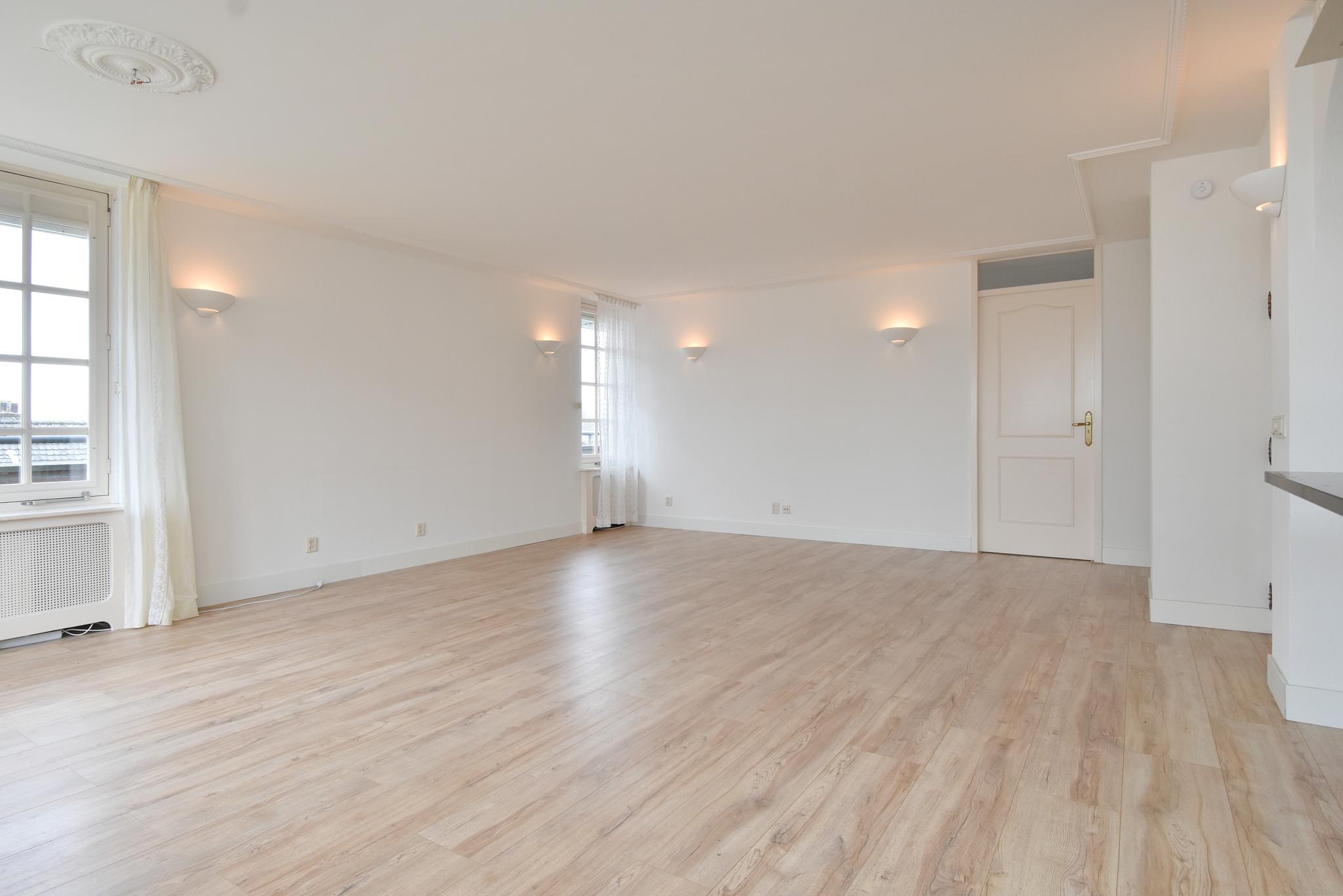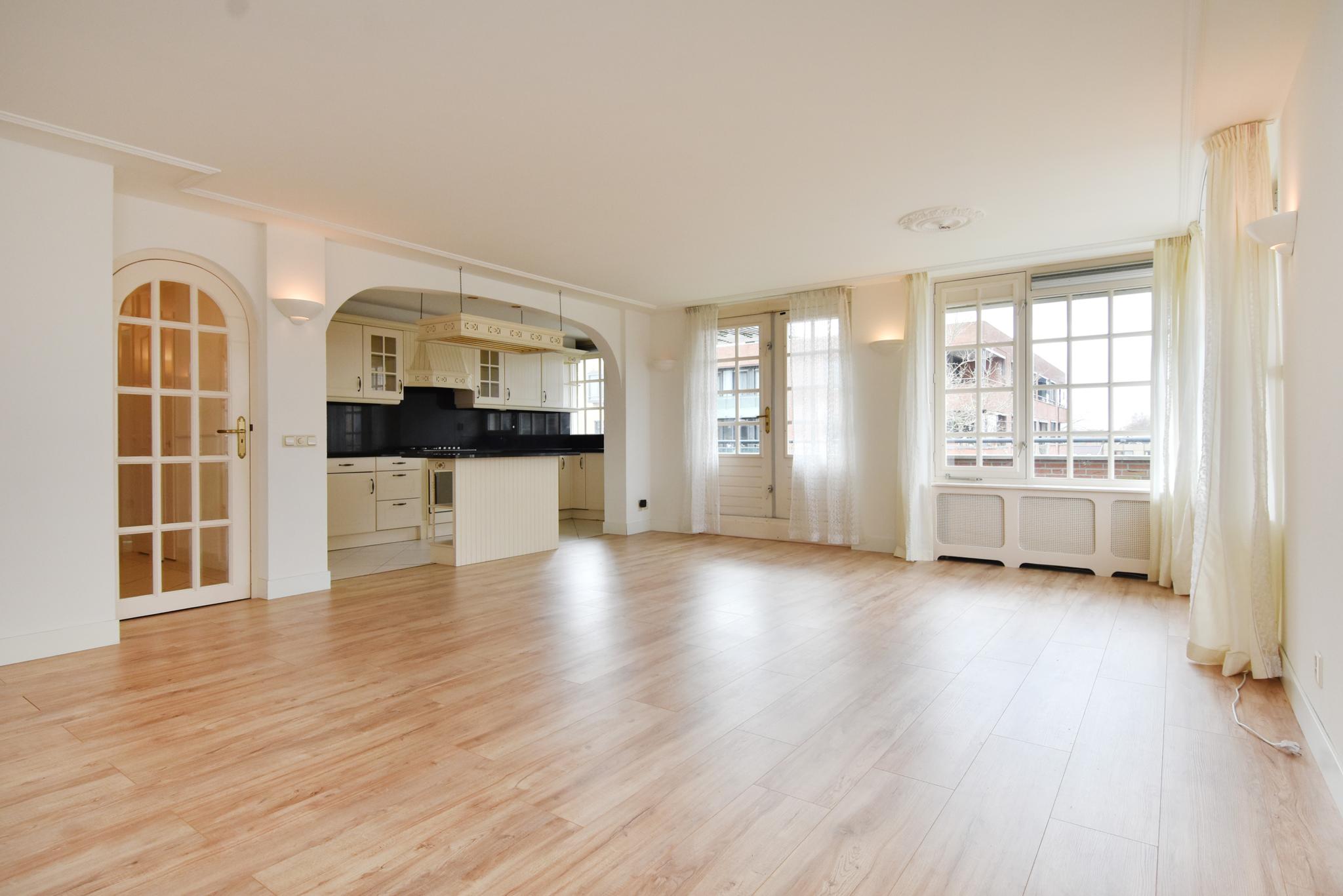Woonkamer: de woonkamer is ontzettend licht, dat is iets wat direct opvalt bij binnenkomst. De woonkamer is v.v. een laminaatvloer. Vanuit de woonkamer toegang tot het dakterras.