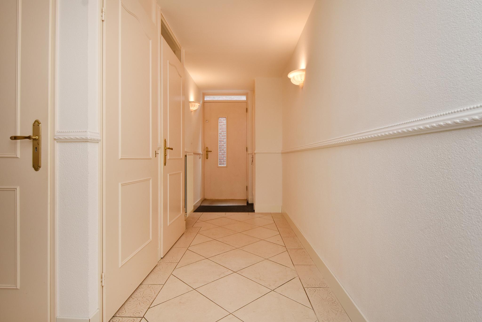 Hal: in de hal bevindt zich een apart toilet, meterkast en de inpandige berging met aansluiting voor de wasmachine en opstelling van de c.v.-ketel.