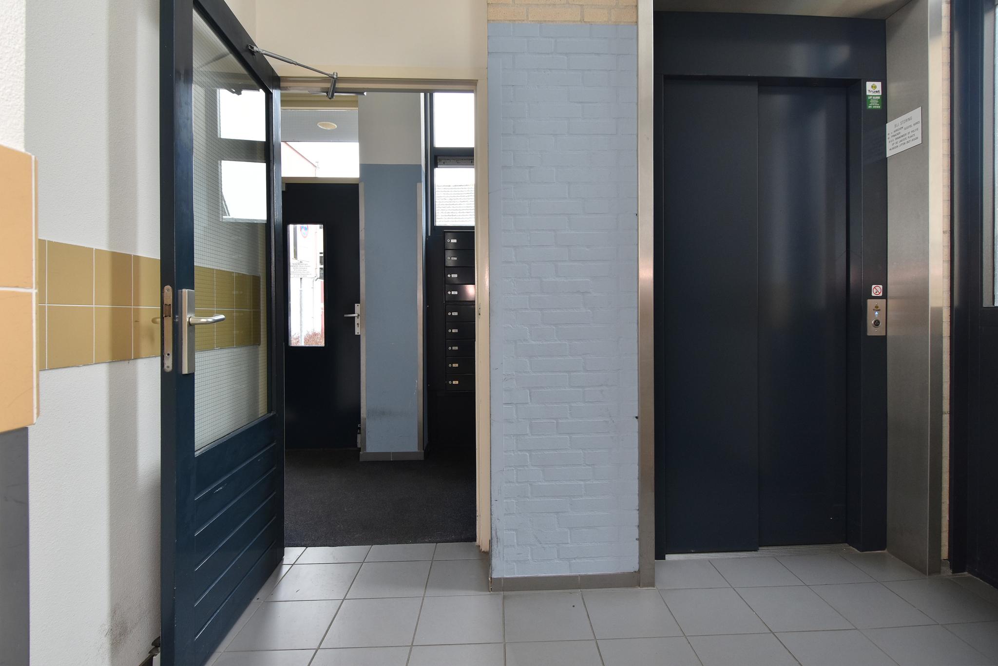 Begane grond: afgesloten entree met videofoon installatie en brievenbussen. Centrale hal met lift en trap.