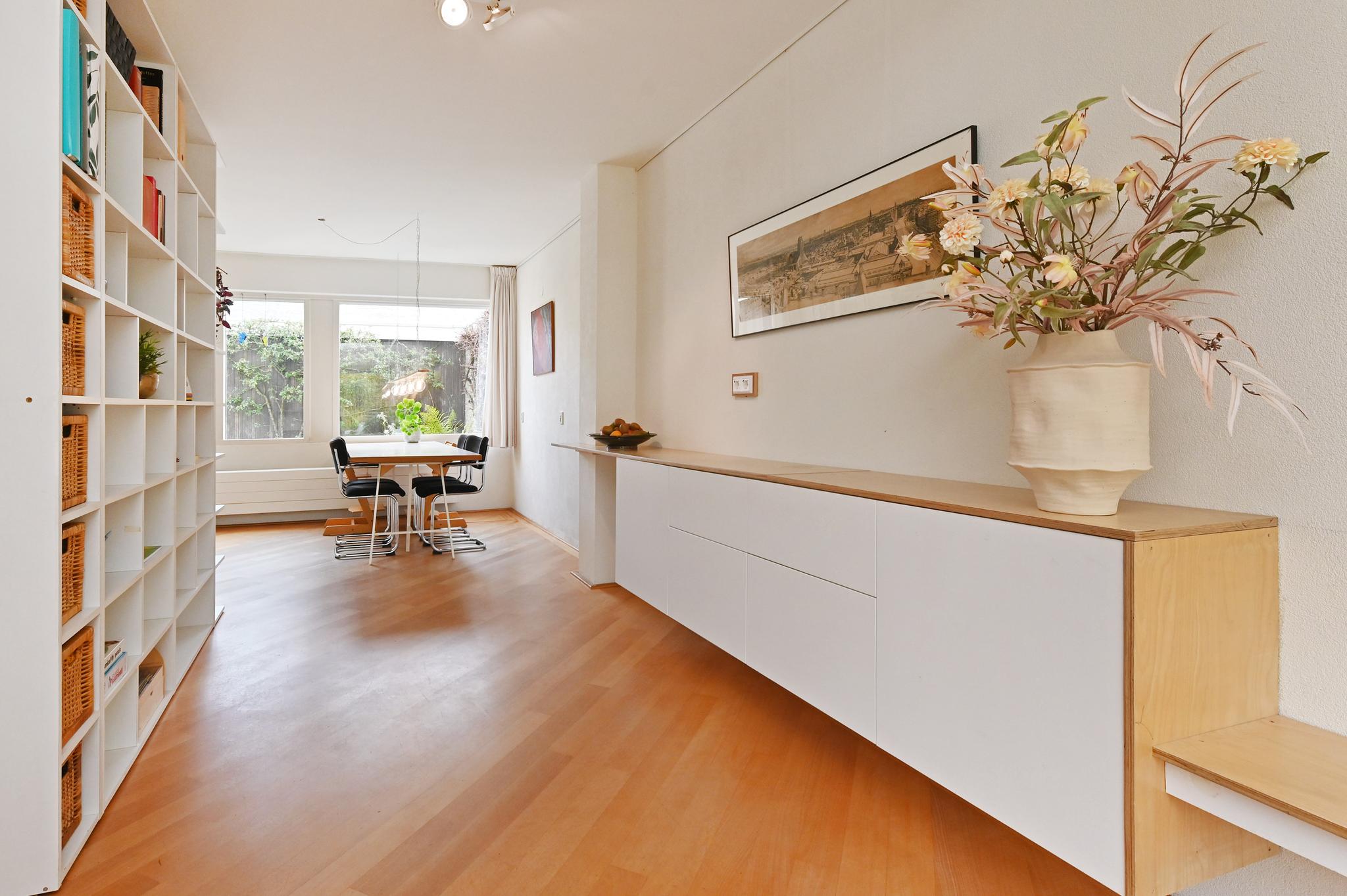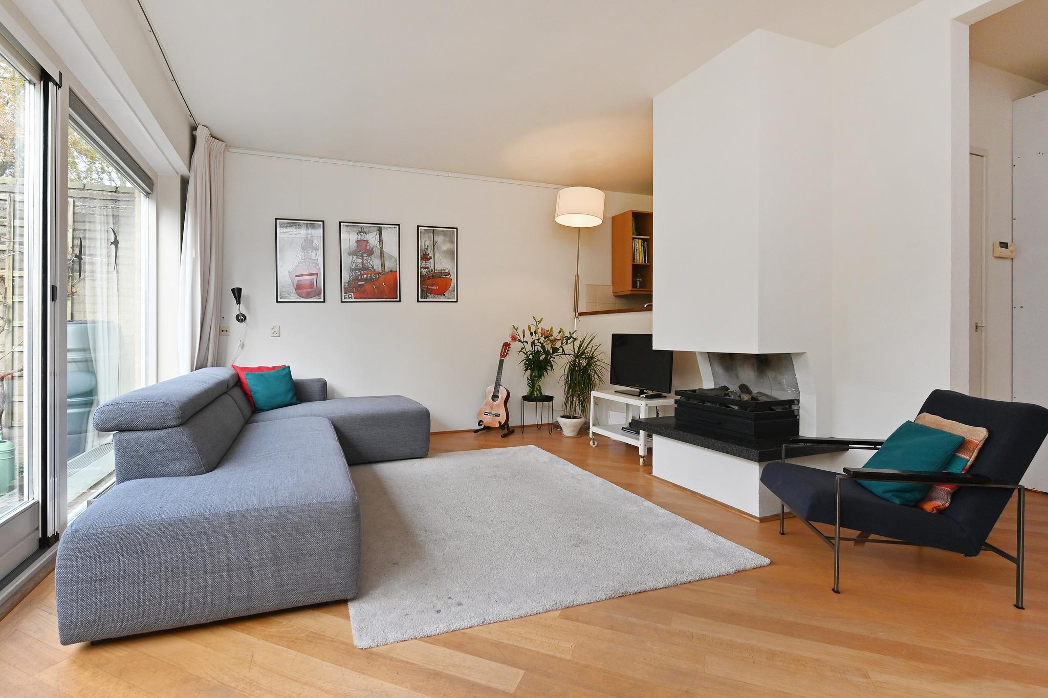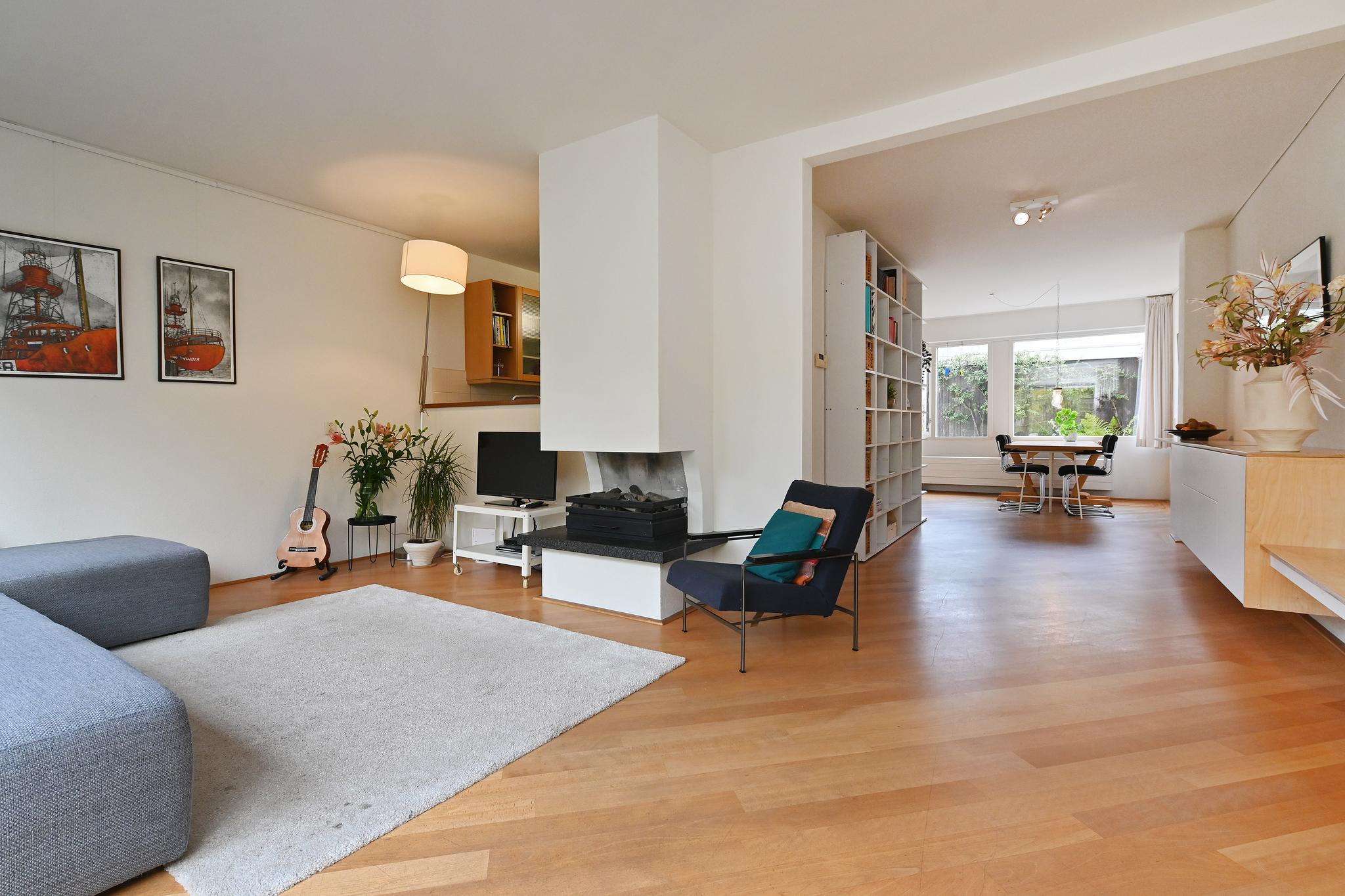 Begane grond: Entree, hal, toilet, meterkast, moderne open keuken (2008) in L-opstelling met inbouwapparatuur van recente datum. Heerlijke living met woon- en eetkamer samen ca. 44 m². Vanuit de woonkamer via openslaande deuren toegang tot de achtertuin. Woonkamer en keuken zijn voorzien van een warme houten vloer.