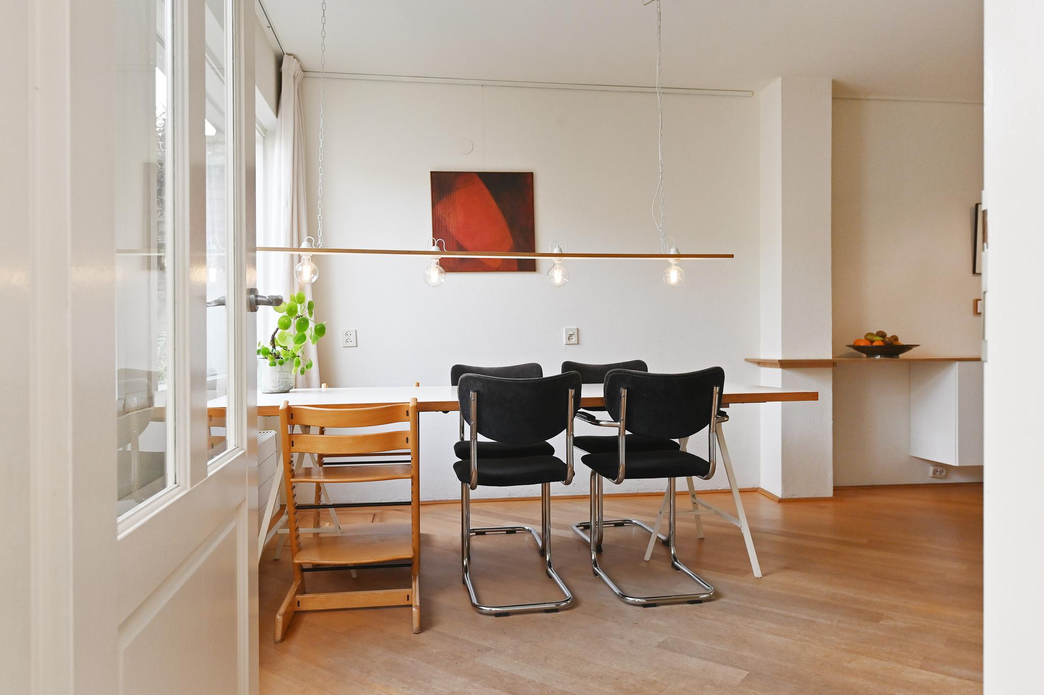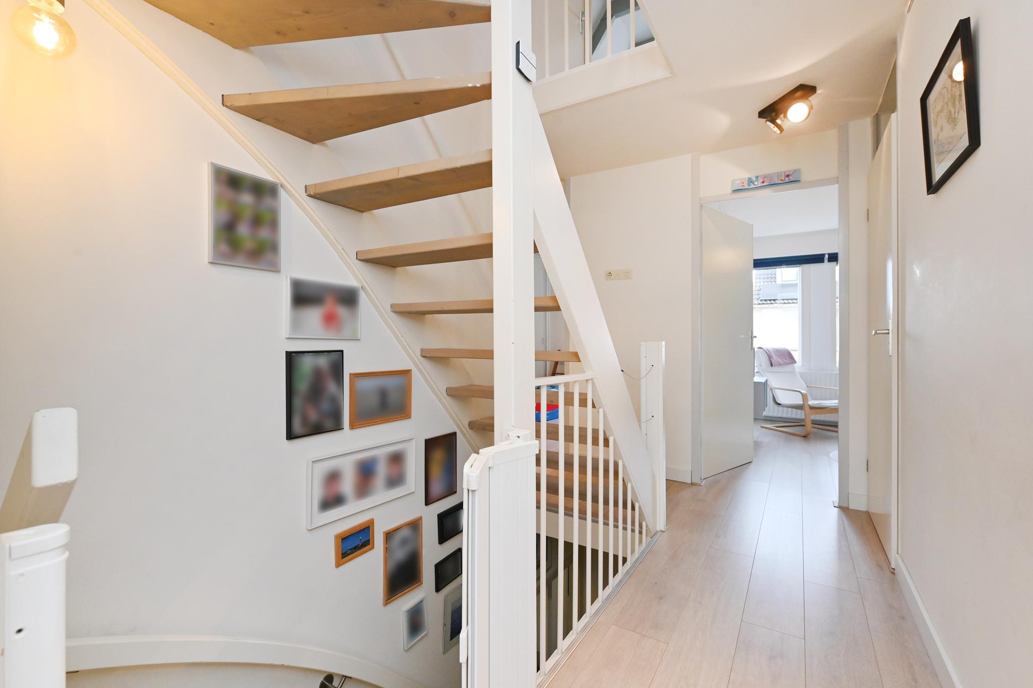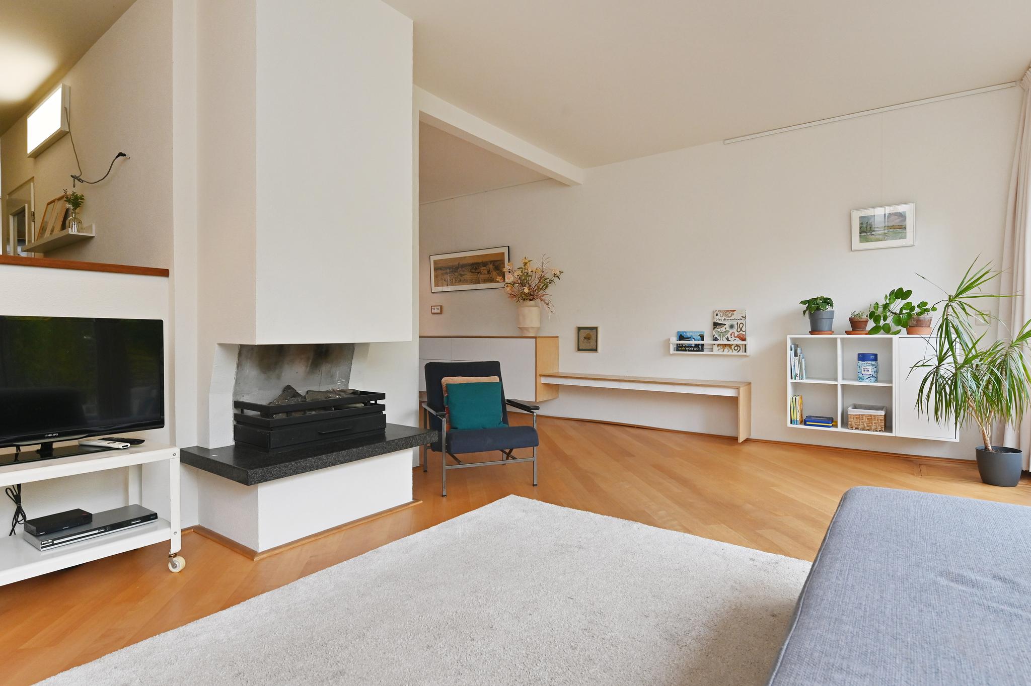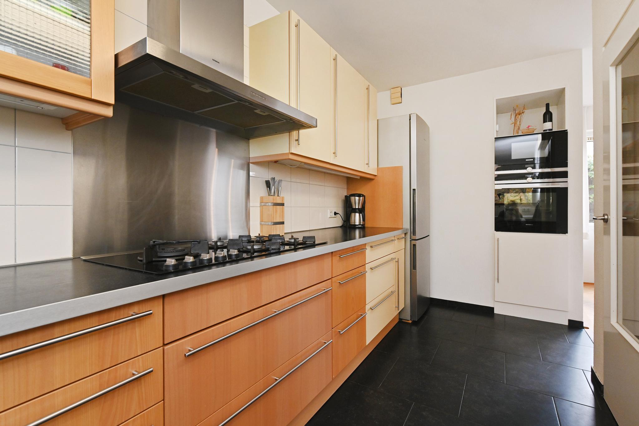 Begane grond: Entree, hal, toilet, meterkast, moderne open keuken (2008) in L-opstelling met inbouwapparatuur van recente datum. Heerlijke living met woon- en eetkamer samen ca. 44 m². Vanuit de woonkamer via openslaande deuren toegang tot de achtertuin. Woonkamer en keuken zijn voorzien van een warme houten vloer.