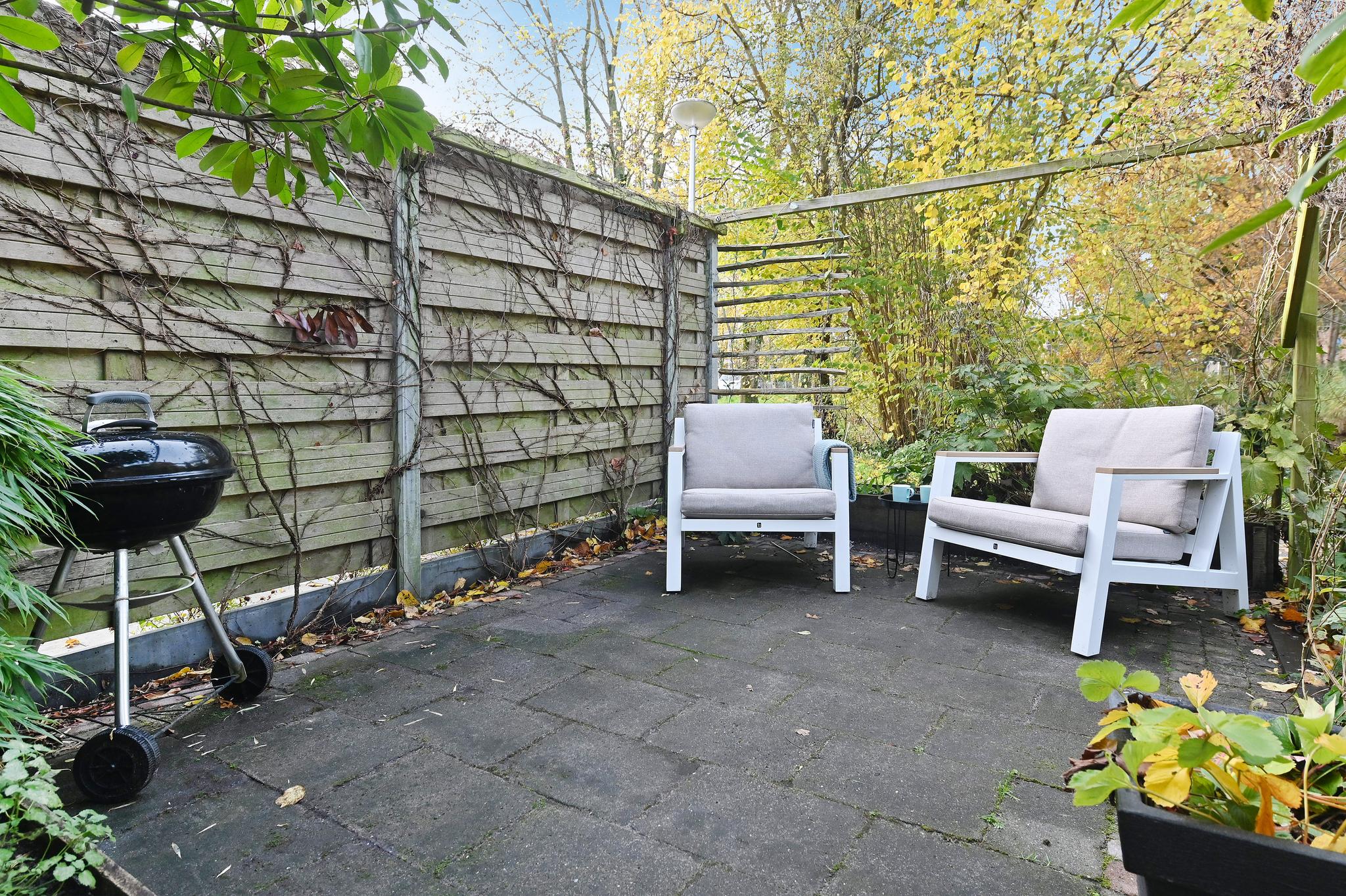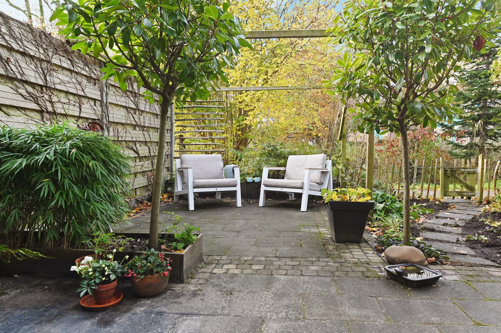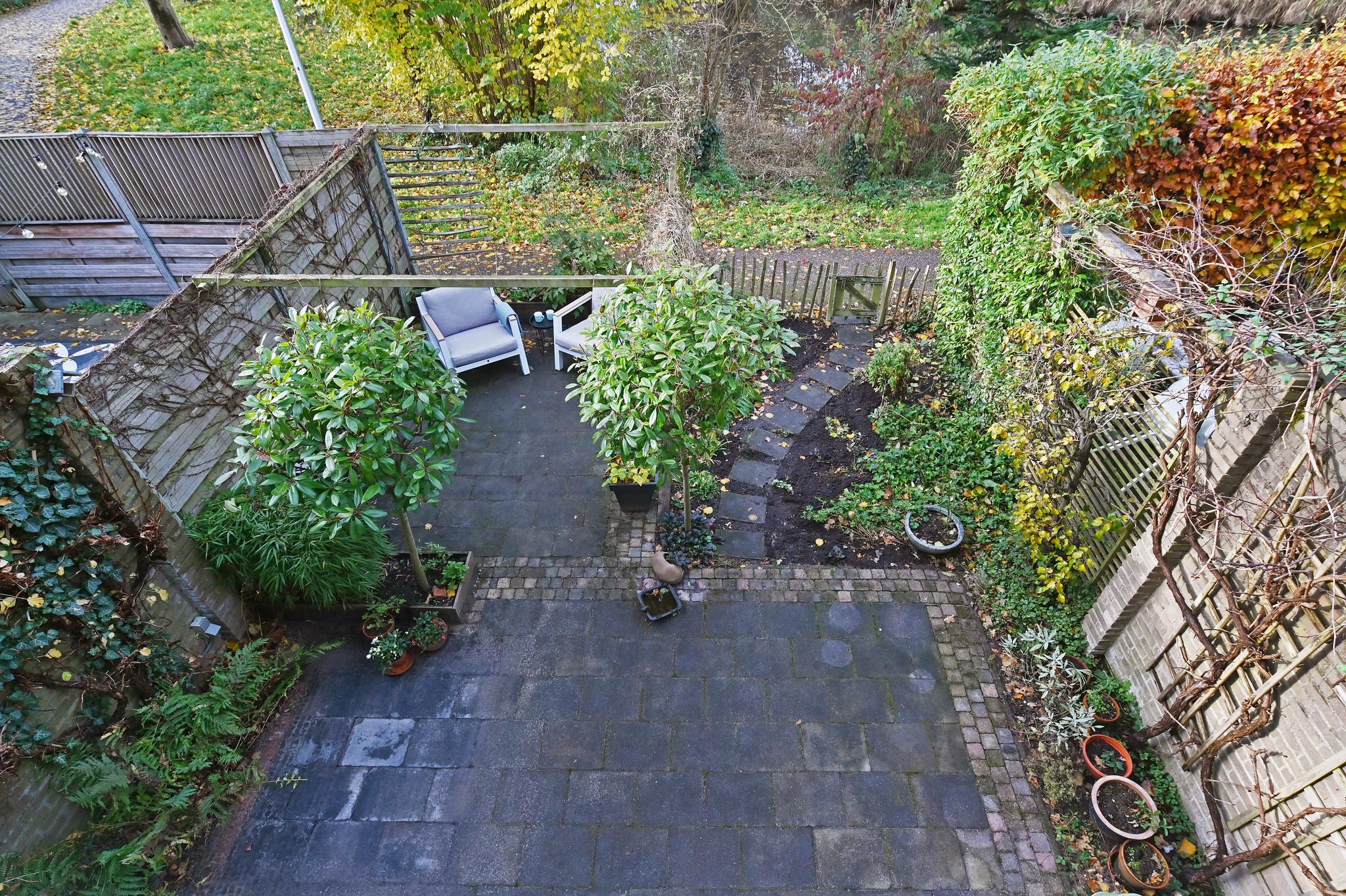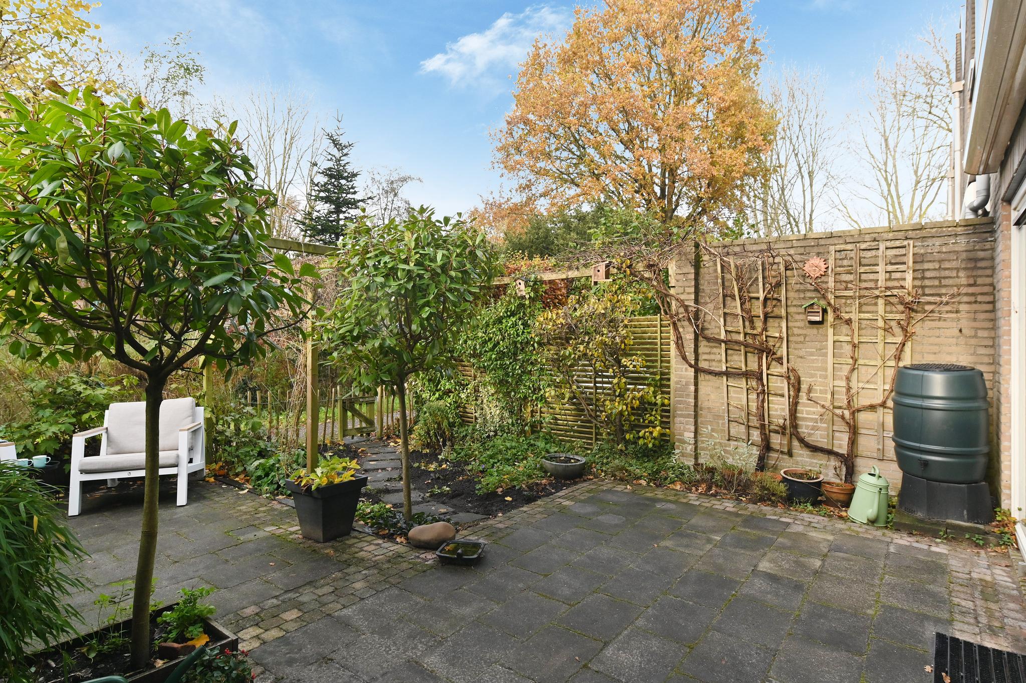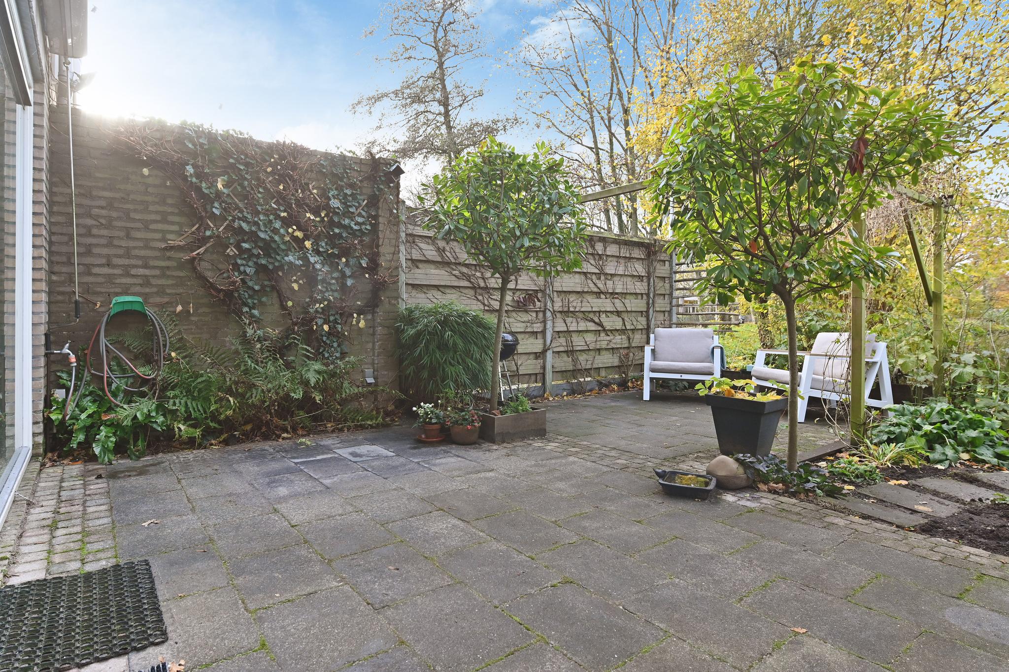 Buiten: Voortuin met beschut hoekje, fijn om buiten in het zonnetje te genieten van je ochtend cappuccino. Ruime berging met elektra. Aan achterzijde heerlijke tuin gelegen op het zonnige Zuidwesten met uitzicht op de achtergelegen vijver en groenvoorziening. Optimale zichtlijn over al het groen en ook heel fijn, de kinderen kunnen vanuit de tuin direct het wijkpark in om lekker buiten te spelen.