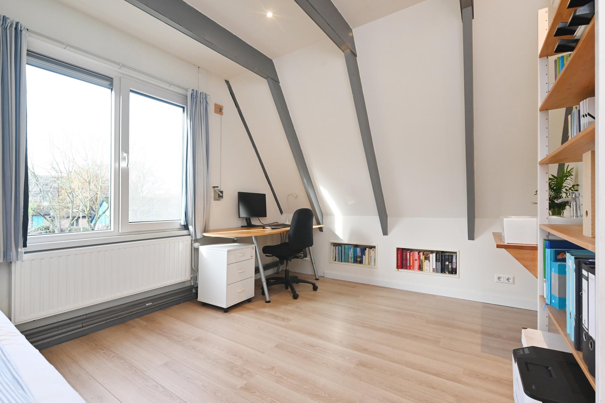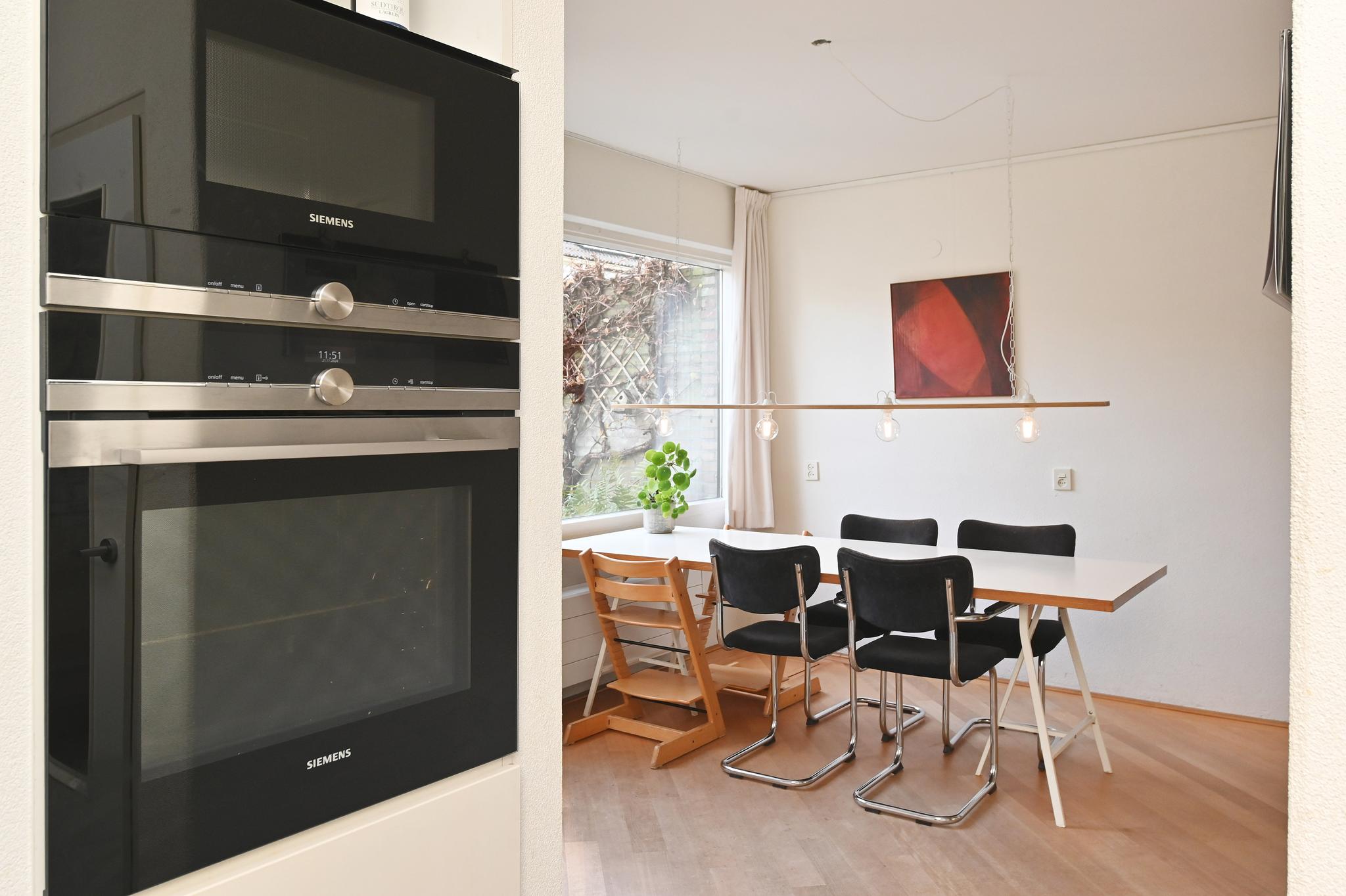Deze zeer lichte, gemoderniseerde tussenwoning is met ca. 156m² woonoppervlakte ruim van opzet en heeft maar liefst 5 slaapkamers, een riante woon-/eetkamer en een heerlijke tuin. Gelegen op het zuidwesten met de tuin grenzend aan het wijkpark met vijver is dit een plek om heerlijk tot rust te komen.