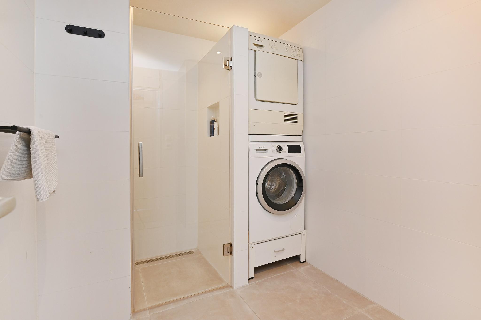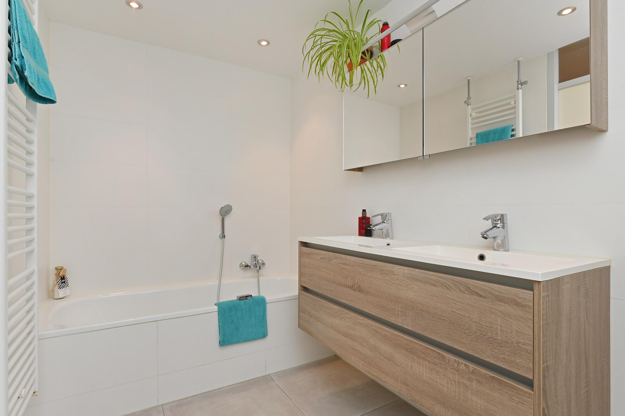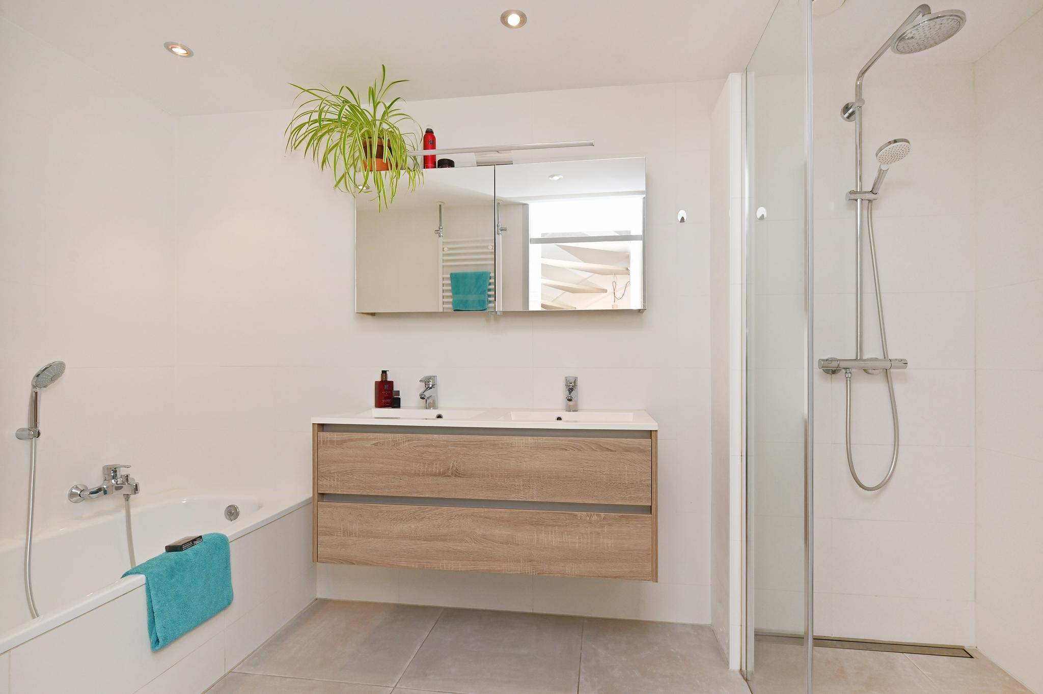 1e etage: Overloop, vaste kast, separate toiletruimte. Moderne badkamer met ligbad, wastafelmeubel en een handdoek radiator. Ruime slaapkamer aan de achterzijde v.v. inbouwkast. Aan de voorzijde bevinden zich 2 slaapkamers. Door de grootte van deze type woning is er een 2e badkamer gecombineerd met wasruimte gerealiseerd, tevens v.v. vloerverwarming.