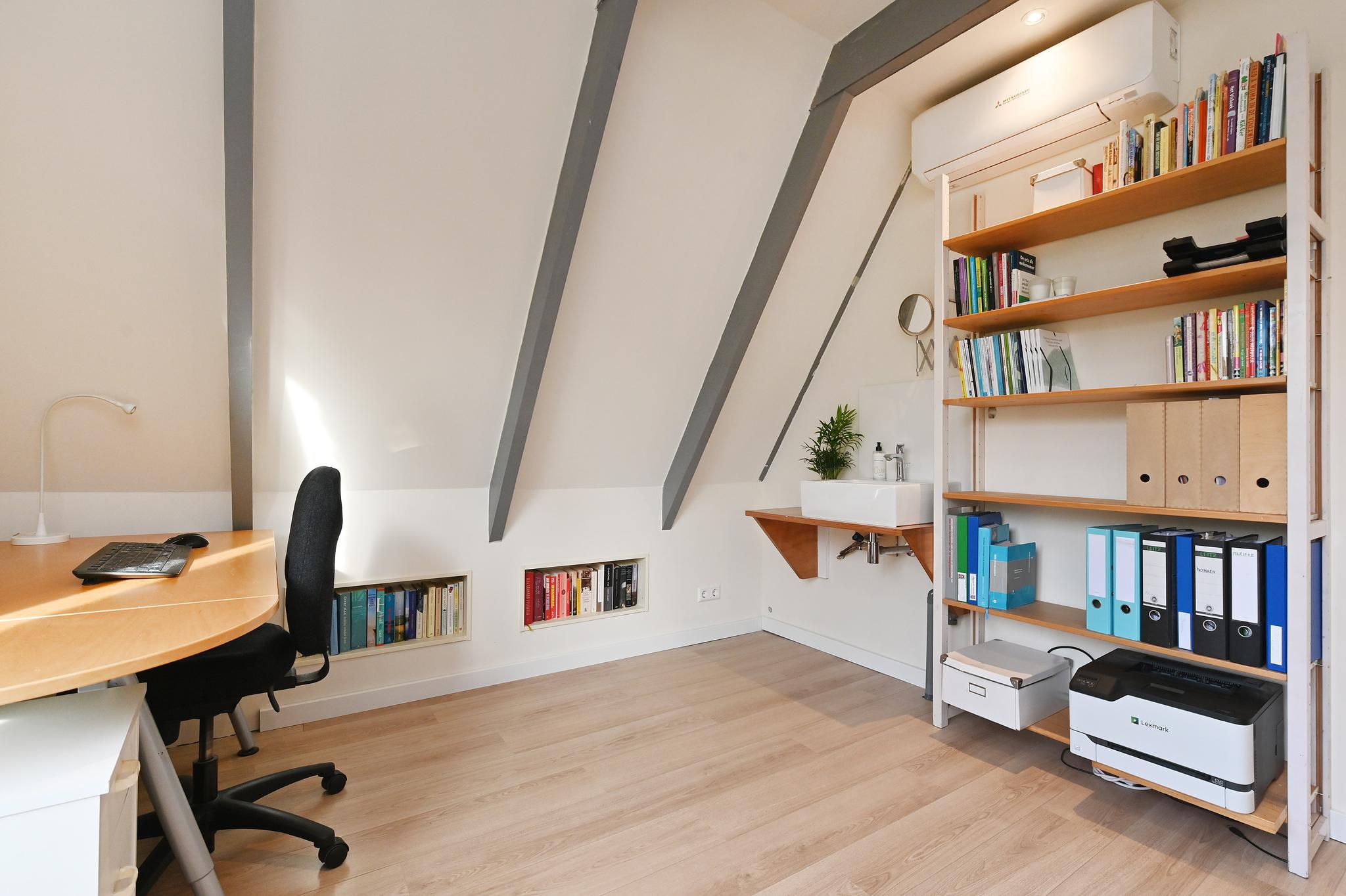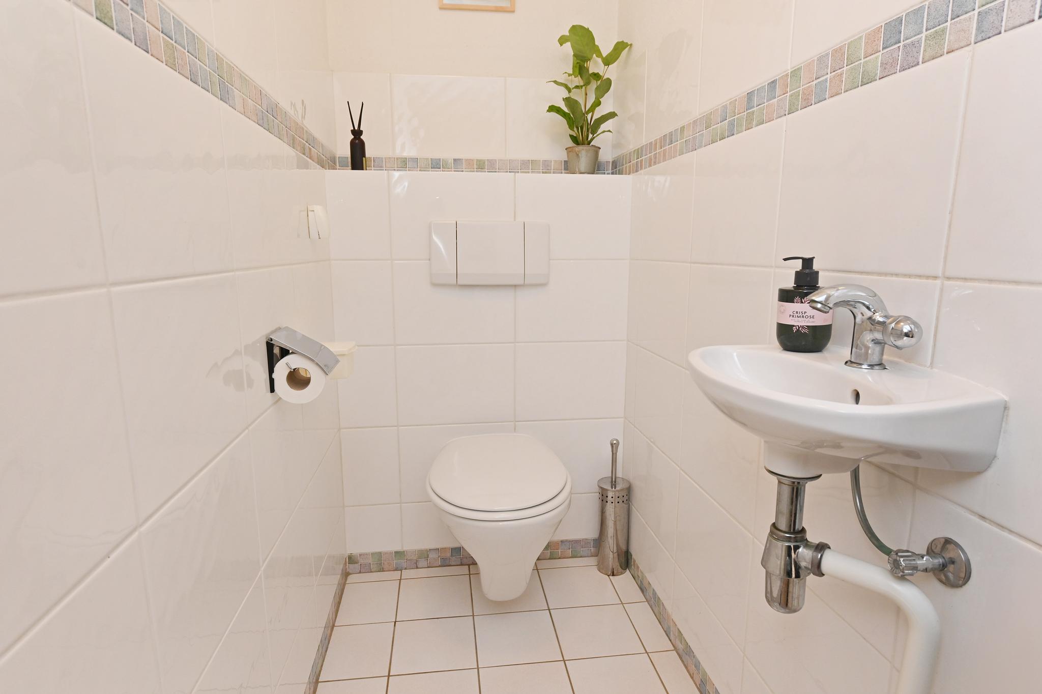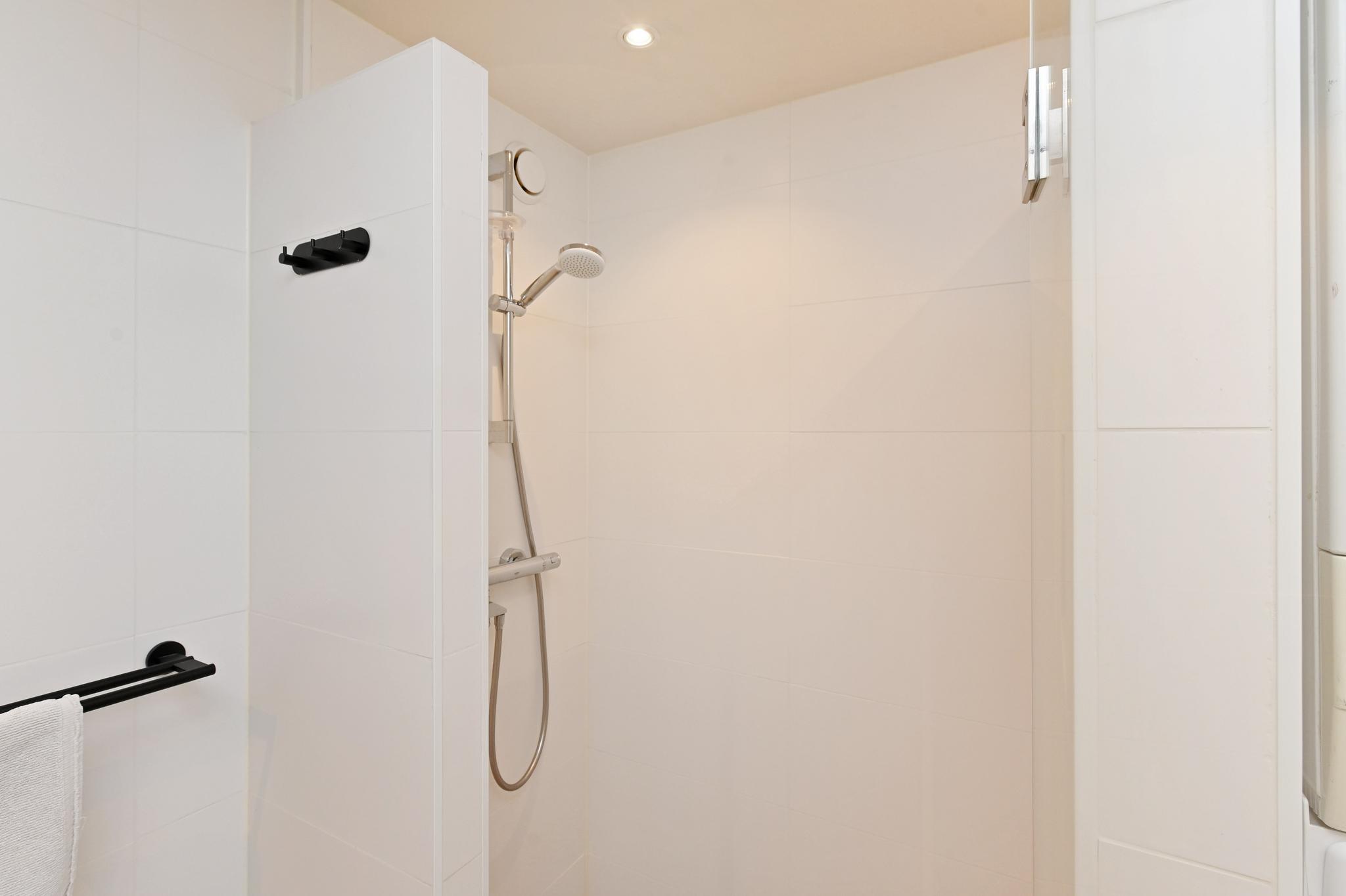 1e etage: Overloop, vaste kast, separate toiletruimte. Moderne badkamer met ligbad, wastafelmeubel en een handdoek radiator. Ruime slaapkamer aan de achterzijde v.v. inbouwkast. Aan de voorzijde bevinden zich 2 slaapkamers. Door de grootte van deze type woning is er een 2e badkamer gecombineerd met wasruimte gerealiseerd, tevens v.v. vloerverwarming.