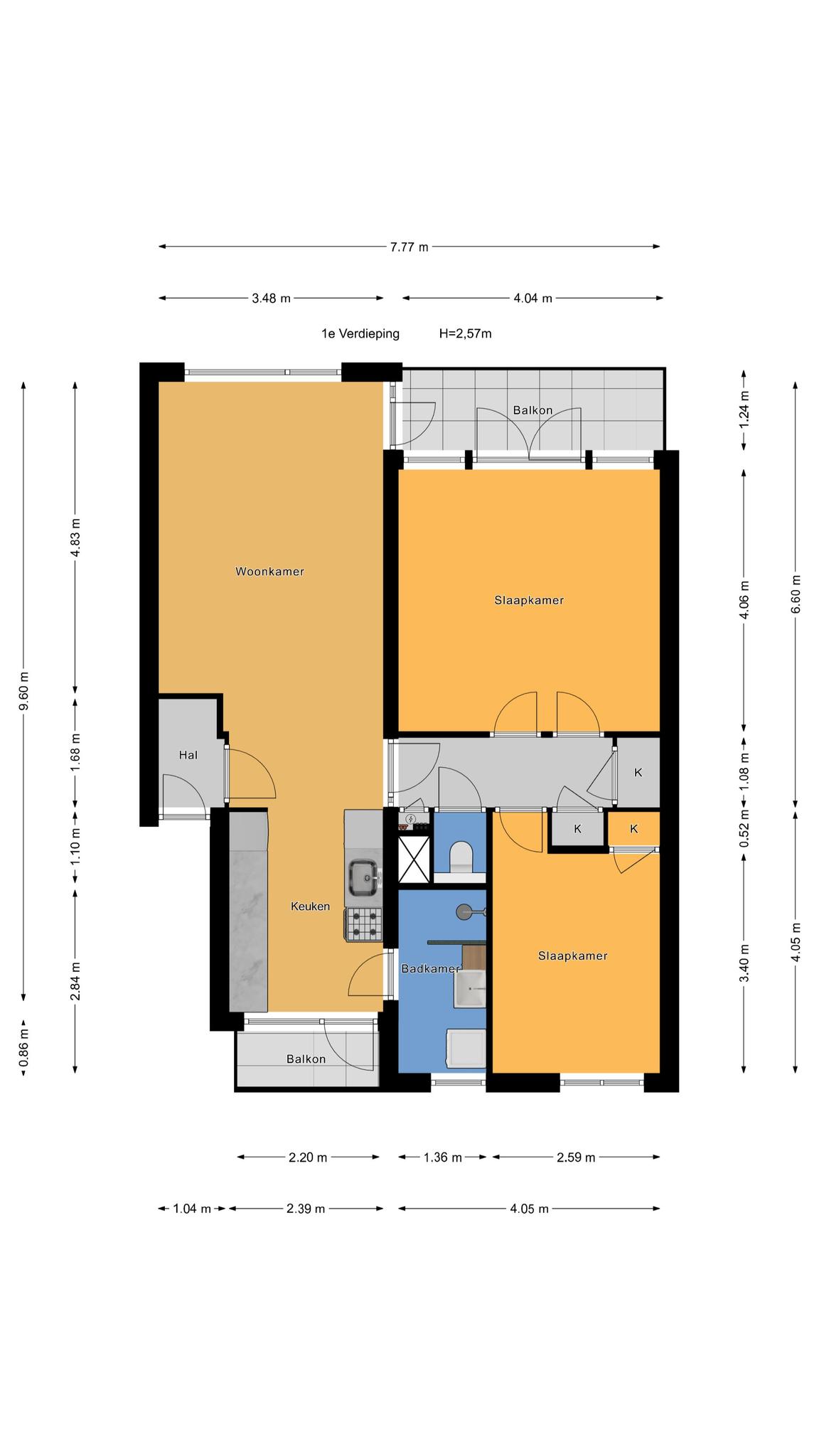 – 2 (voormalig 3) slaapkamers;