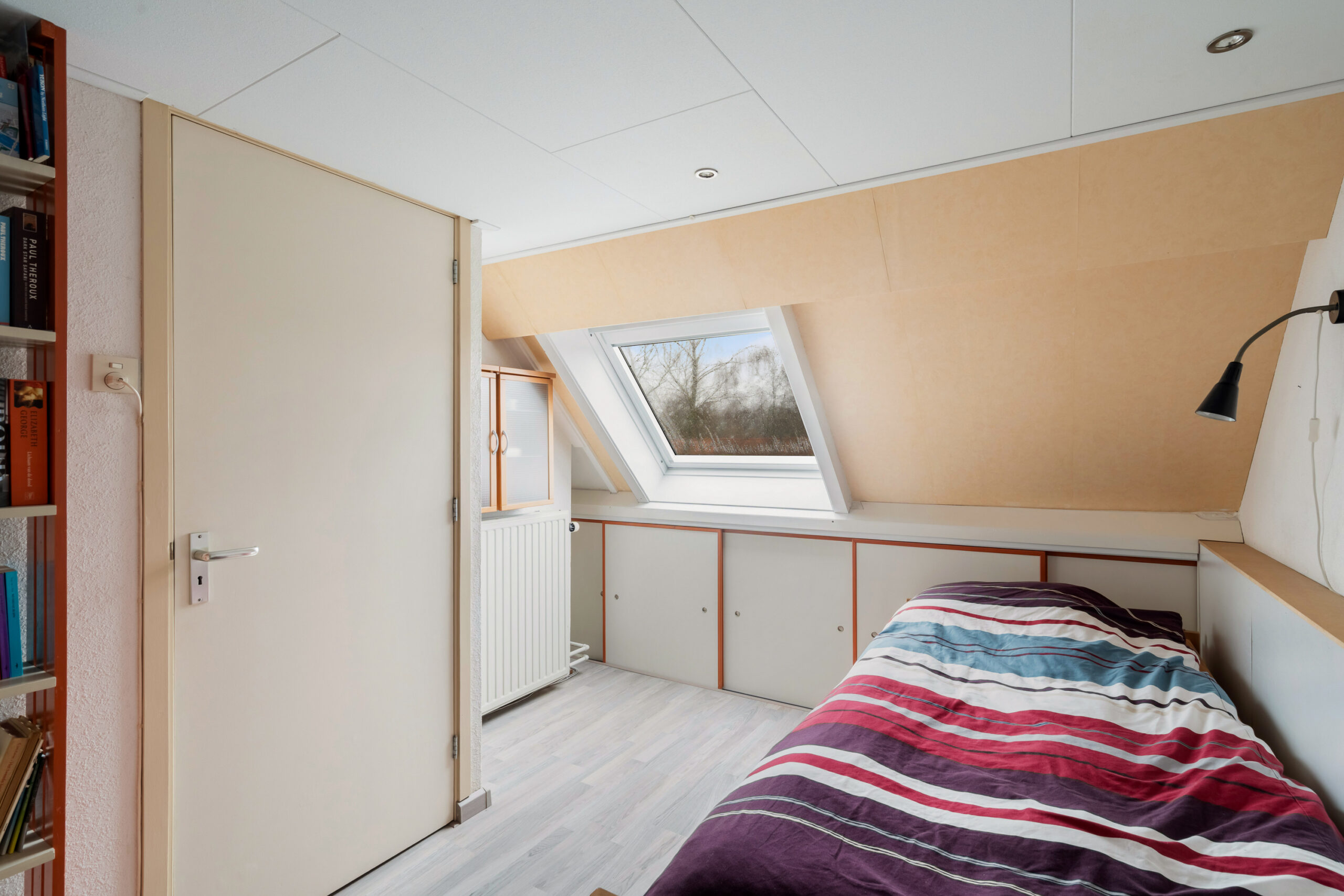 Op deze verdieping bevinden zich twee slaapkamers, een berging en de tweede badkamer. Dankzij de dakkapel is de slaapkamer aan de voorzijde verrassend ruim.