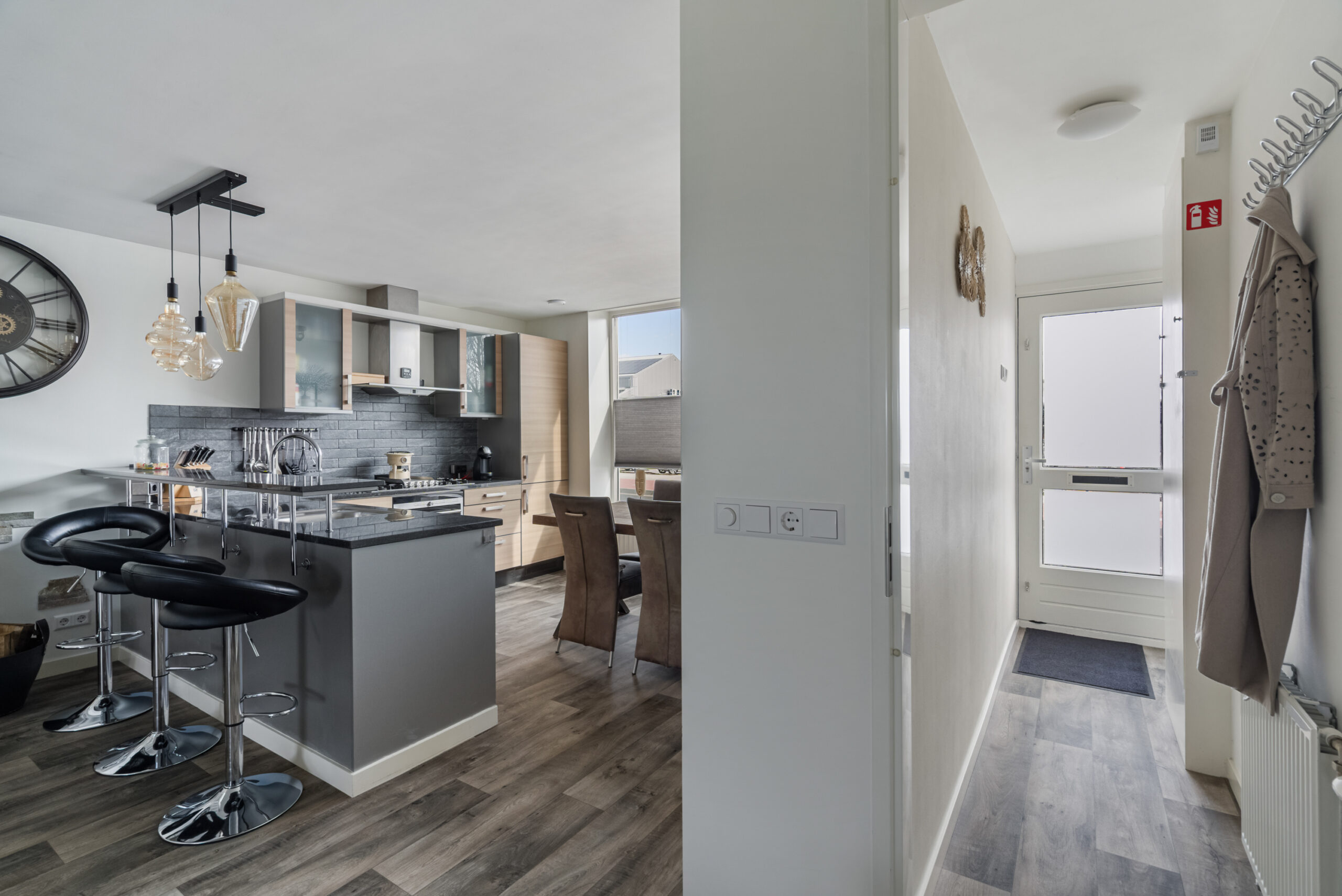 – Bijkeuken met aansluiting voor was-apparatuur,