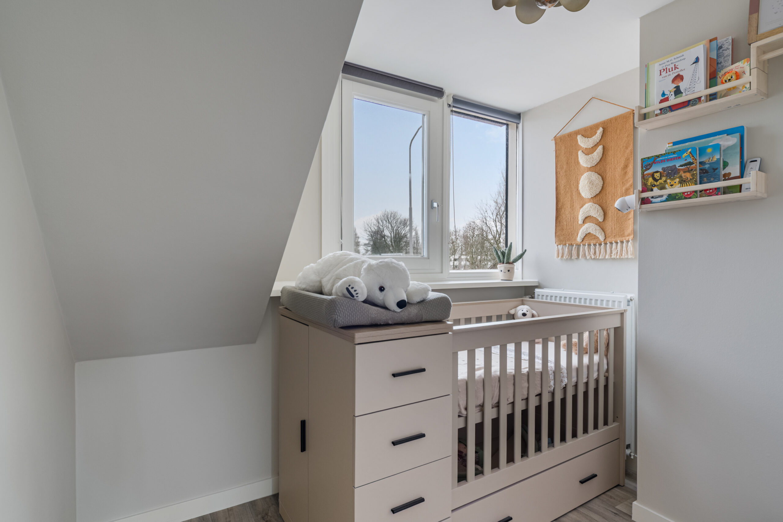 Overloop/hal met vaste kastruimte en luik met vlizotrap naar ruime vliering, alwaar 2 kleine dakramen. Grote hoofdslaapkamer met dakkapel aan de achterzijde, doorgang naar goed ingedeelde en moderne badkamer met douche, 2e toilet en wastafelmeubel. Kleine slaap- of werkkamer aan de voorzijde, eveneens met dakkapel.