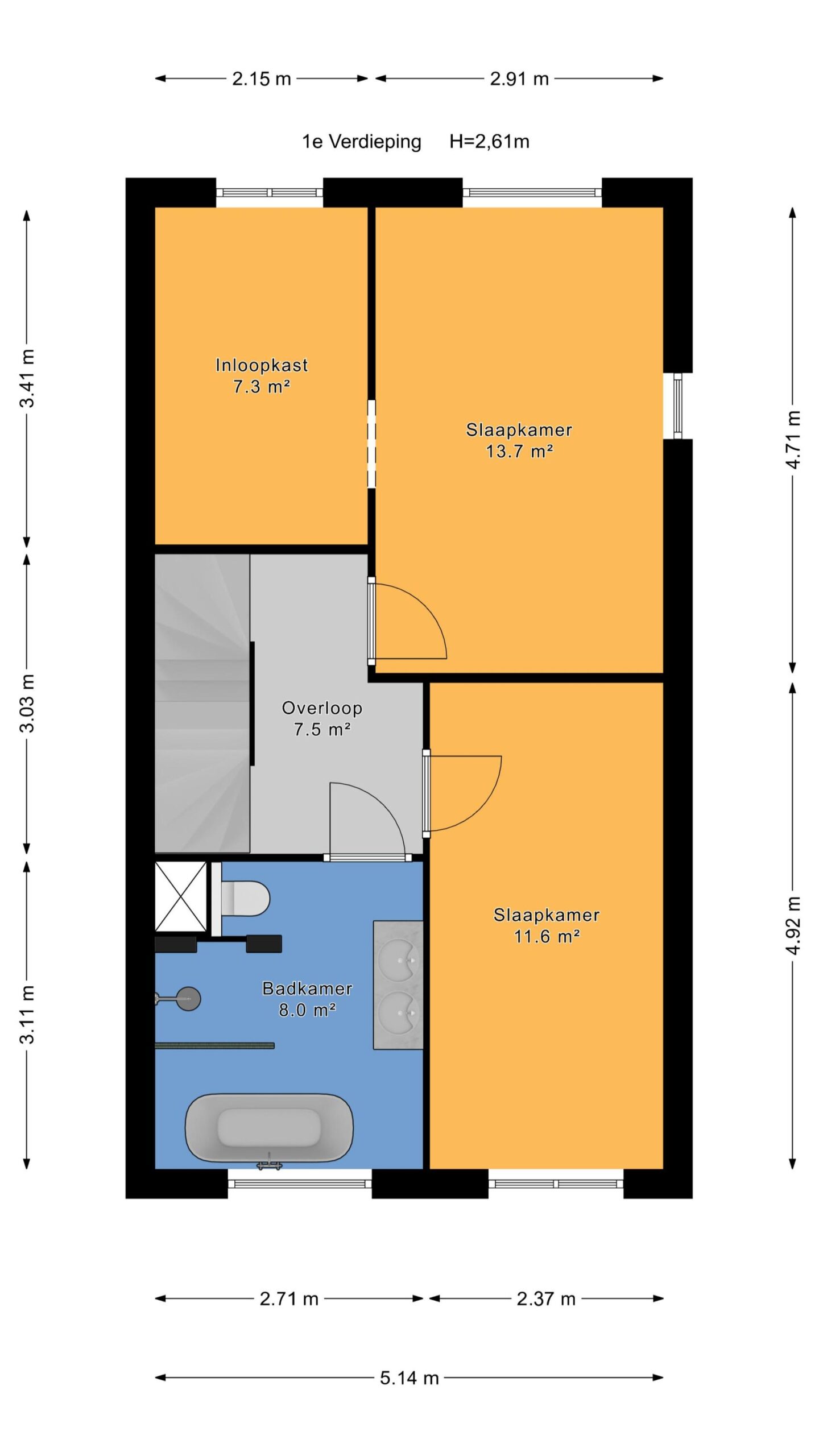 De woning beschikt over 3 volwaardige slaapkamers. Oorspronkelijk heeft de 1e etage 3 slaapkamers, maar nu is 1 slaapkamer in gebruik als inloopkast. Ook de badkamer is een kleine wellness: instapklaar en tot in detail verzorgd.