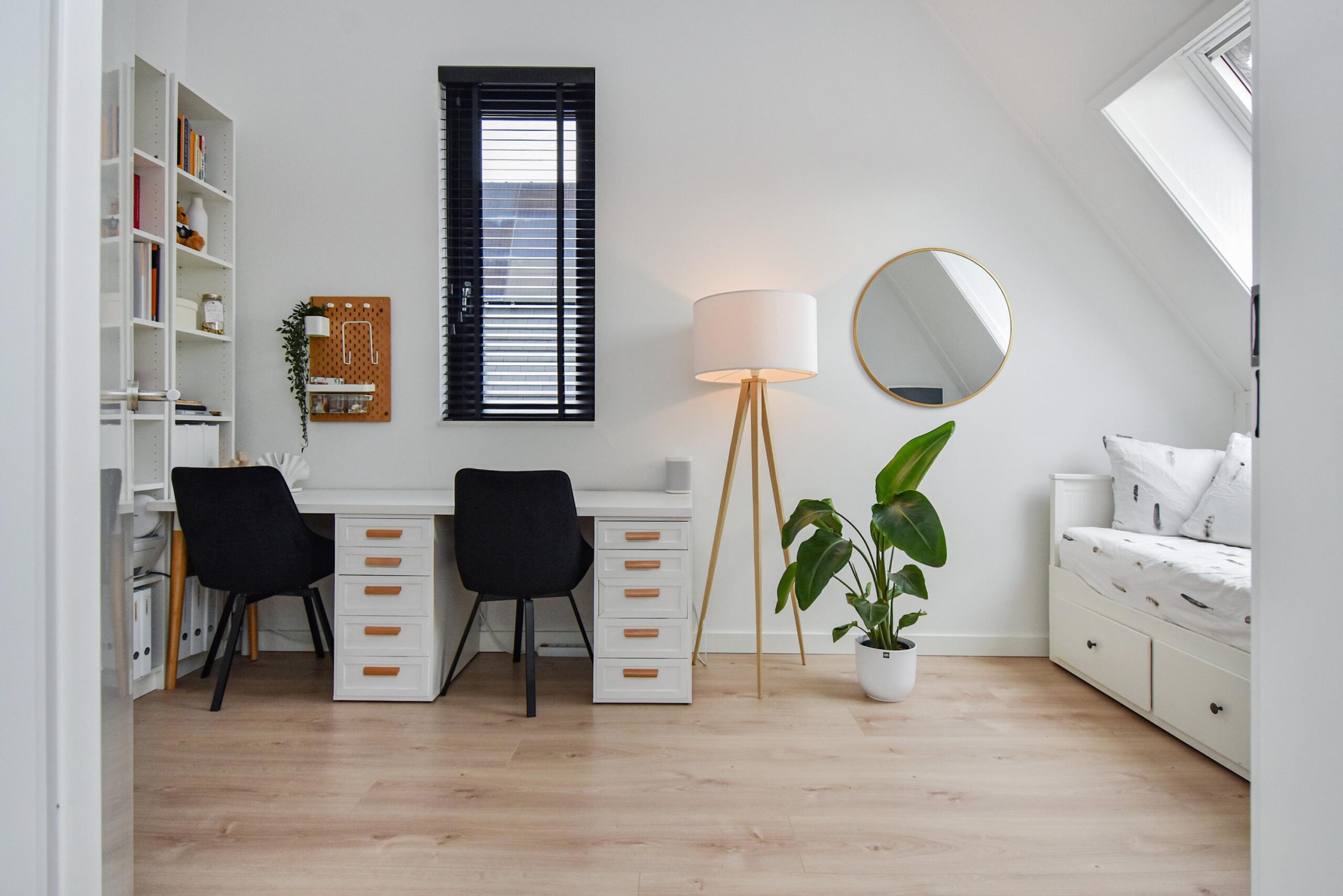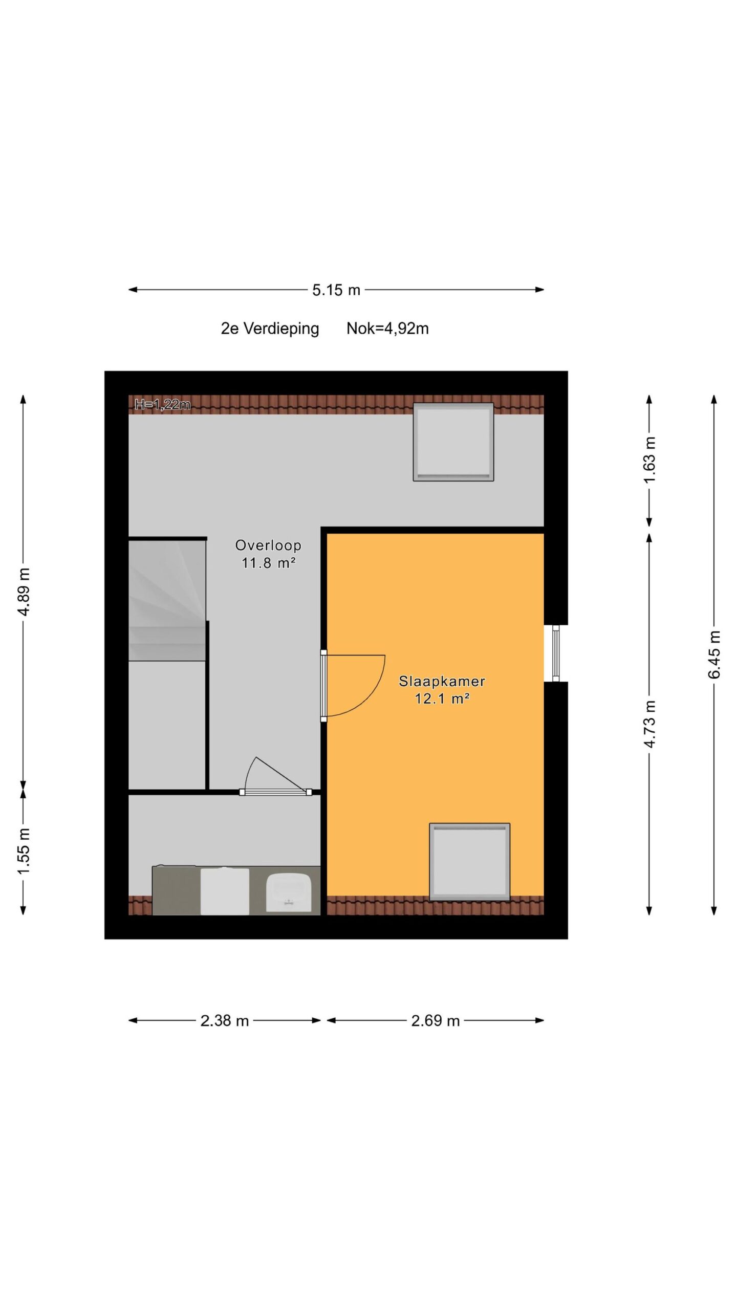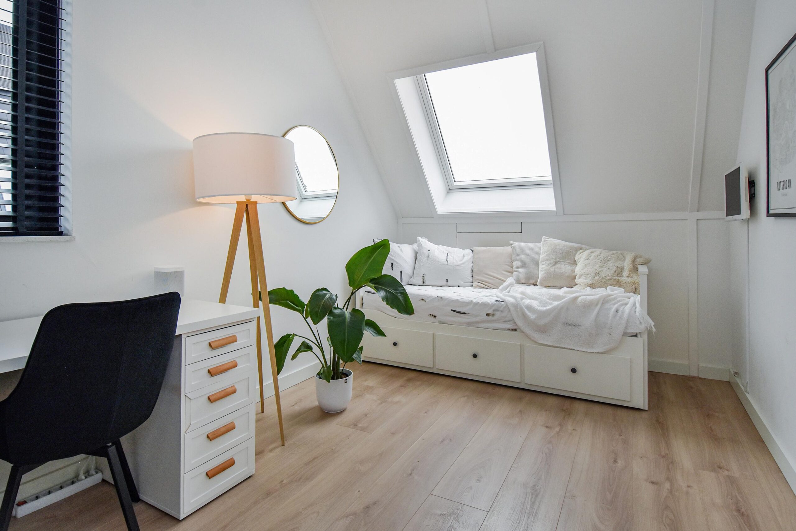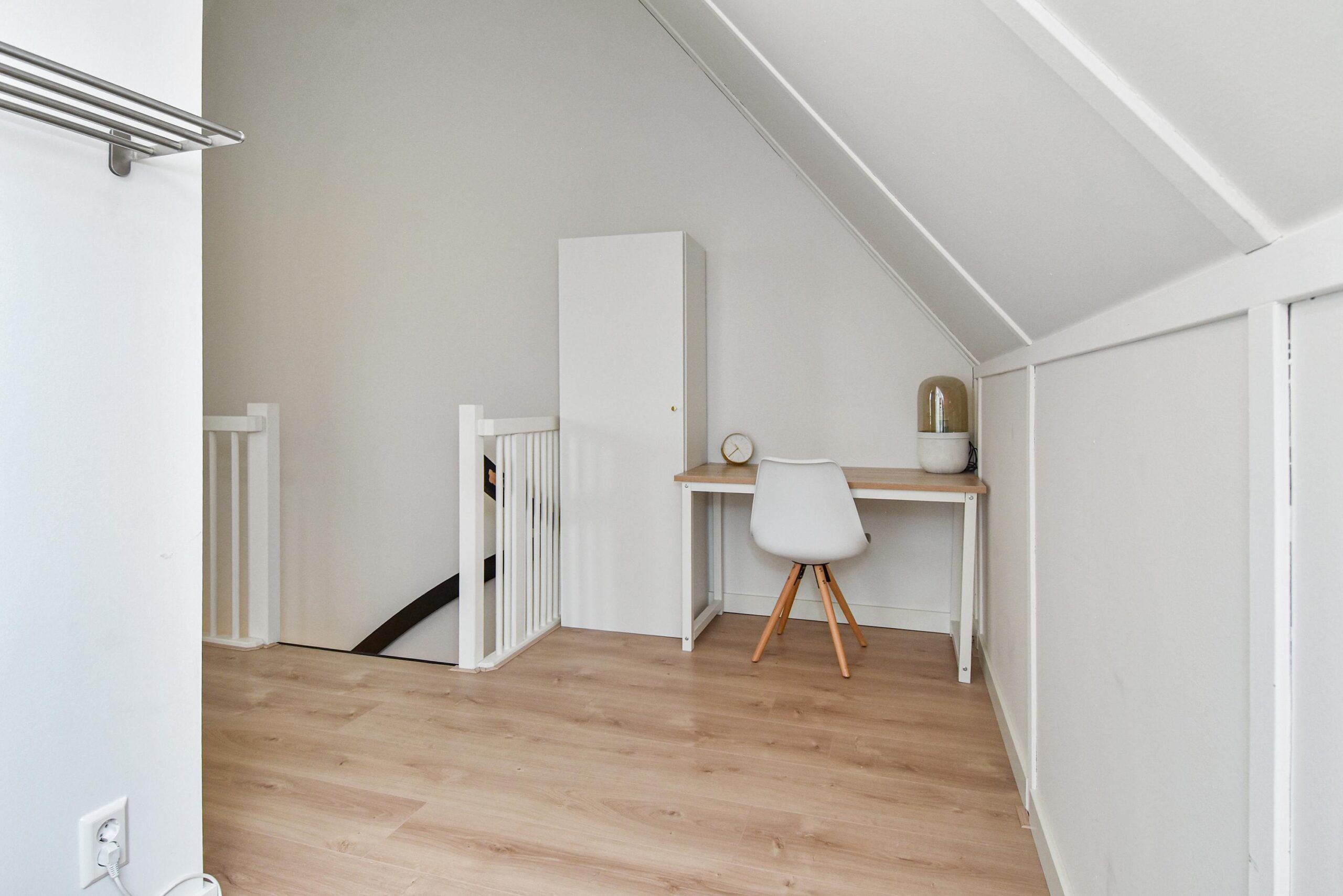 Op de 2e etage is een grote slaapkamer en een ruime overloop waar een werkruimte gerealiseerd kan worden. Tevens is er een aparte wasruimte.