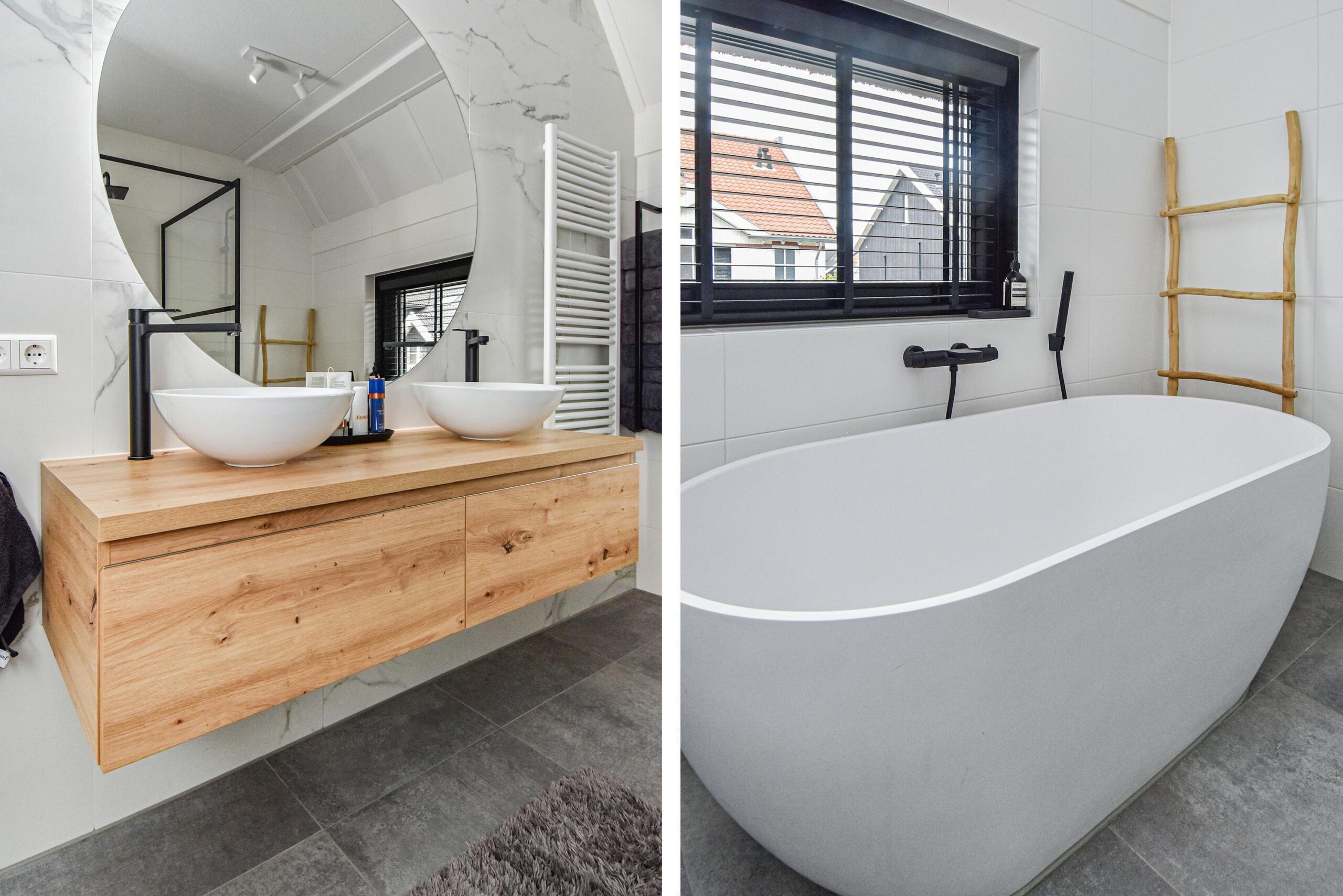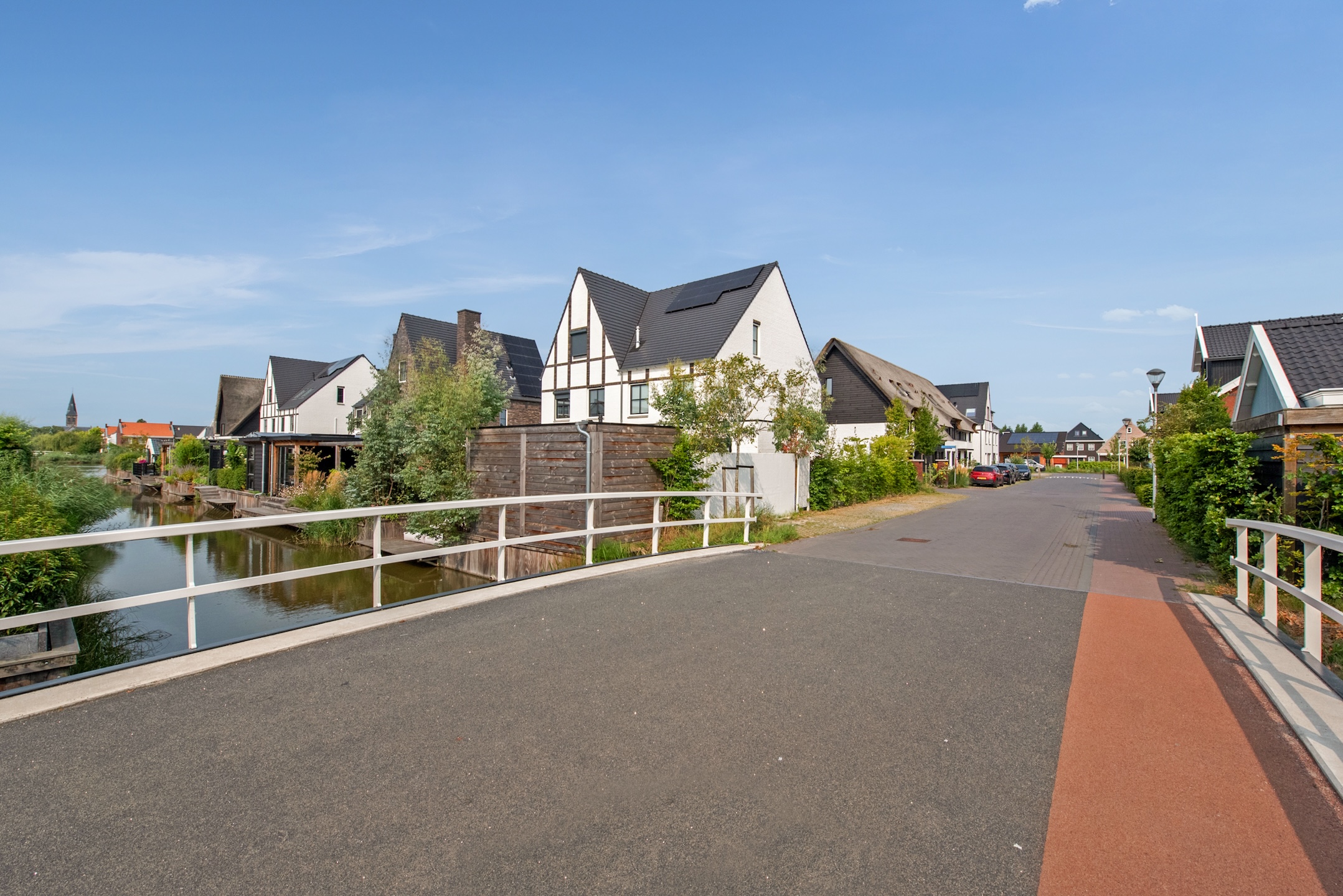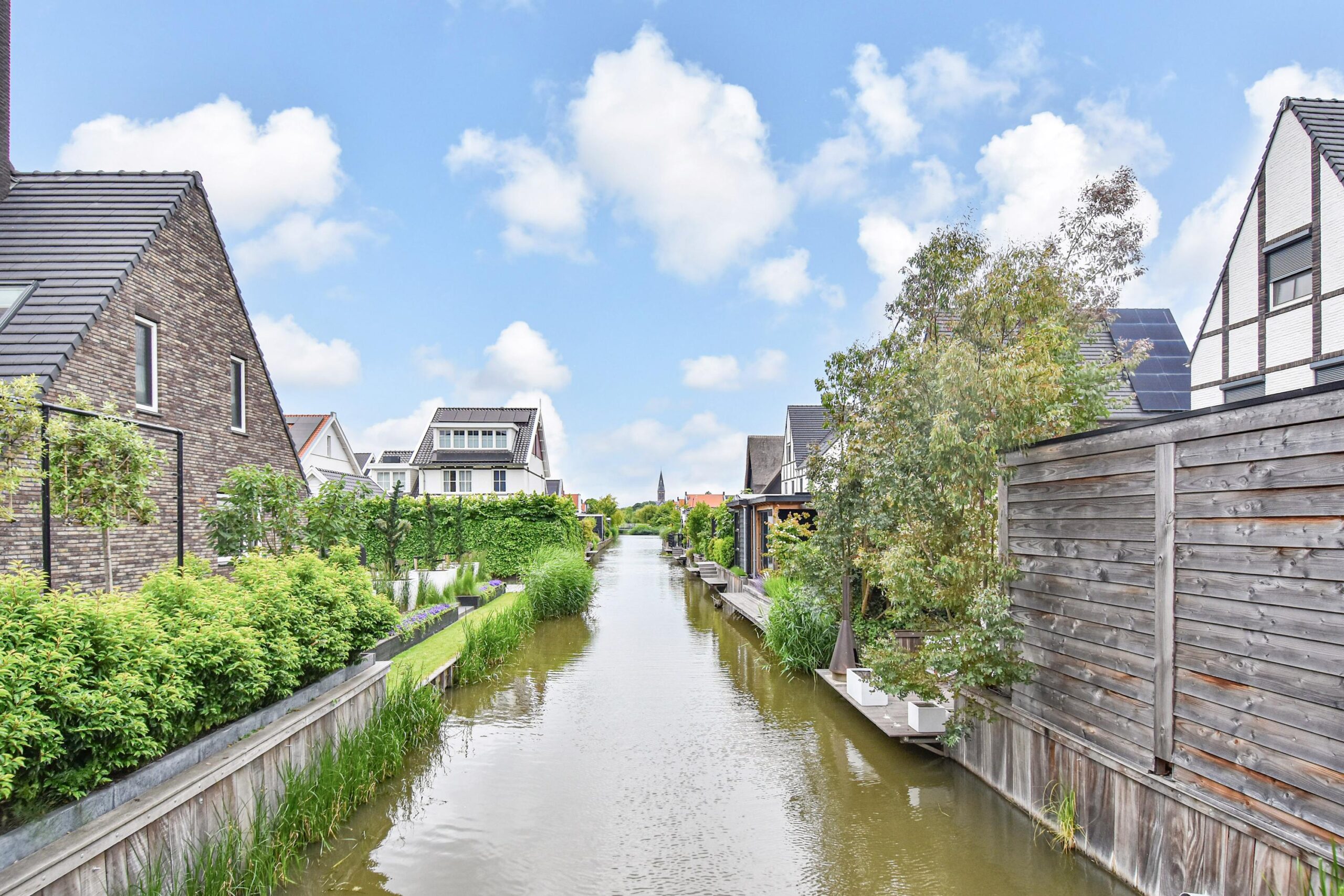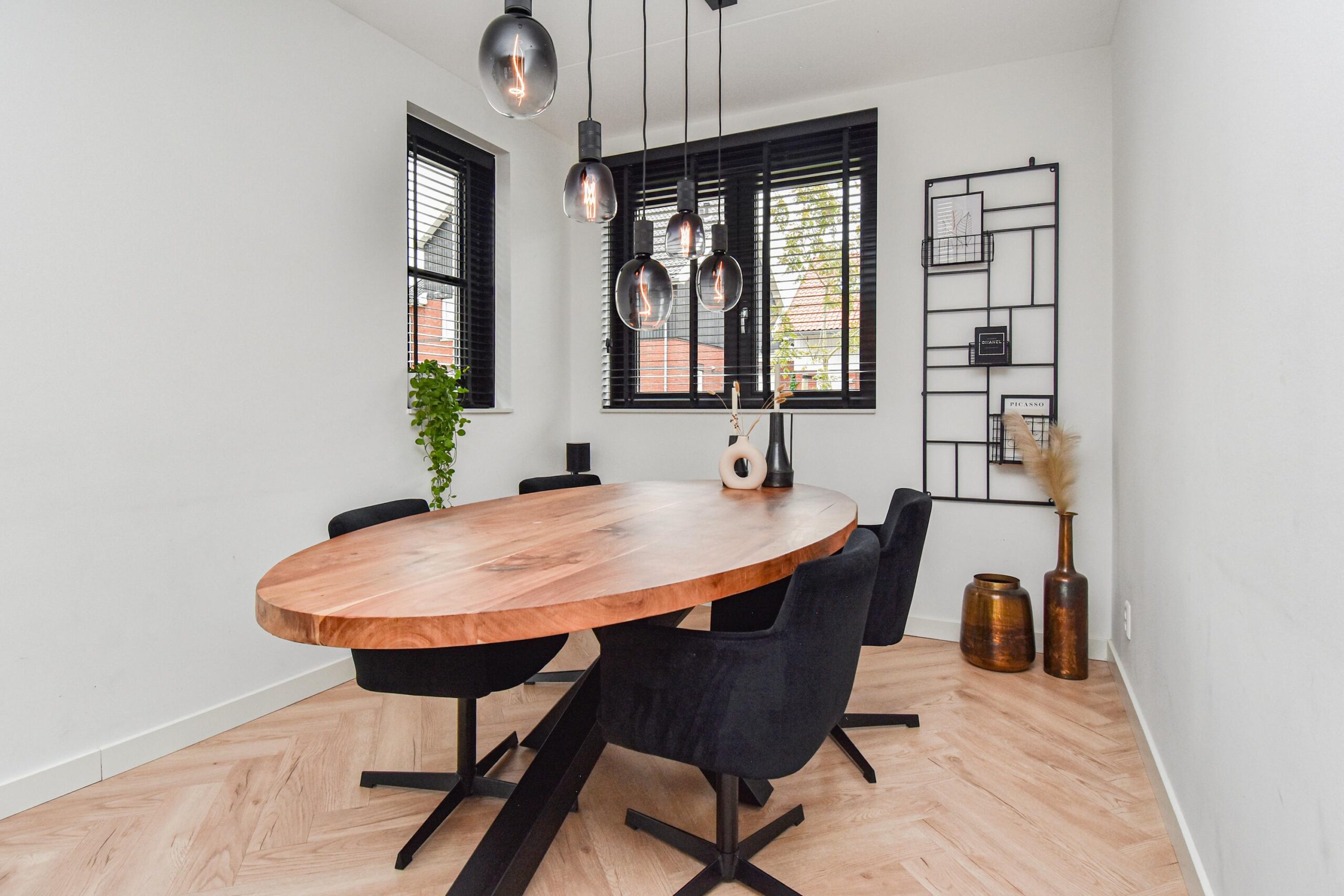 Binnen stap je een uitgebouwde woonkamer binnen, waar natuurlijk licht en sfeer samenkomen. De luxe open keuken met groot kookeiland is een ware eyecatcher – ideaal voor kookliefhebbers en gezellige diners. Een visgraat vloer en strakke wandafwerking maken het plaatje compleet.