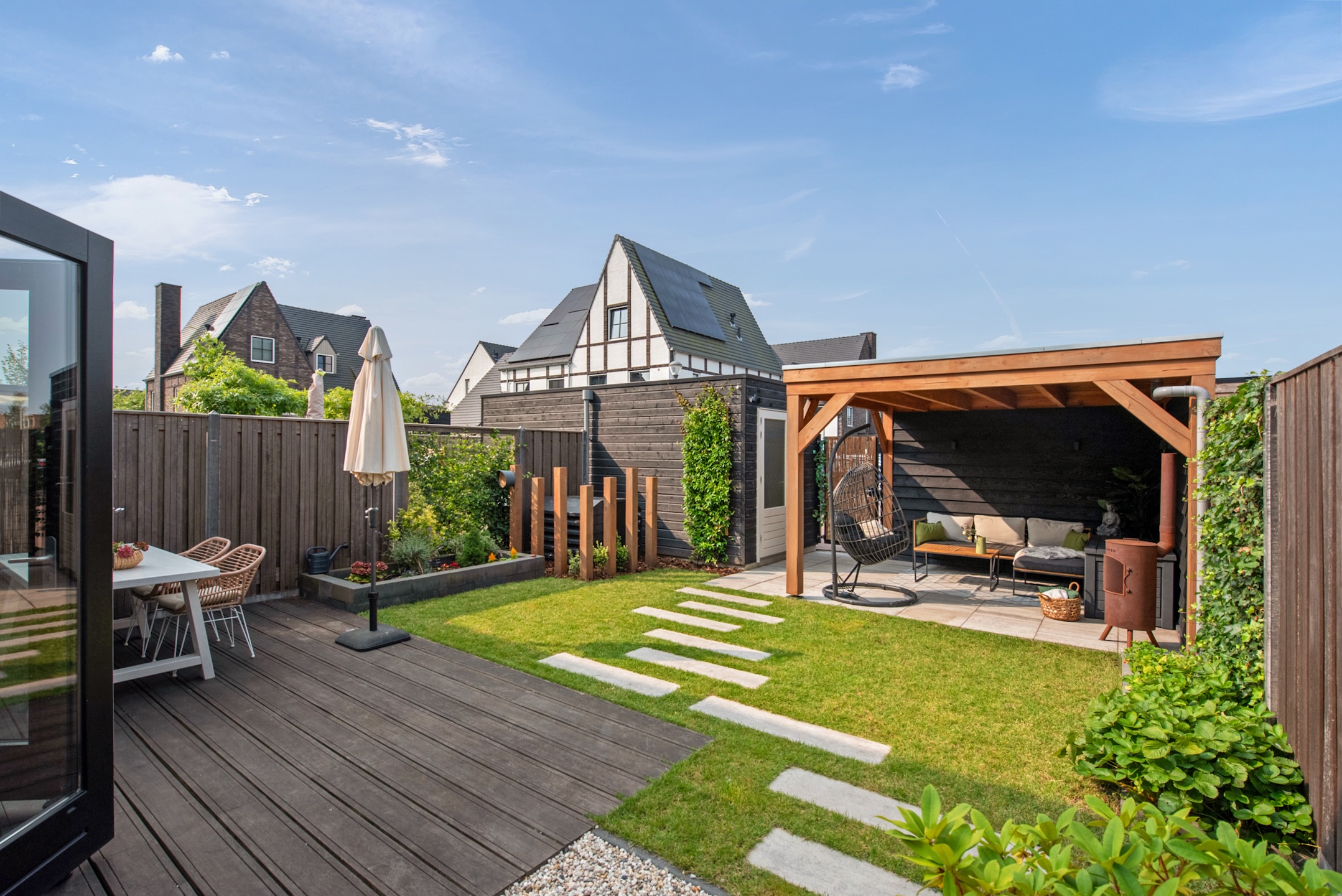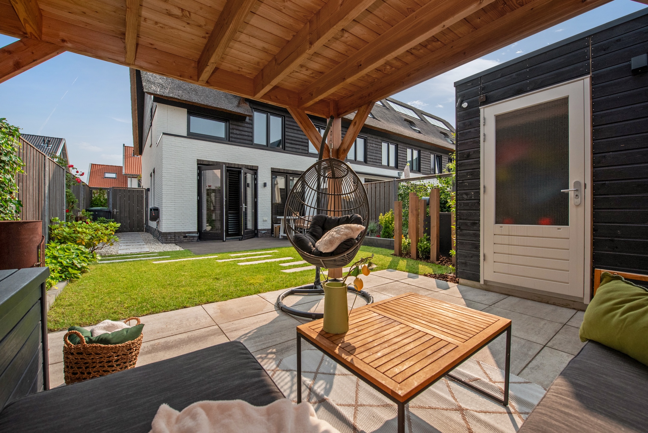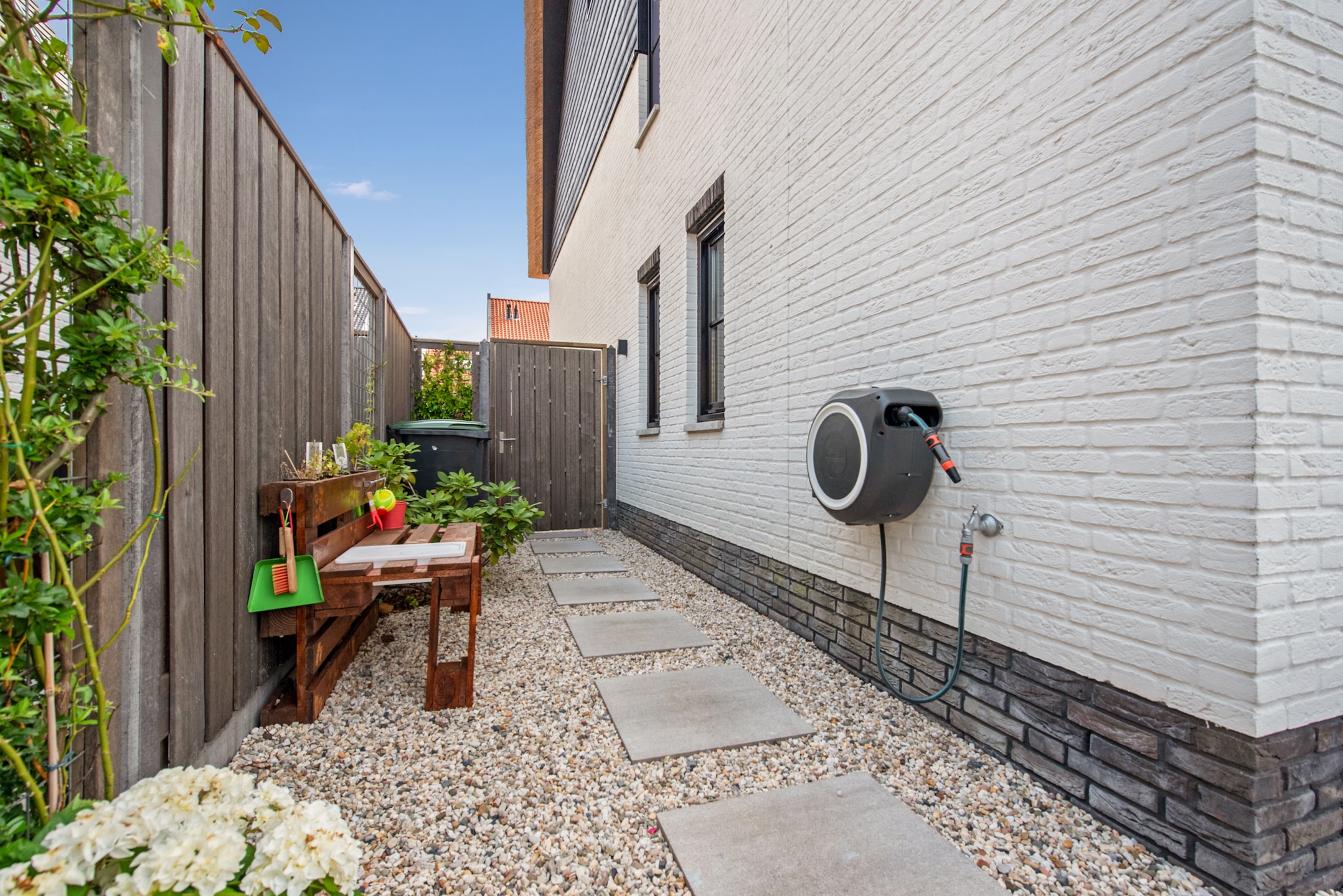 De zonnige tuin op het zuidwesten zorgt voor veel plezier op zomerdagen, terwijl je op het achtergelegen terrein (mandelig) een eigen parkeerplek hebt.