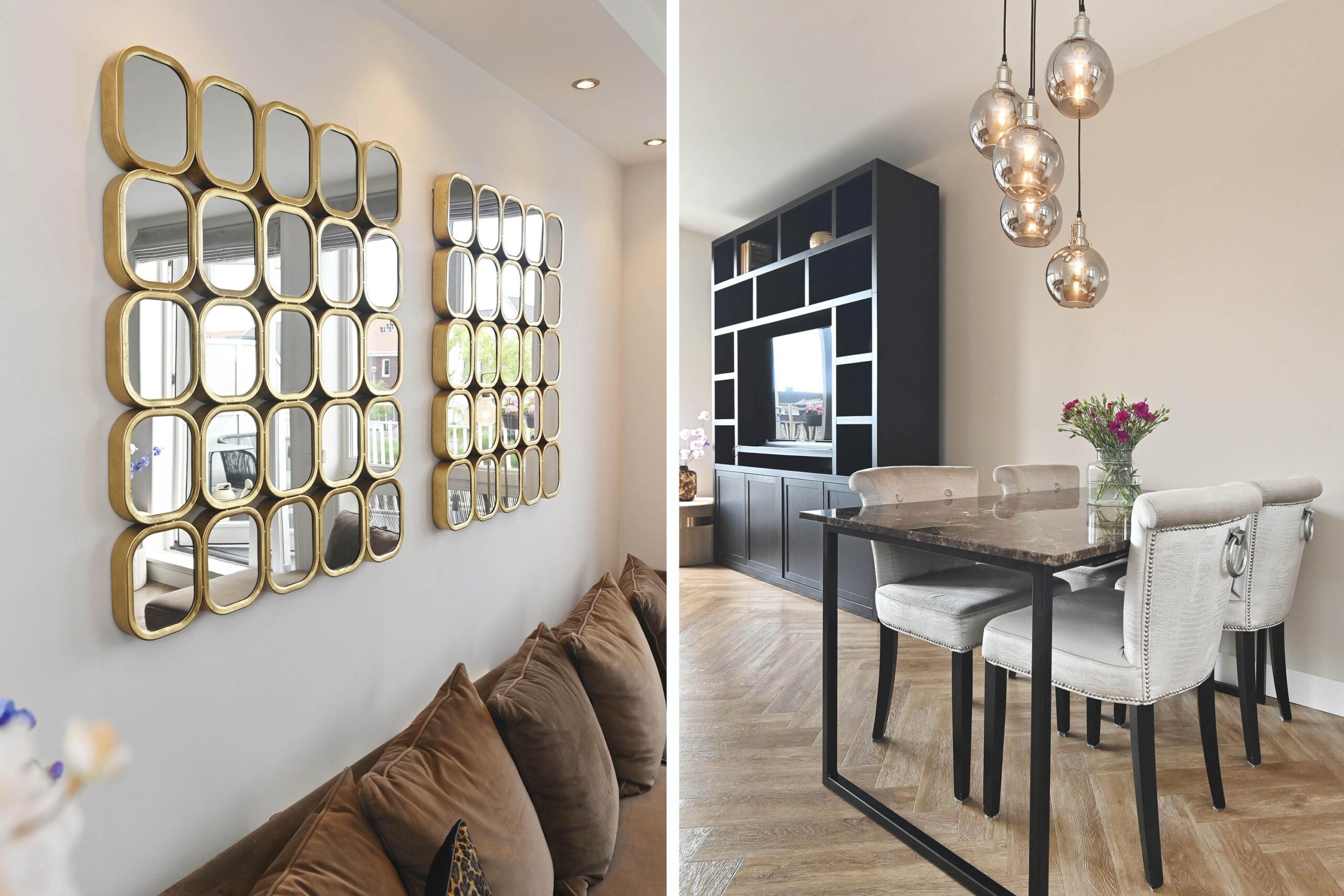 Wauw wat een heerlijke living! De keurige afwerking, met een visgraat vloer en gestucte wanden, straalt direct luxe uit.