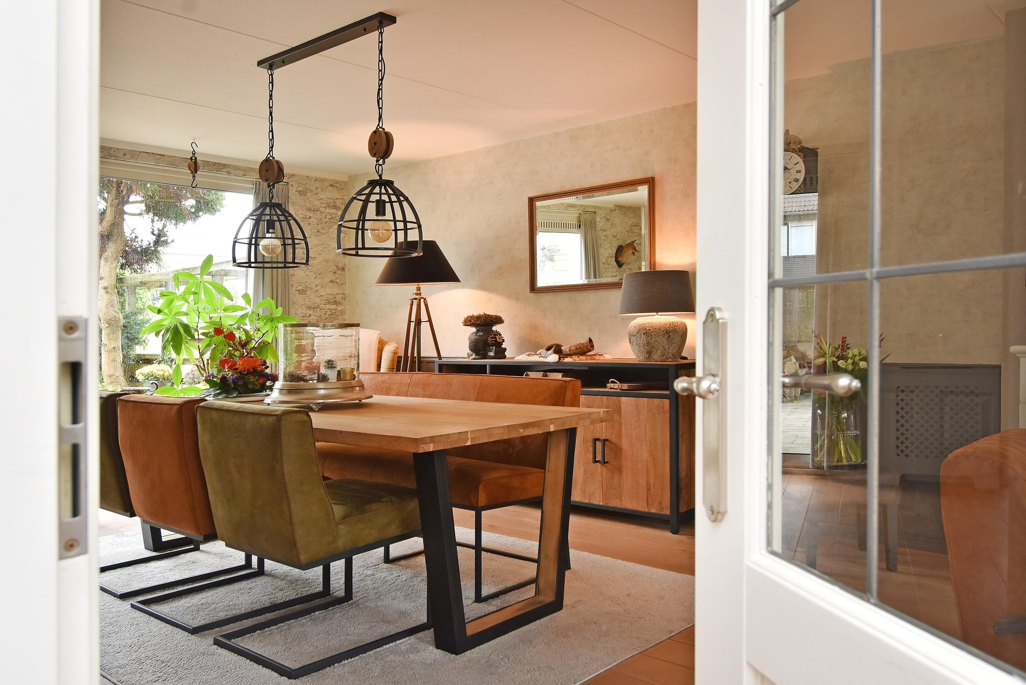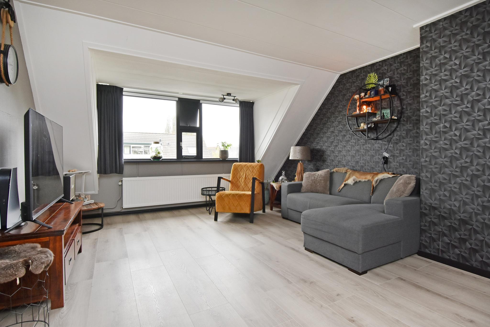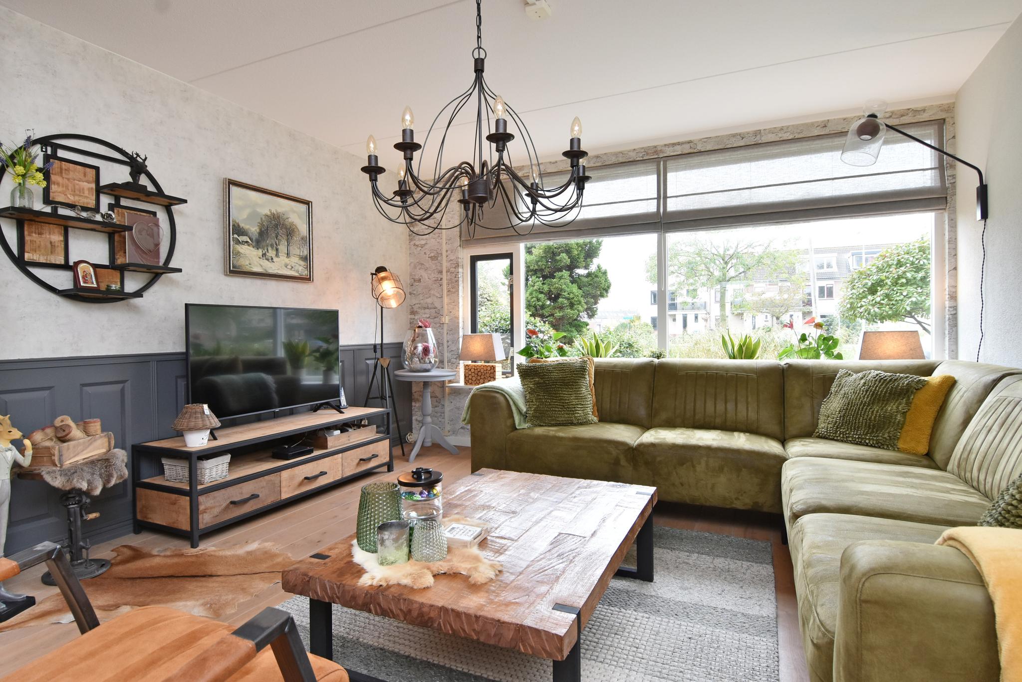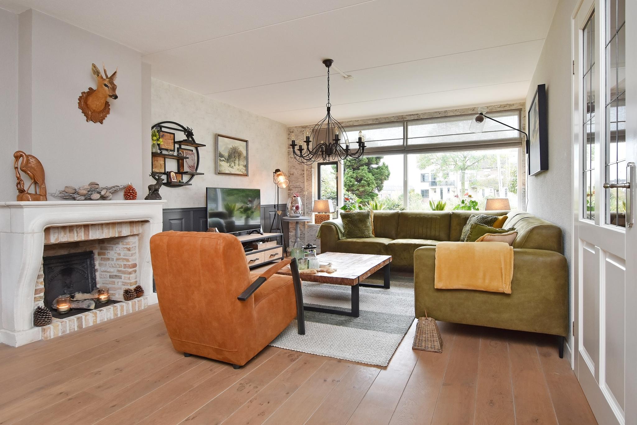 Woonkamer: een echt ruime woonkamer met massief houten vloer. Veel lichtinval door zowel de grote raampartijen aan de voorzijde als schuifpui aan de achterzijde. Vanuit de woonkamer een open verbinding naar de keuken.