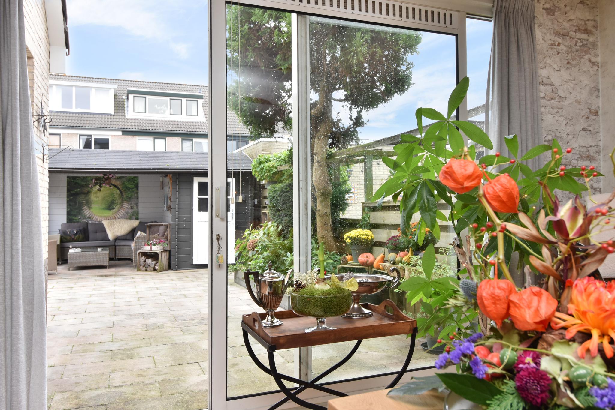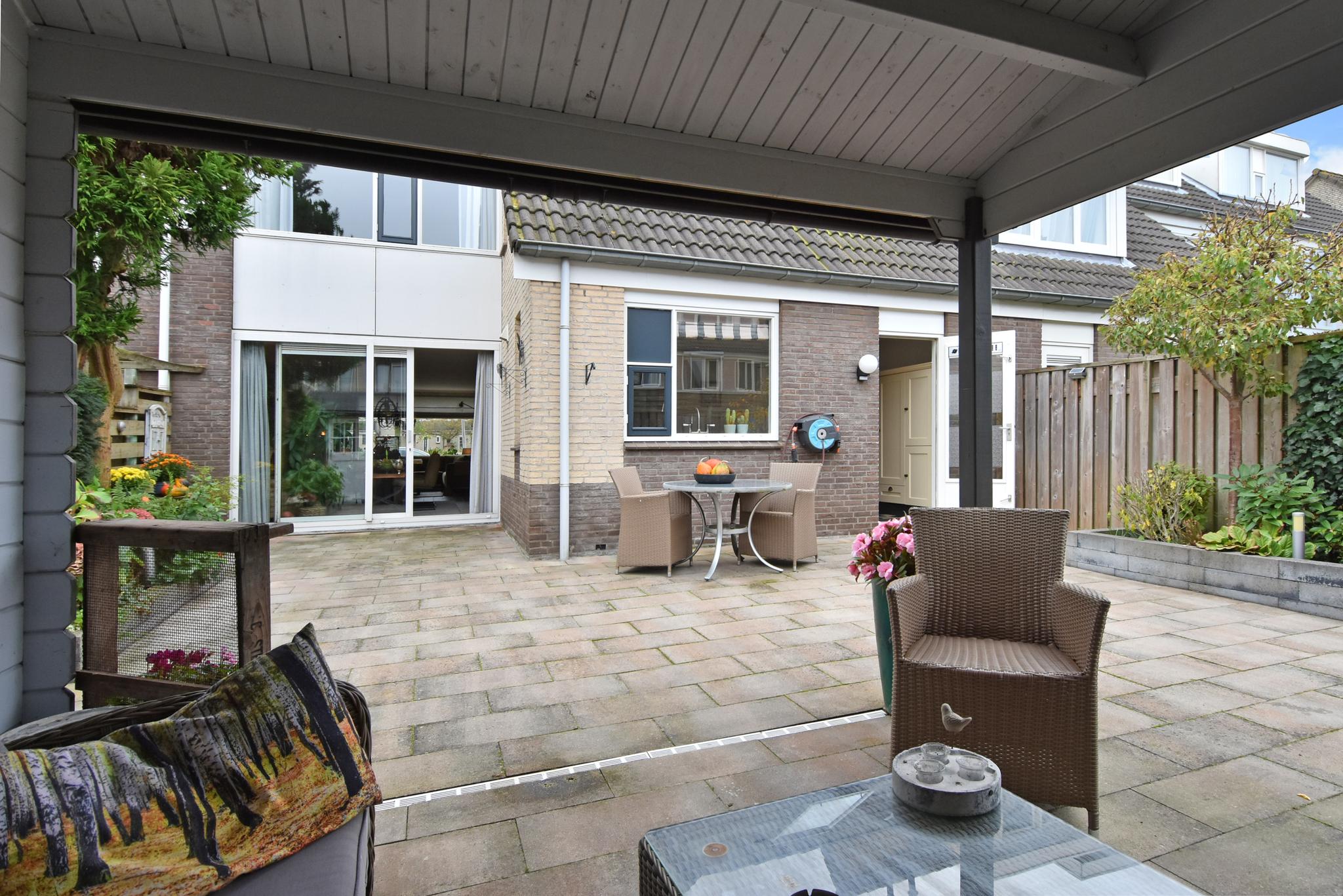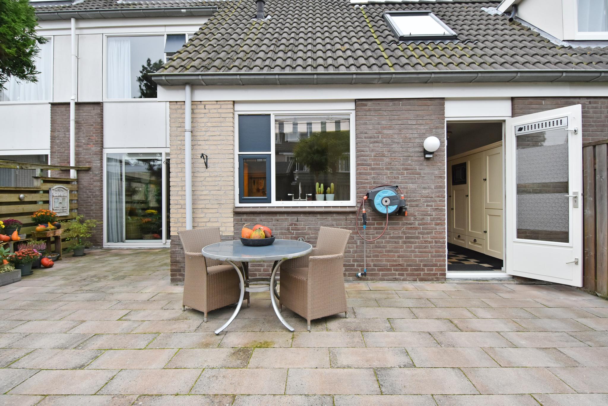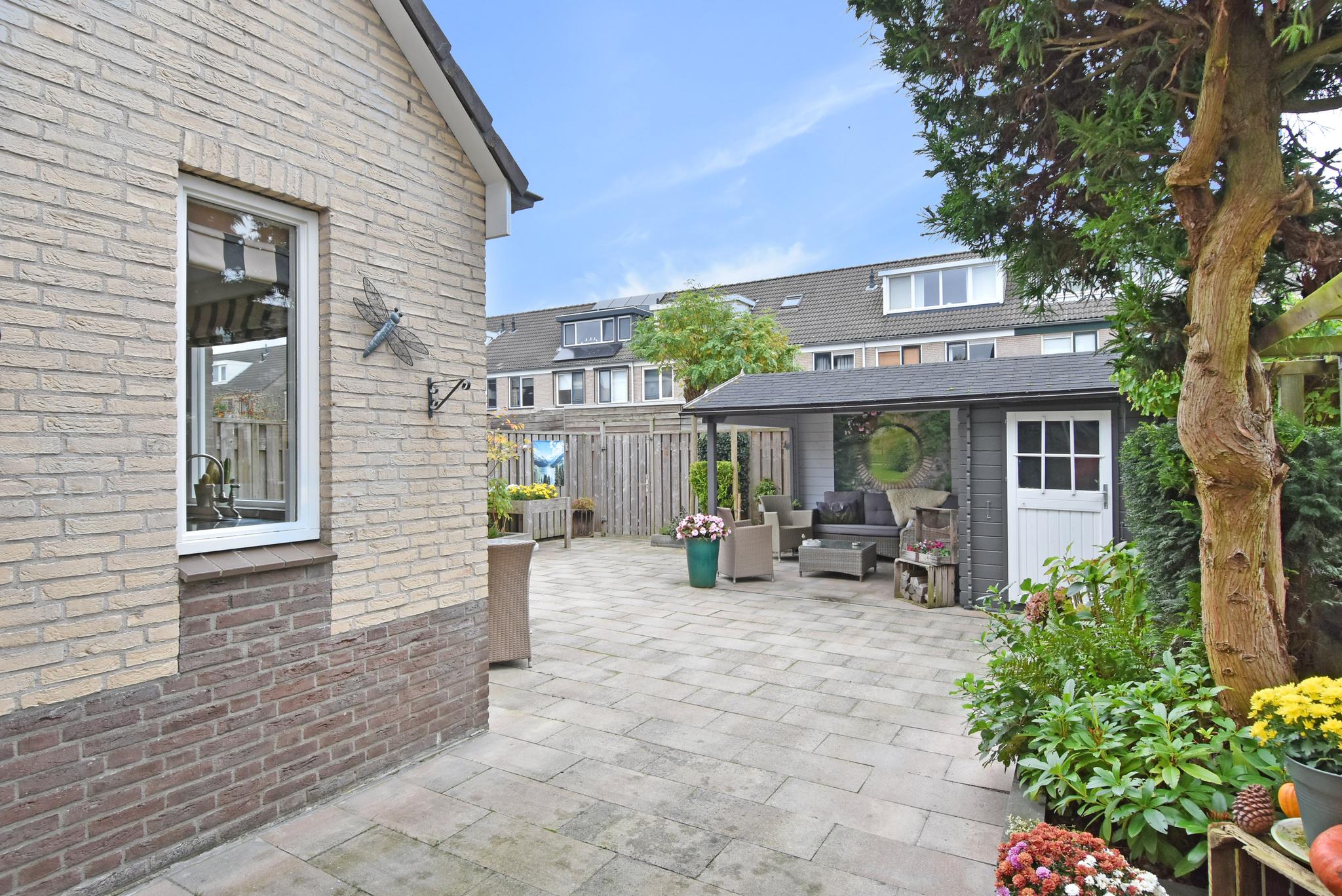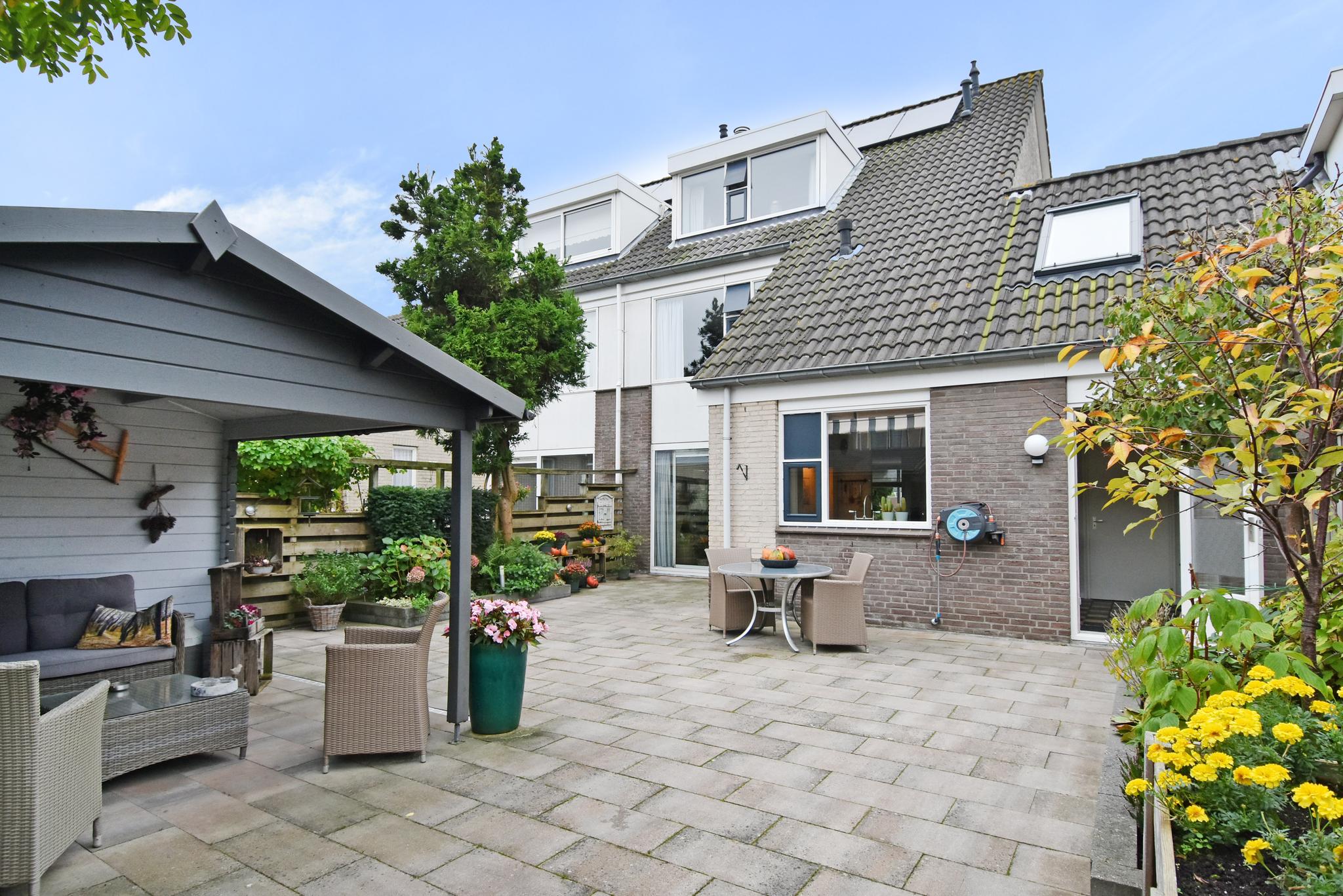 Tuin: leuk ingedeelde tuin met meerdere terrassen, mooi aangelegd met volwassen groen. Achterin de tuin een extra berging/overkapping en poortdeur. De tuin is gelegen op het oosten, de huidige eigenaren genieten volop van deze tuin in het zonnetje en met de hete zomers ook van de schaduw.
