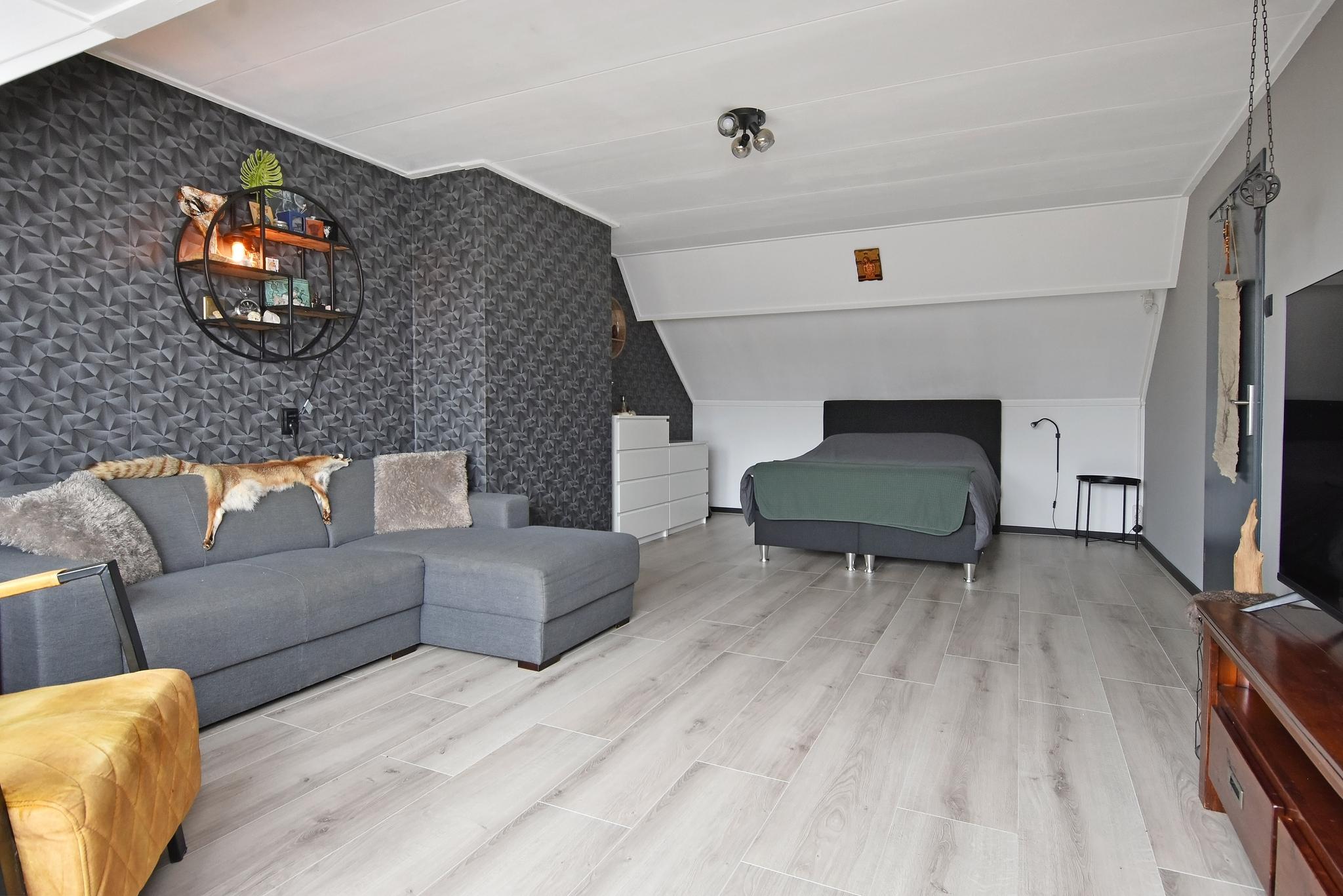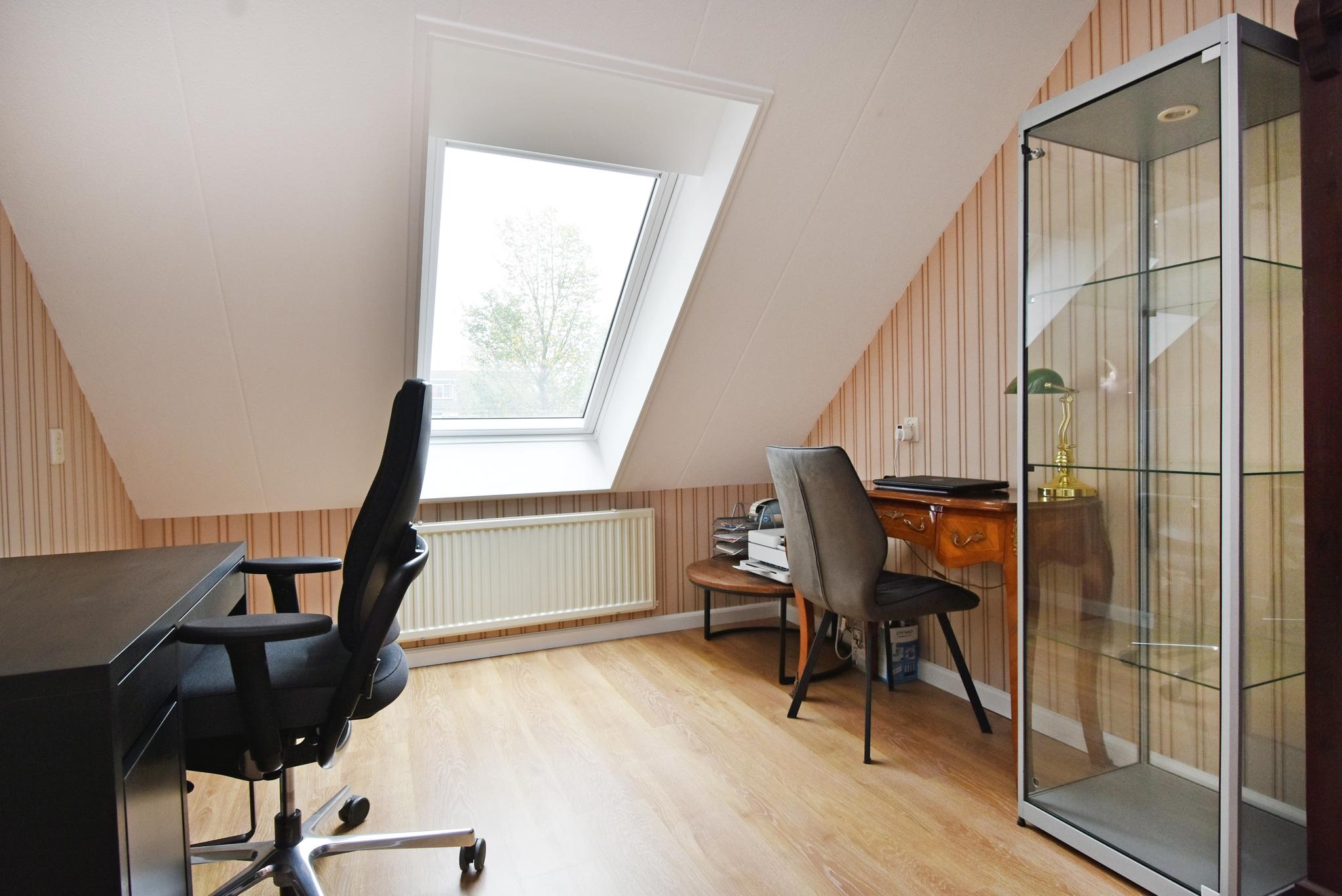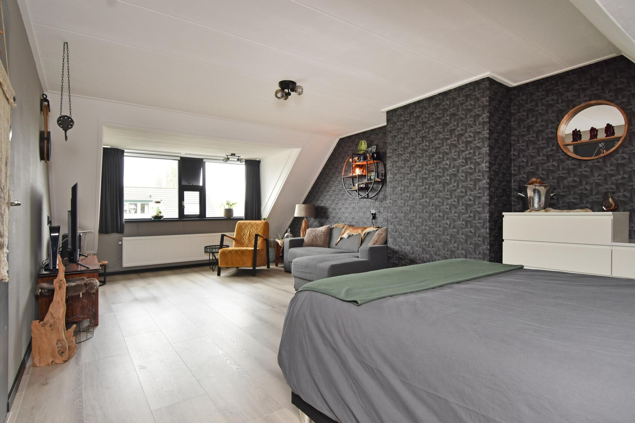 Slaapkamers 1e etage: op deze etage bevinden zich 4 grote slaapkamers. Boven de garage zijn 2 slaapkamers, waarvan 1 is v.v. een grote vaste kast (achterkamer) en beiden zijn v.v. een nieuwe kunststofdakramen met zonwering binnen en buiten. Alle slaapkamers zijn v.v. een laminaatvloer.