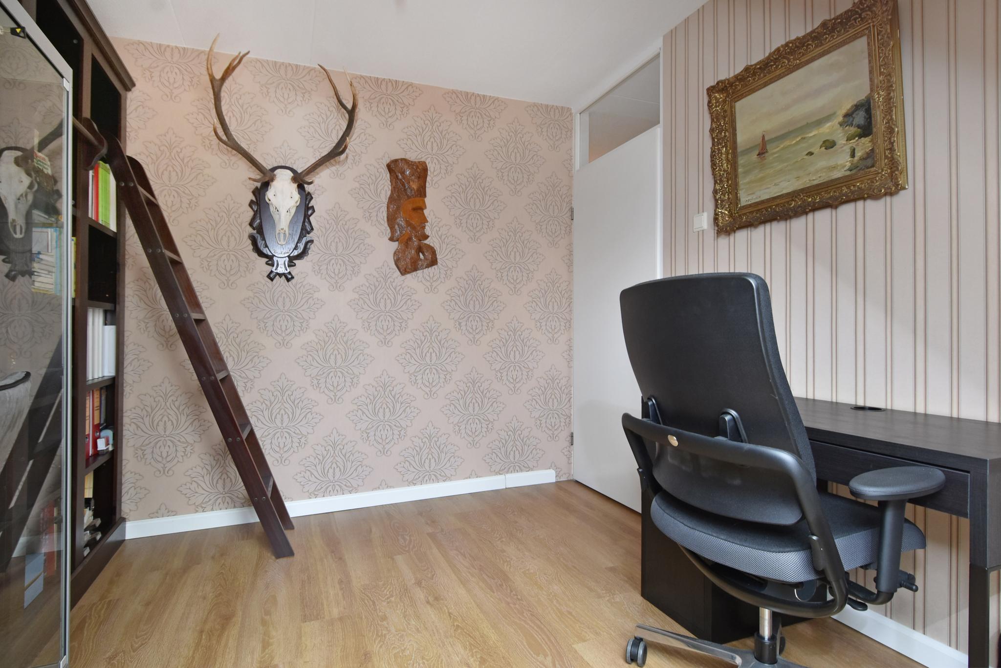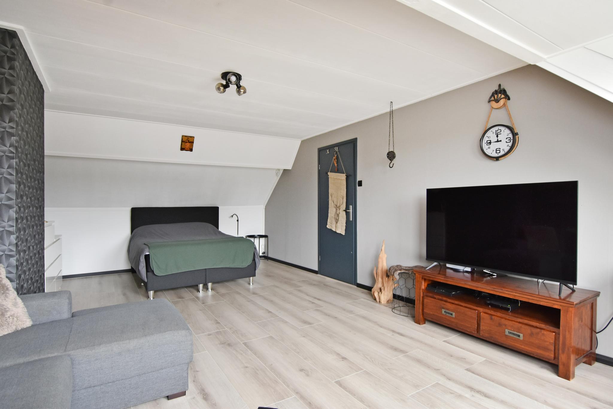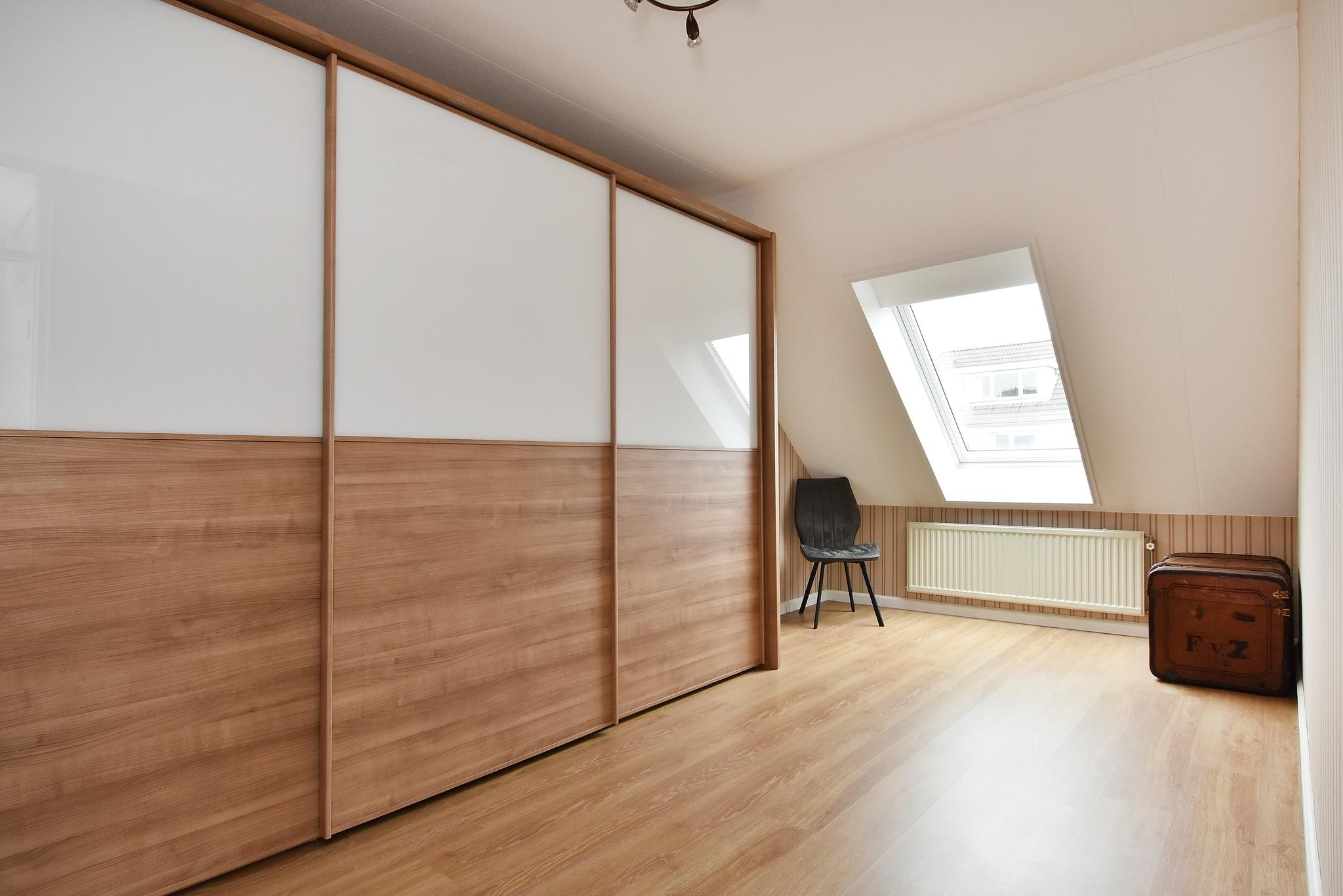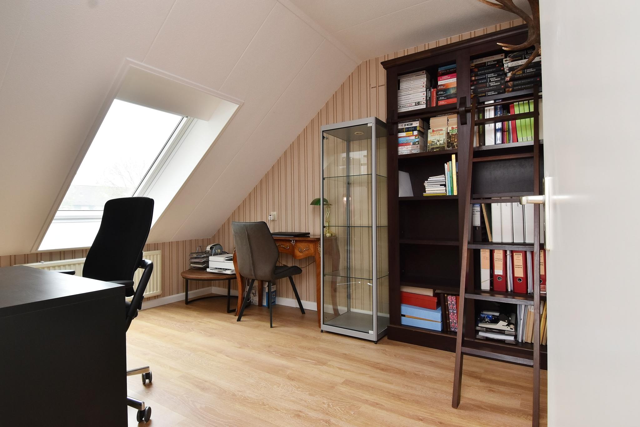 Slaapkamers 1e etage: op deze etage bevinden zich 4 grote slaapkamers. Boven de garage zijn 2 slaapkamers, waarvan 1 is v.v. een grote vaste kast (achterkamer) en beiden zijn v.v. een nieuwe kunststofdakramen met zonwering binnen en buiten. Alle slaapkamers zijn v.v. een laminaatvloer.