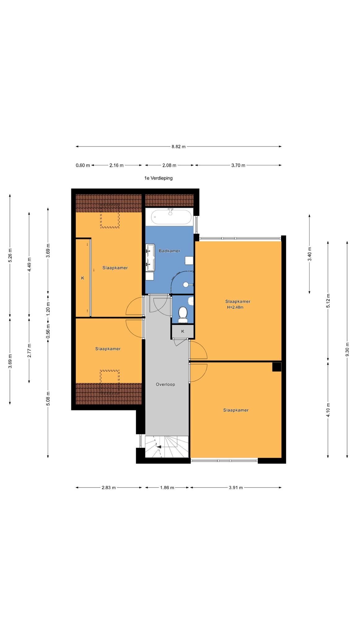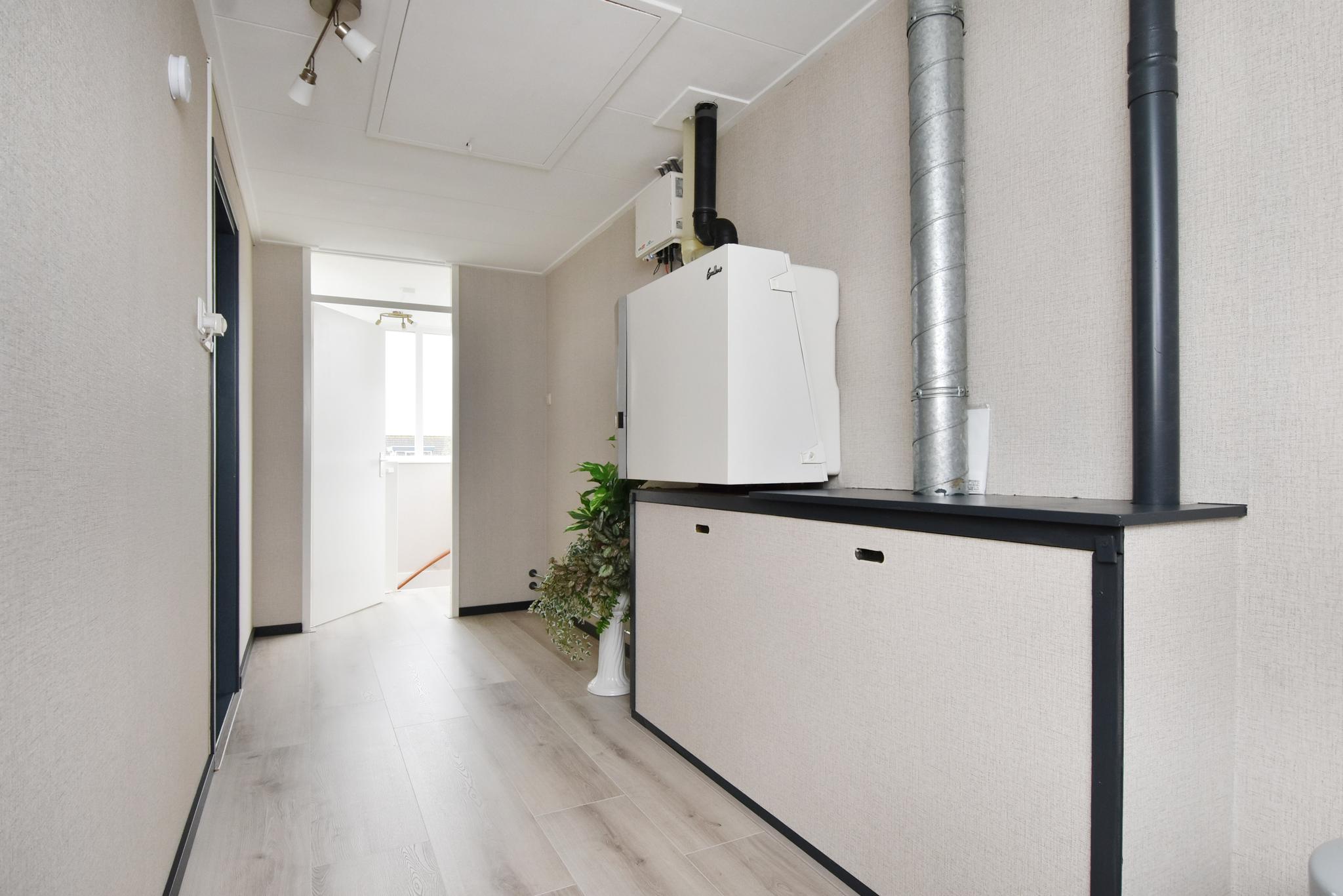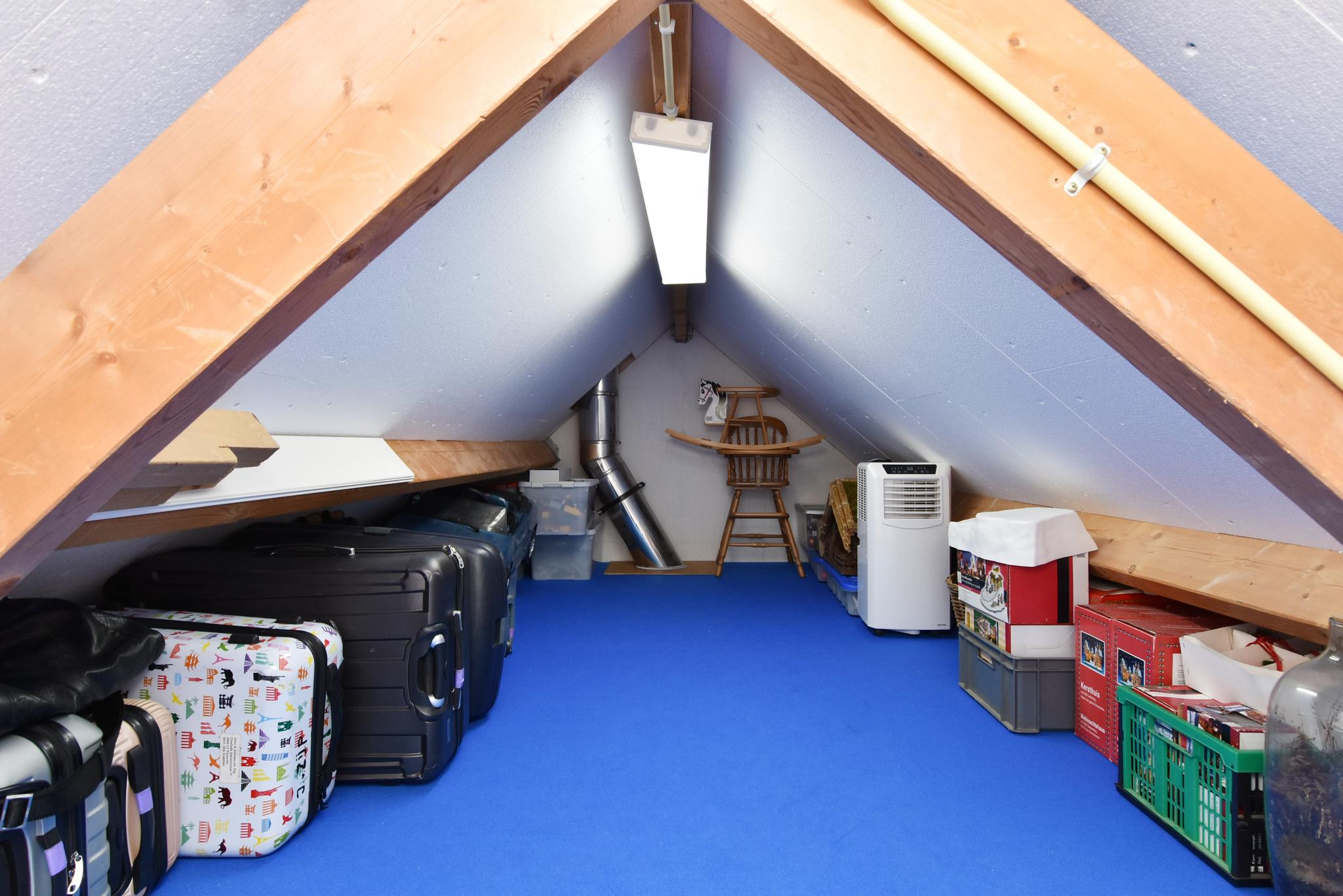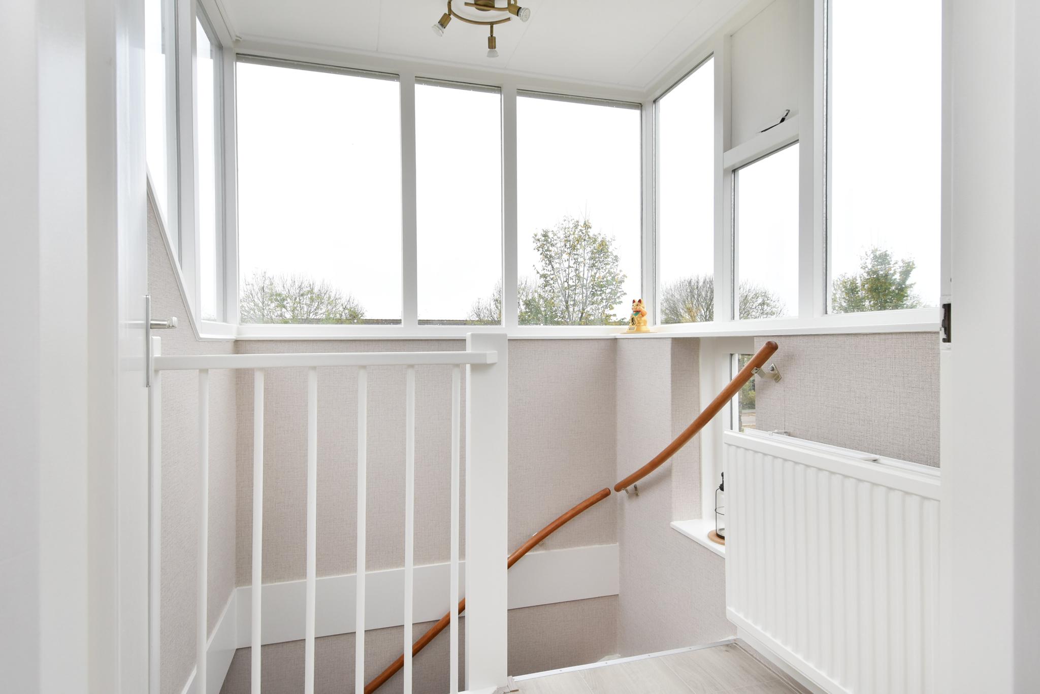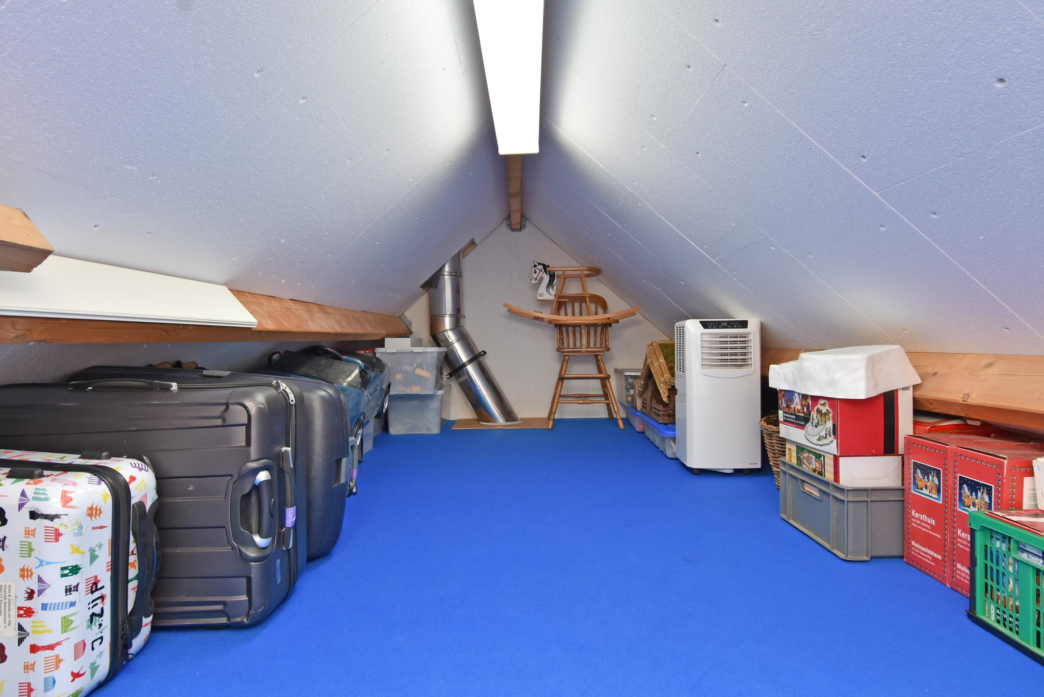 2e Etage: grote overloop v.v. kast, cv-ketel (2007), nieuwe mechanische ventilatie (2024) en veel licht door het glas van het ’torentje’. Het ’torentje’ is v.v. een elektrisch bedienbaar zonnescherm. Op deze etage bevindt zich ook de 5e slaapkamer met dakkapel en de vlizotrap naar de ruime vliering.