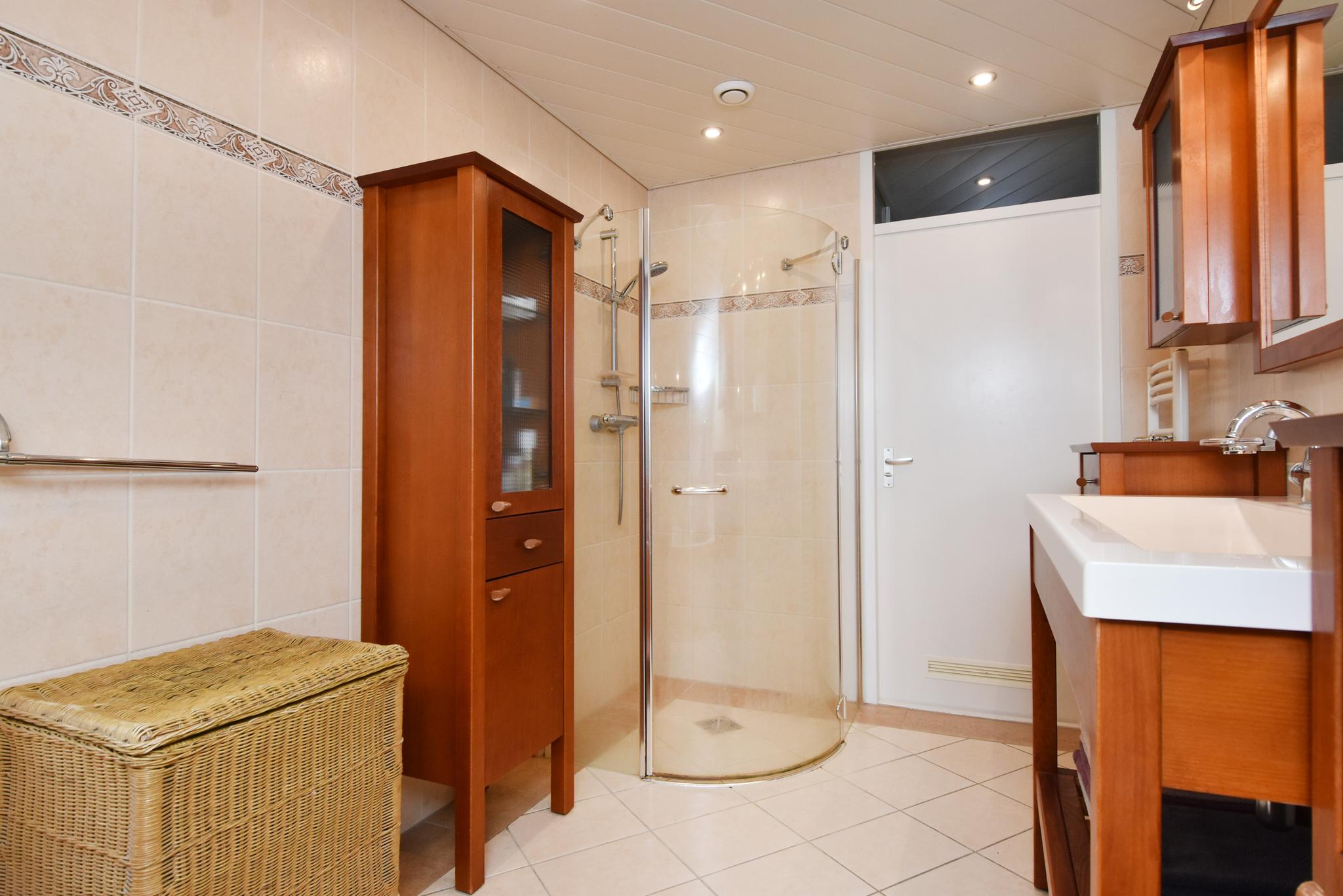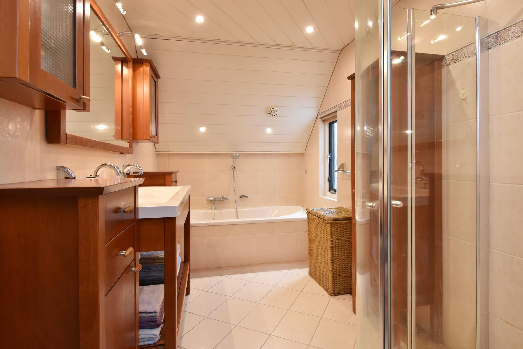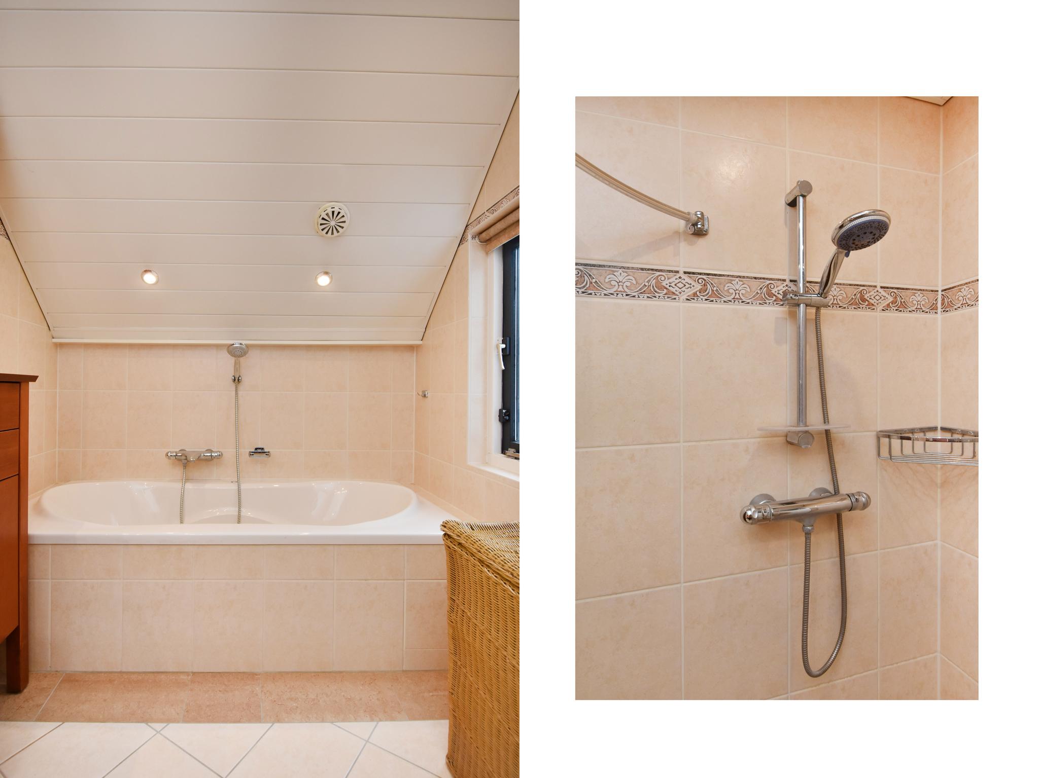 Badkamer & toilet: ruime badkamer met ligbad, douche, een wastafelmeubel met 2 kranen, design radiator en elektrische vloerverwarming. Separaat toilet uitgevoerd in dezelfde stijl als de badkamer.