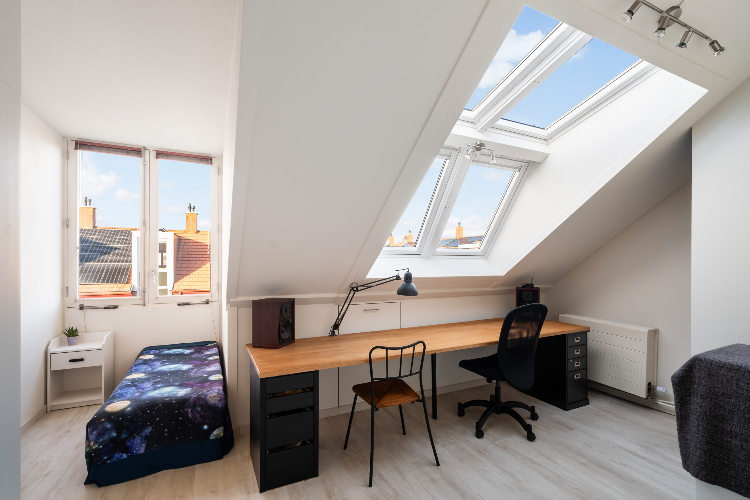 Wauw wat een ruimte! Deze verdieping is optimaal uitgebouwd. Aan de achterzijde zorgt het dakkapel voor een ruime en lichte slaapkamer.