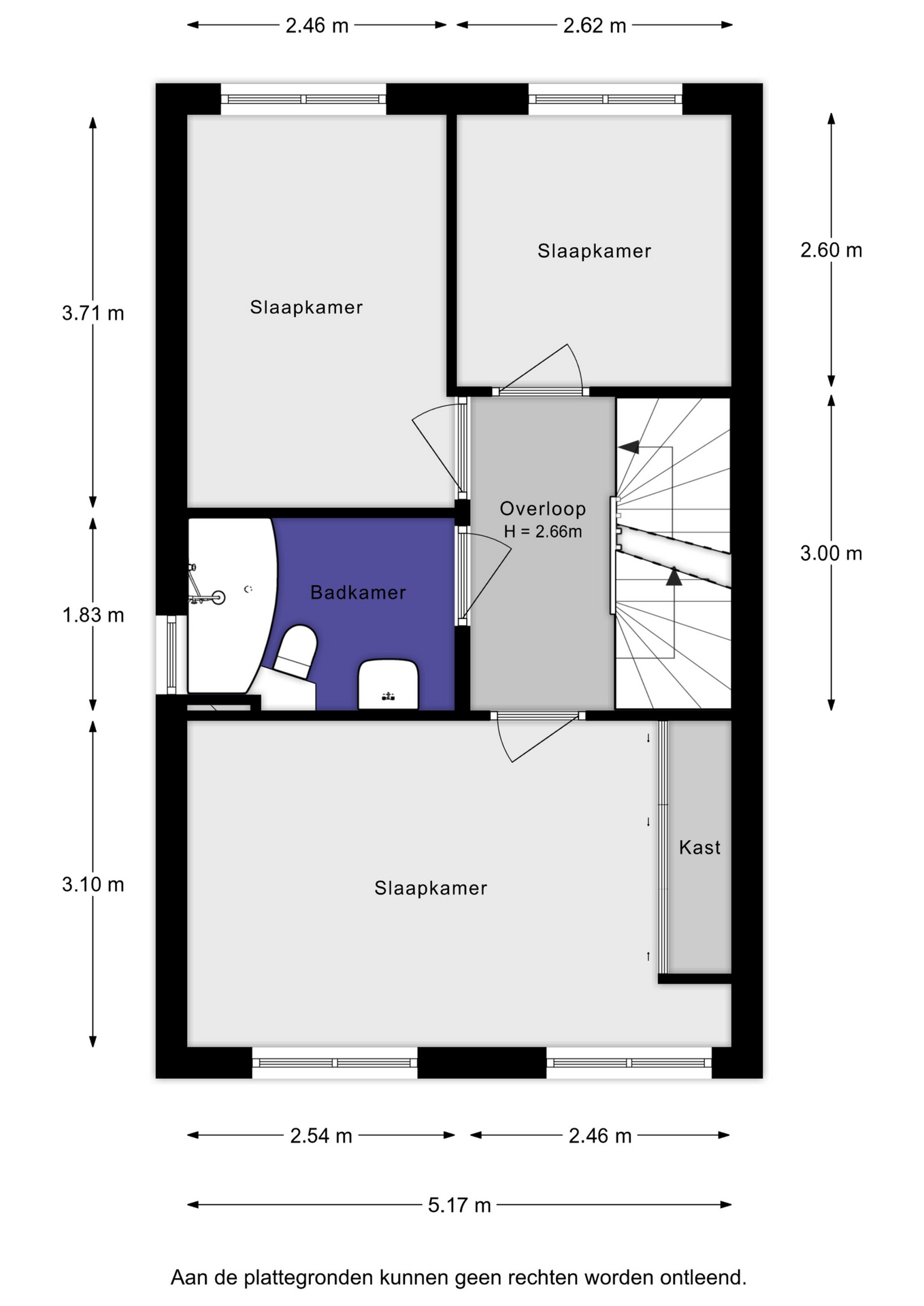 Op deze verdieping bevinden zich drie ruime slaapkamers. De grote slaapkamer aan de voorzijde beslaat de volledige breedte van de woning.