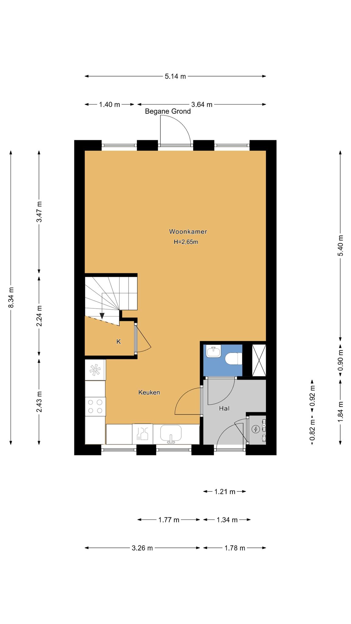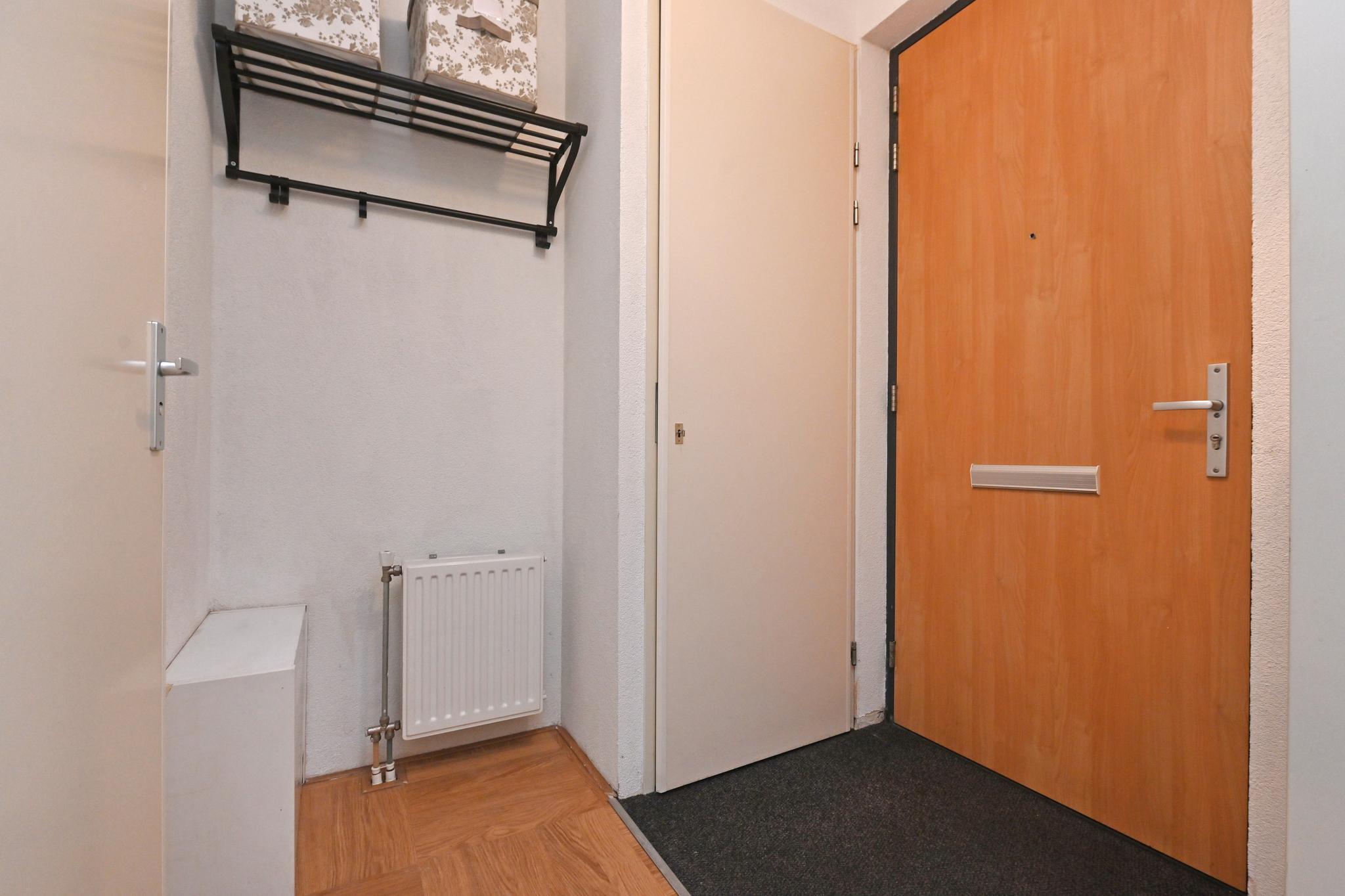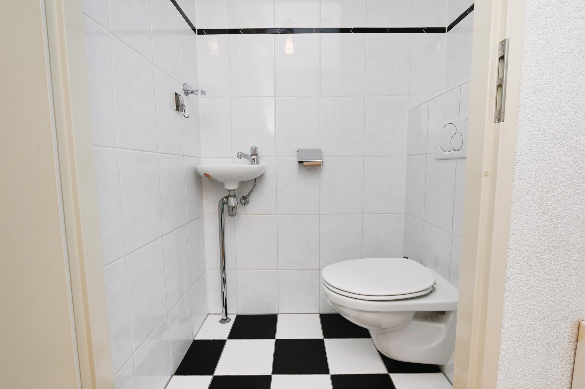 Kom binnen via de hal met garderoberuimte en toegang tot het toilet en de meterkast.