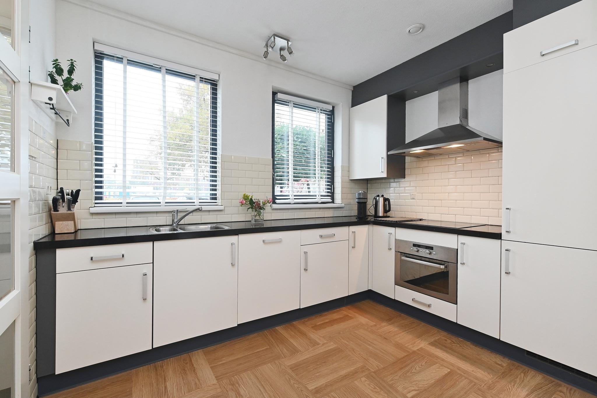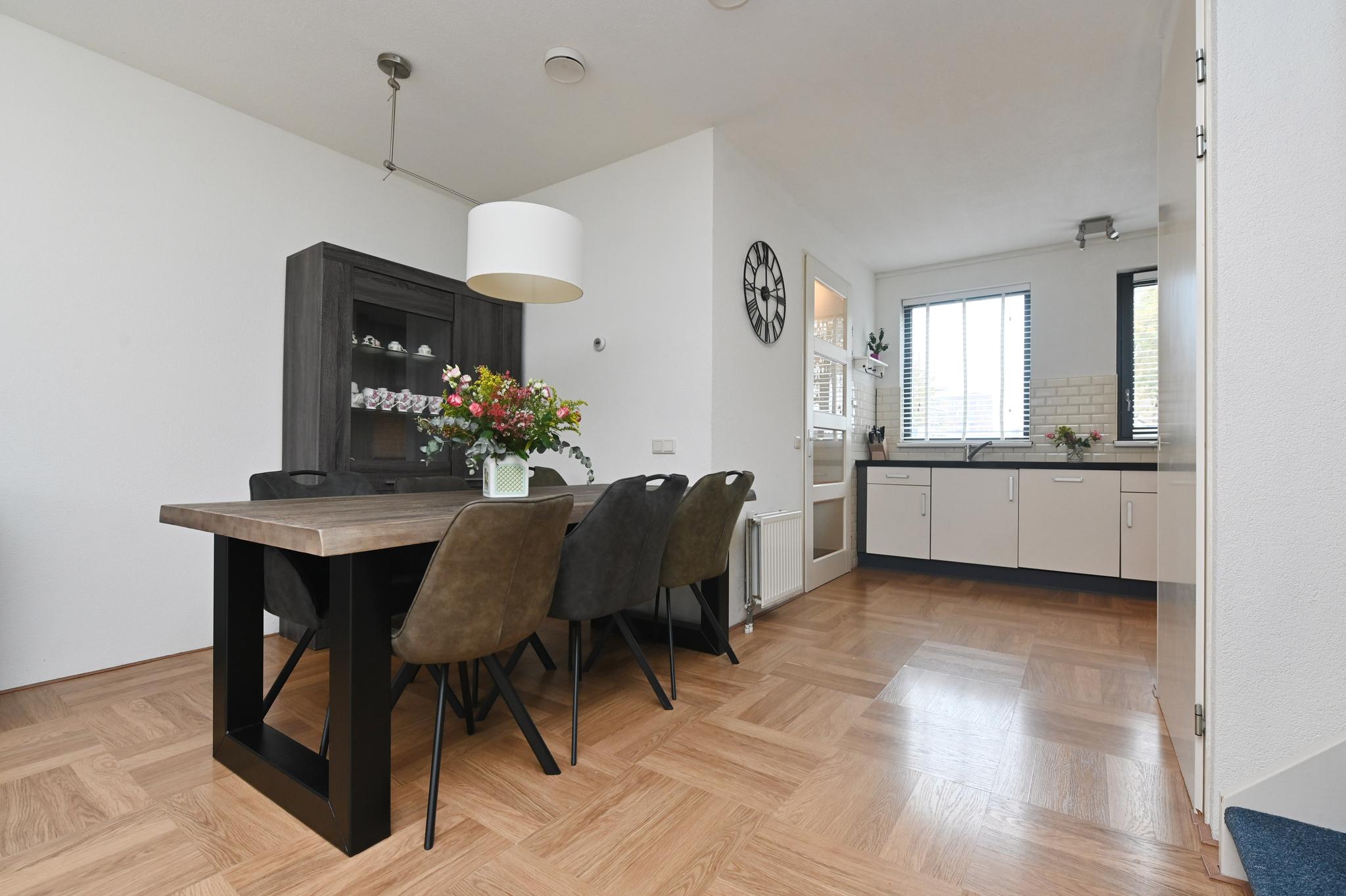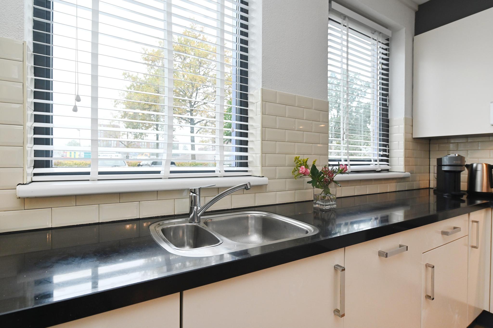 Aan de voorzijde van de woning bevindt zich de moderne keuken, voorzien van alle benodigde inbouwapparatuur en met voldoende werkruimte. Onder de trapopgang is een trapkast, ideaal voor de opbergruimte. De tuingerichte woonkamer is ruim opgezet en biedt toegang tot de tuin. De grote tuin is fraai aangelegd, met sierbestrating en een ruime berging. Een heerlijke plek voor diverse gezellige zithoeken! Ook de voortuin is keurig aangelegd en biedt ruimte voor een zithoek.