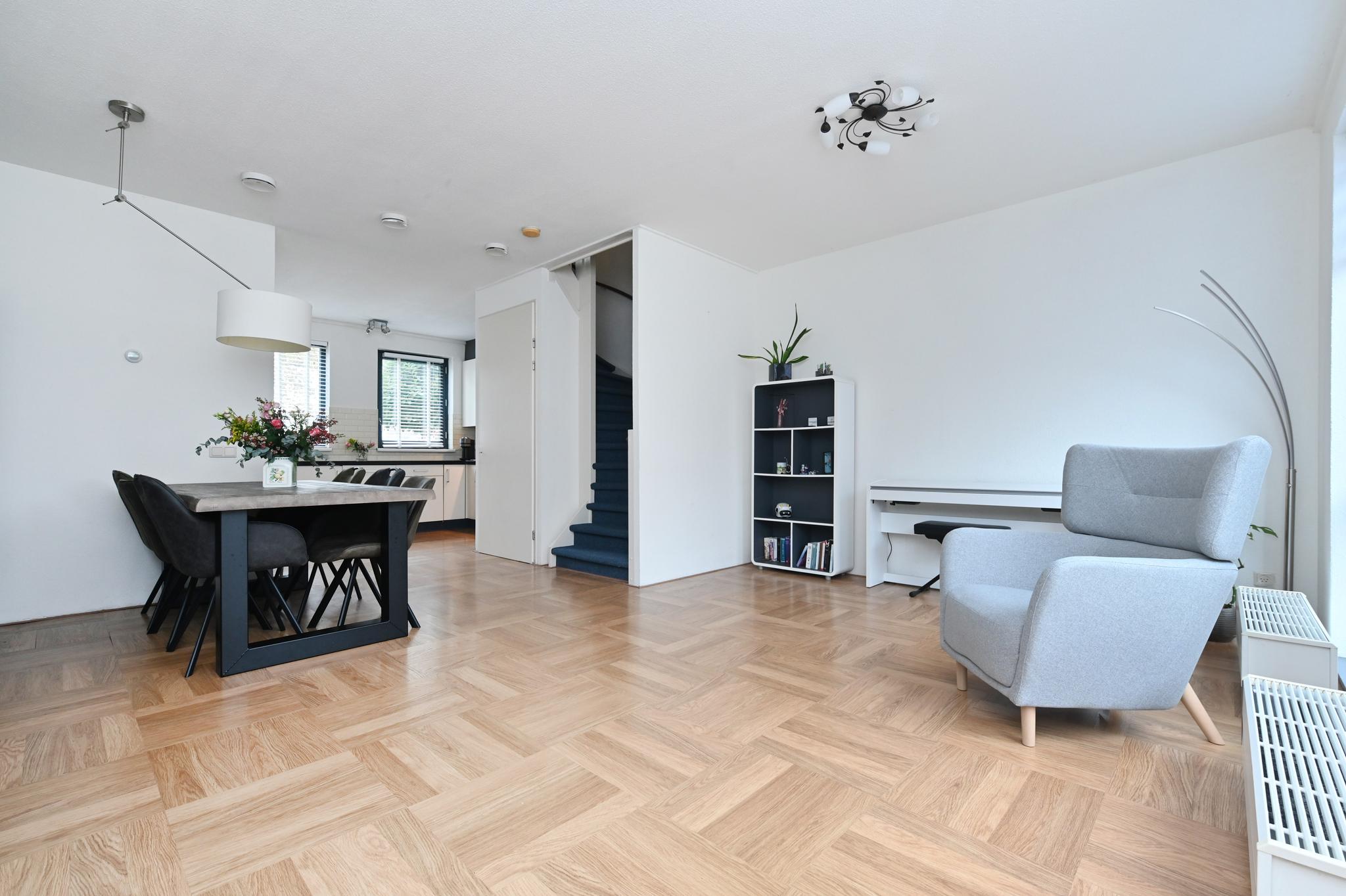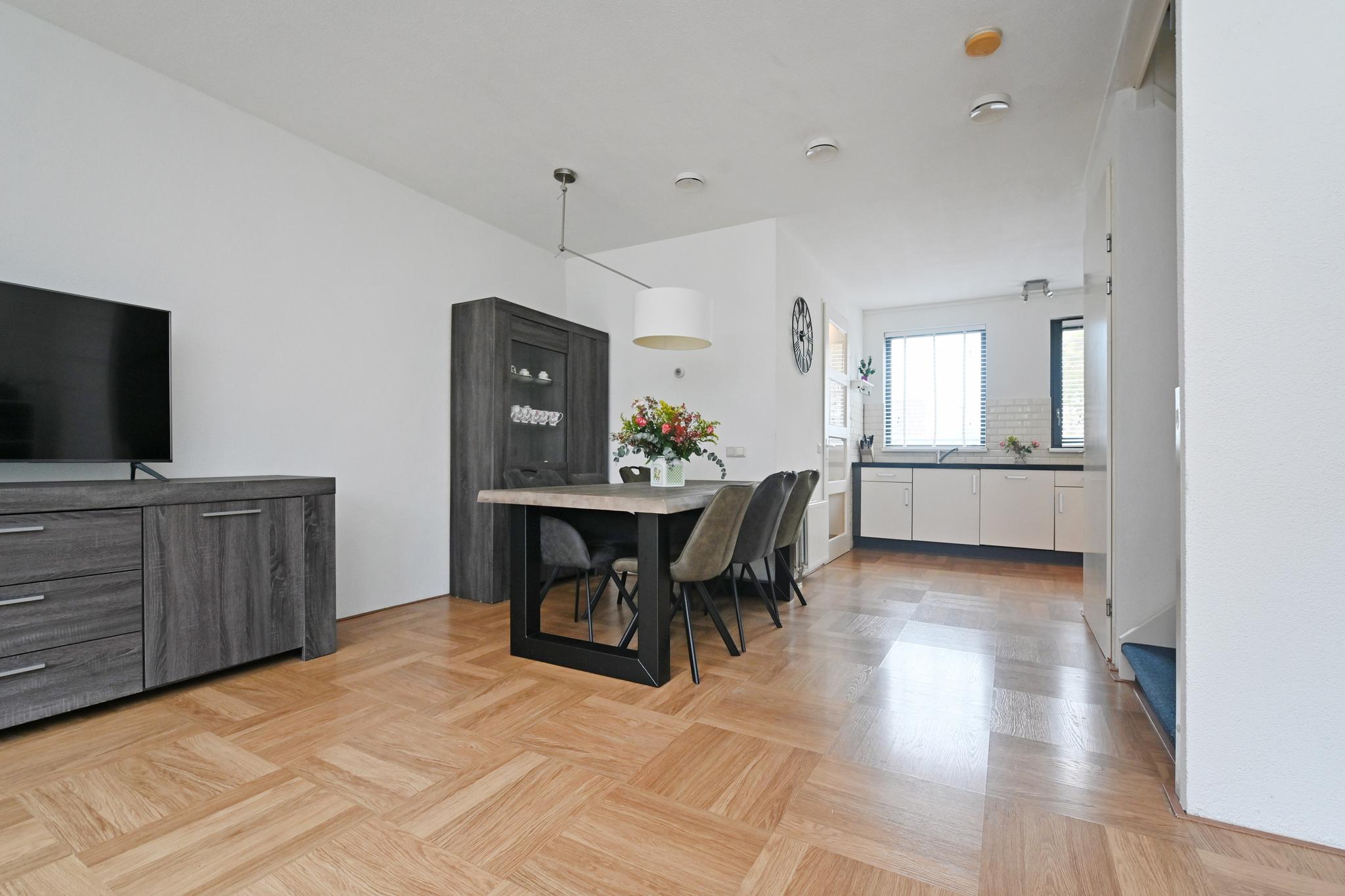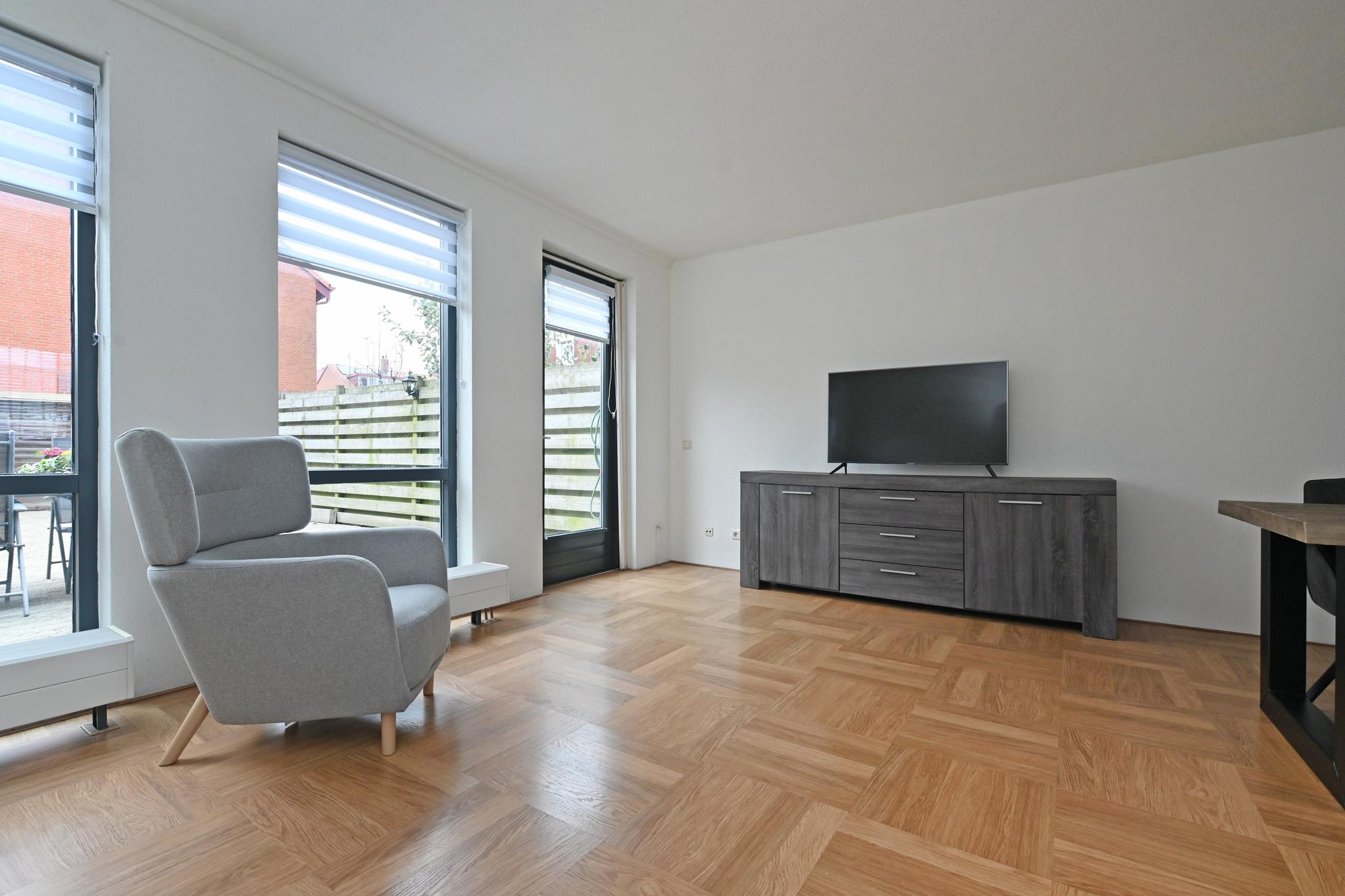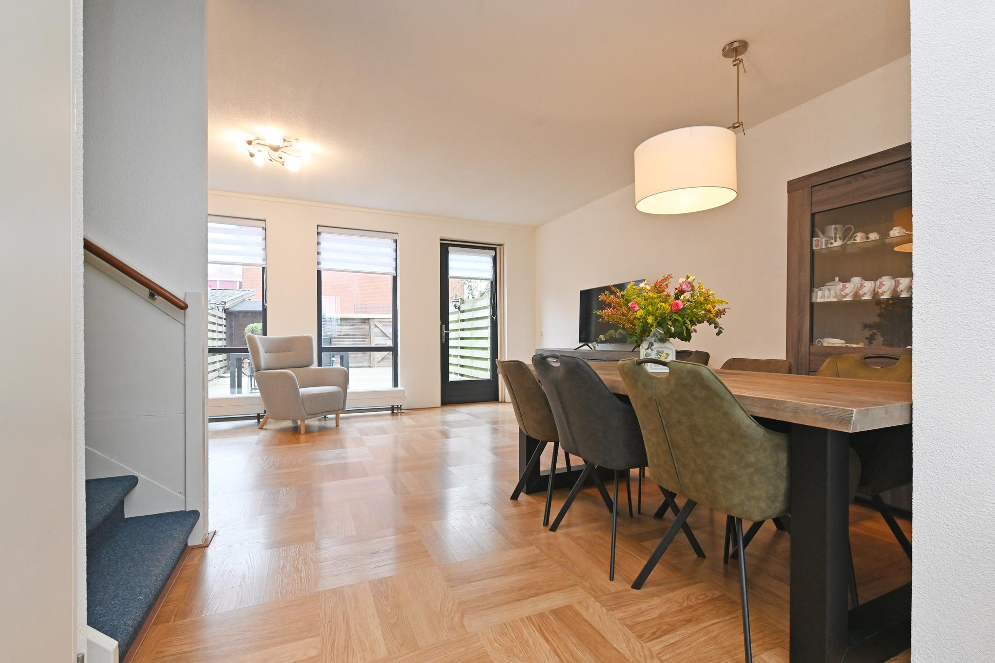 Aan de voorzijde van de woning bevindt zich de moderne keuken, voorzien van alle benodigde inbouwapparatuur en met voldoende werkruimte. Onder de trapopgang is een trapkast, ideaal voor de opbergruimte. De tuingerichte woonkamer is ruim opgezet en biedt toegang tot de tuin. De grote tuin is fraai aangelegd, met sierbestrating en een ruime berging. Een heerlijke plek voor diverse gezellige zithoeken! Ook de voortuin is keurig aangelegd en biedt ruimte voor een zithoek.