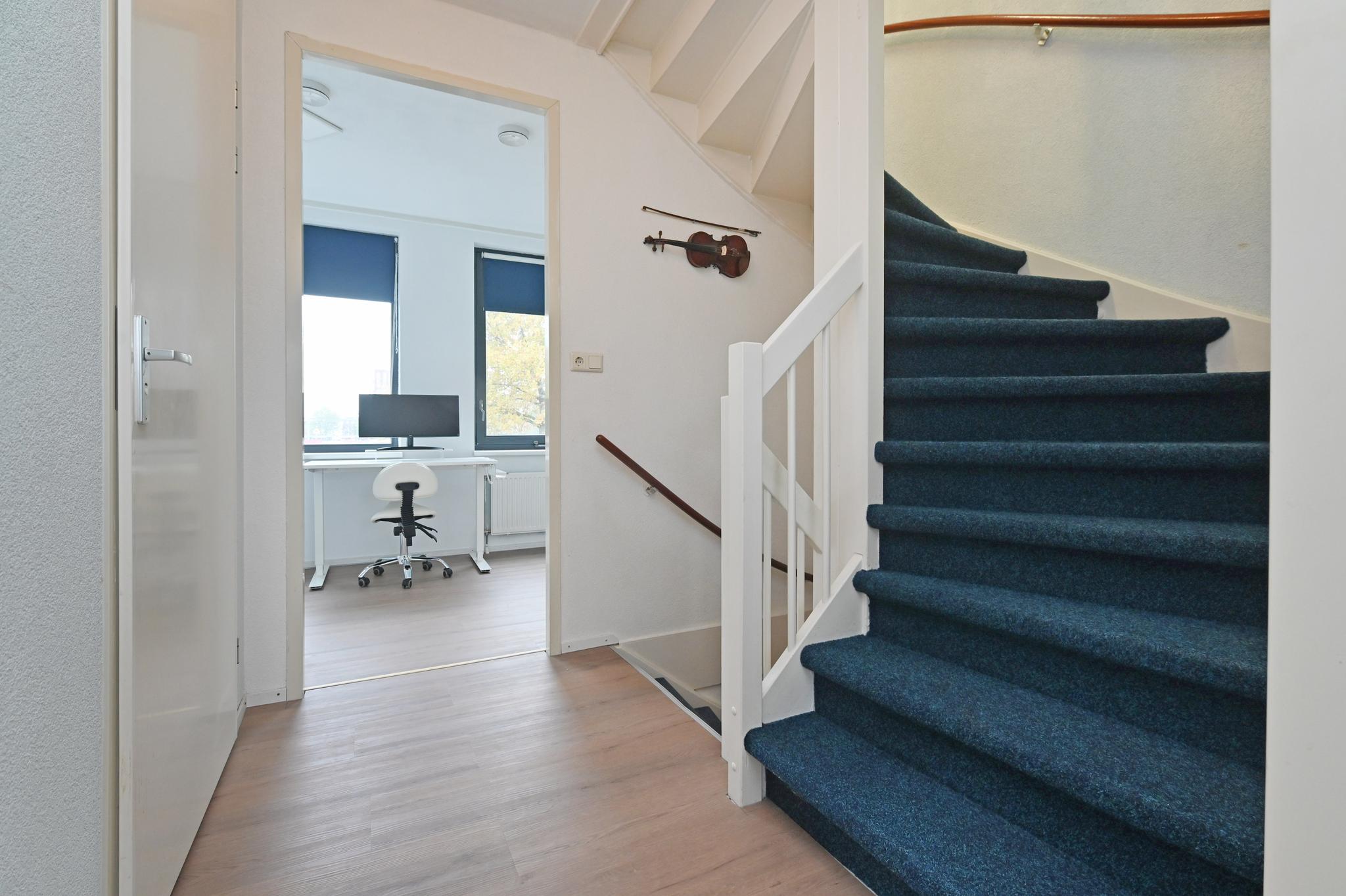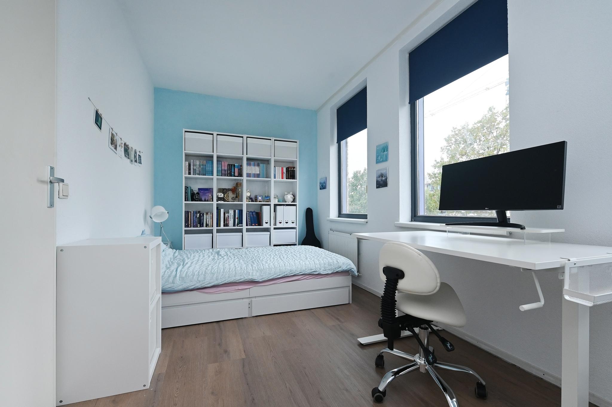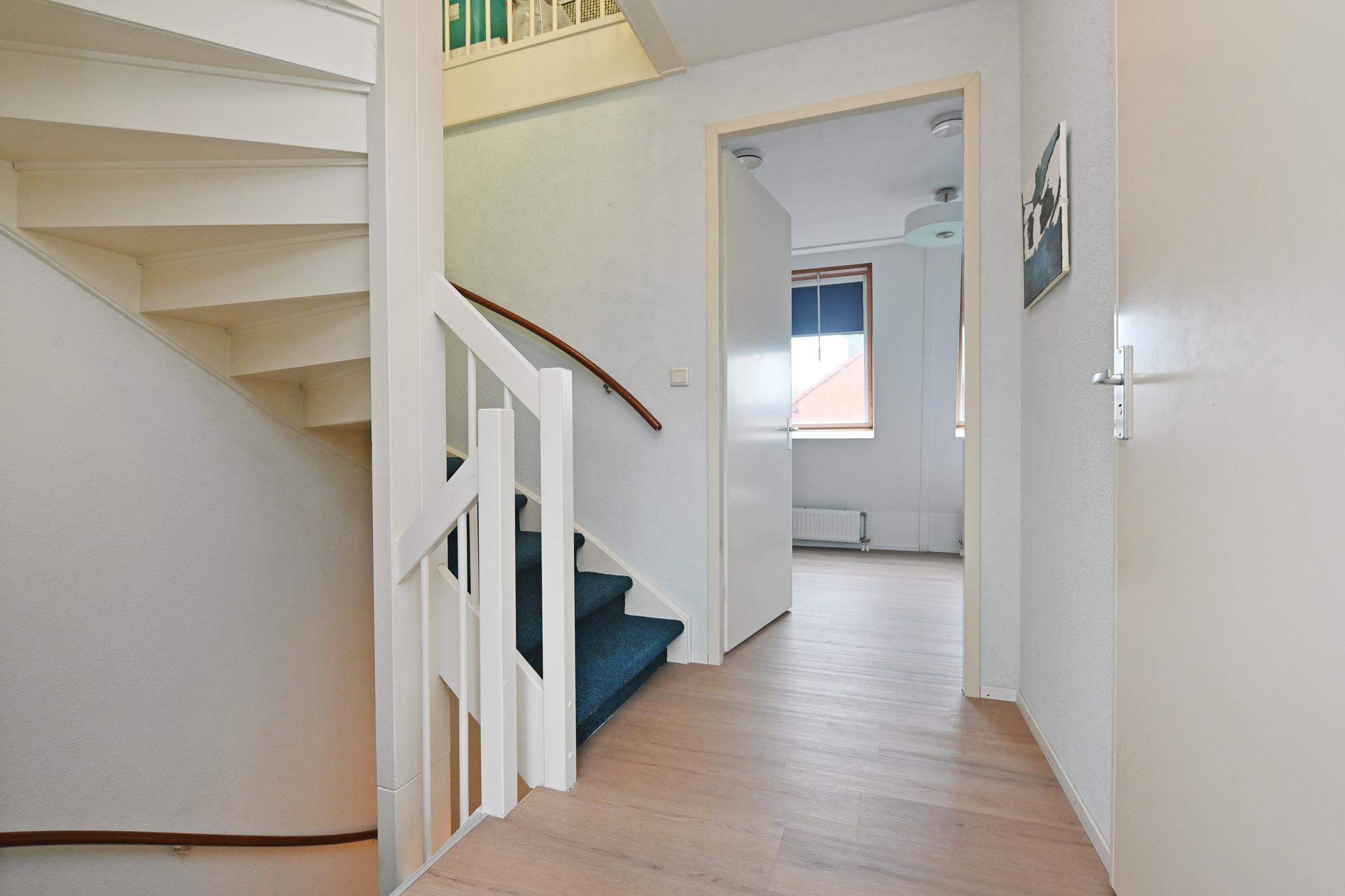 Aan de achterzijde is een ruime overloop met dakraam. Hier zijn de cv-ketel, het WTW-systeem en de wasmachine en drogeraansluiting te vinden. Aan de voorzijde is de derde slaapkamer, met een prachtige hoge nok. Ook deze kamer is voorzien van rolluiken.