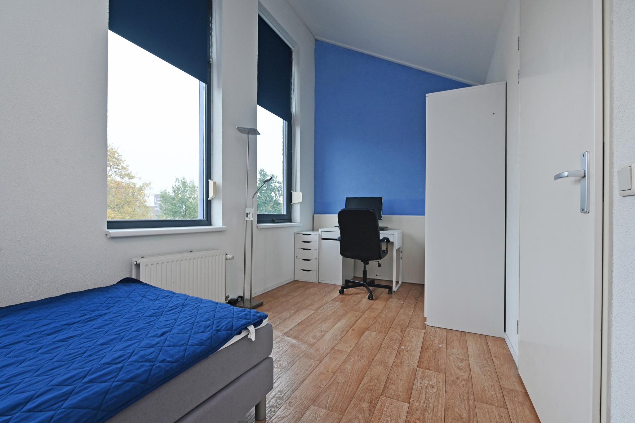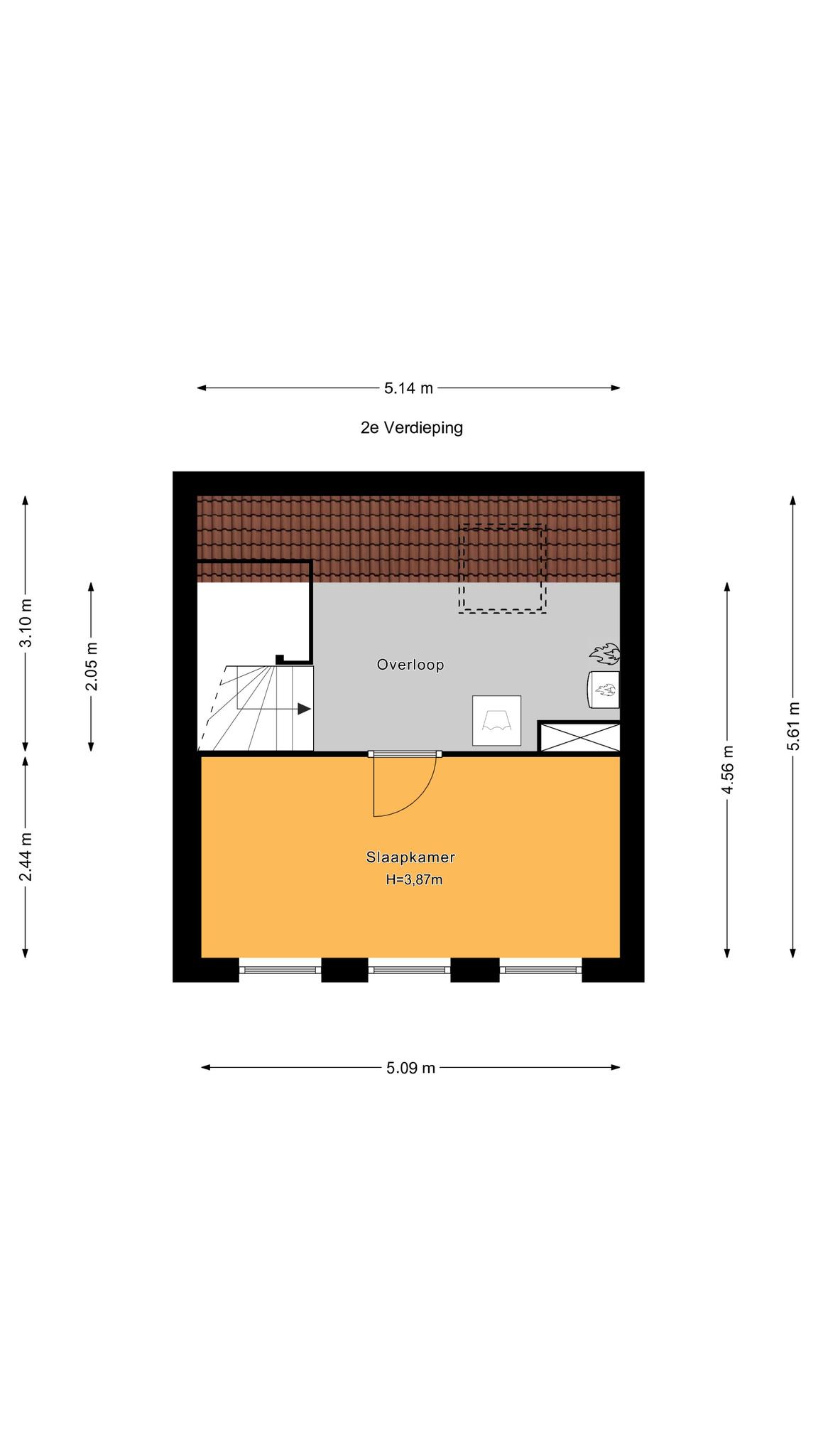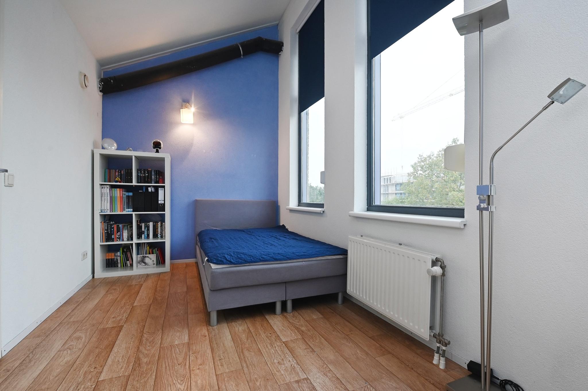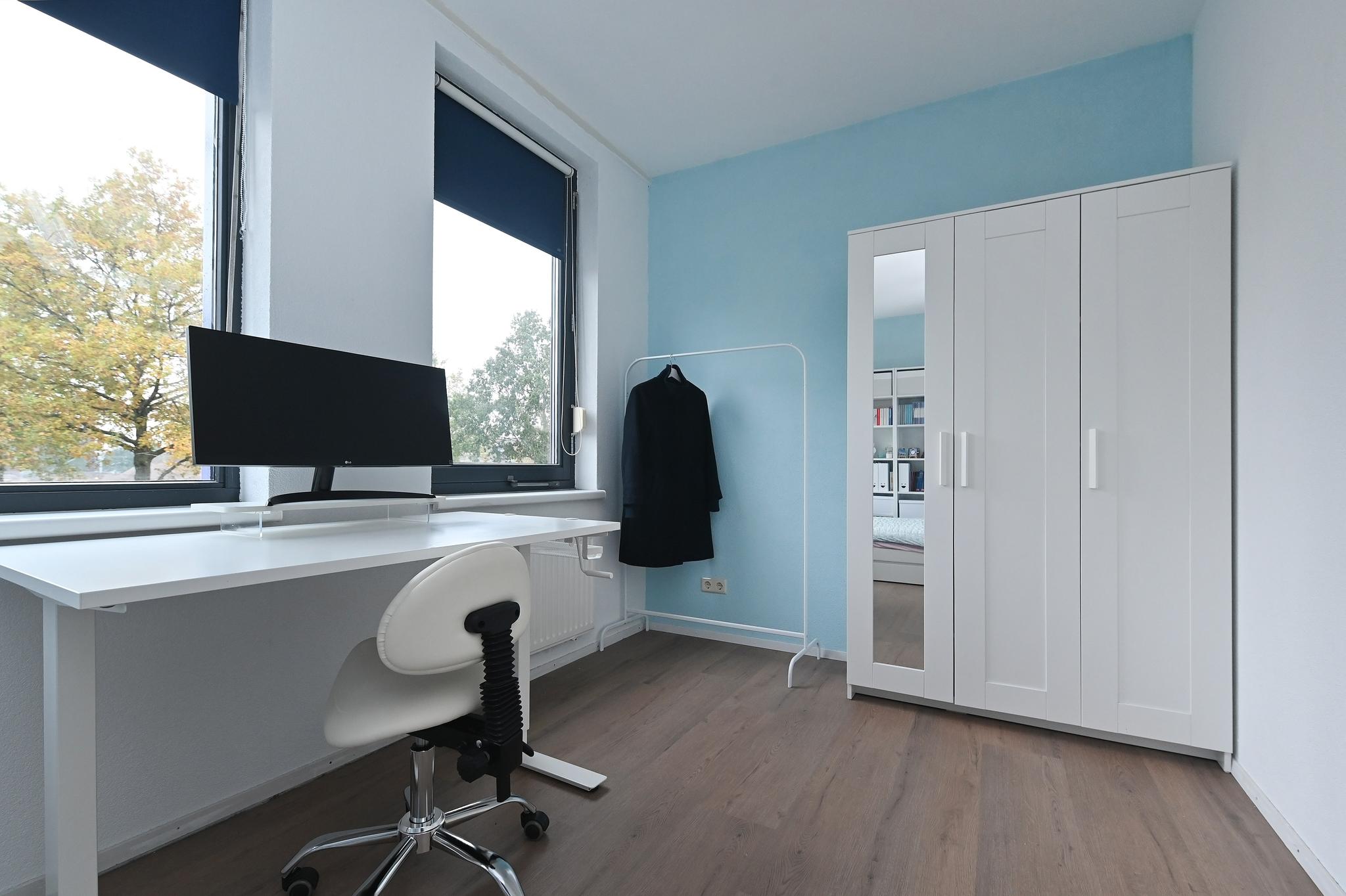 Aan de achterzijde is een ruime overloop met dakraam. Hier zijn de cv-ketel, het WTW-systeem en de wasmachine en drogeraansluiting te vinden. Aan de voorzijde is de derde slaapkamer, met een prachtige hoge nok. Ook deze kamer is voorzien van rolluiken.