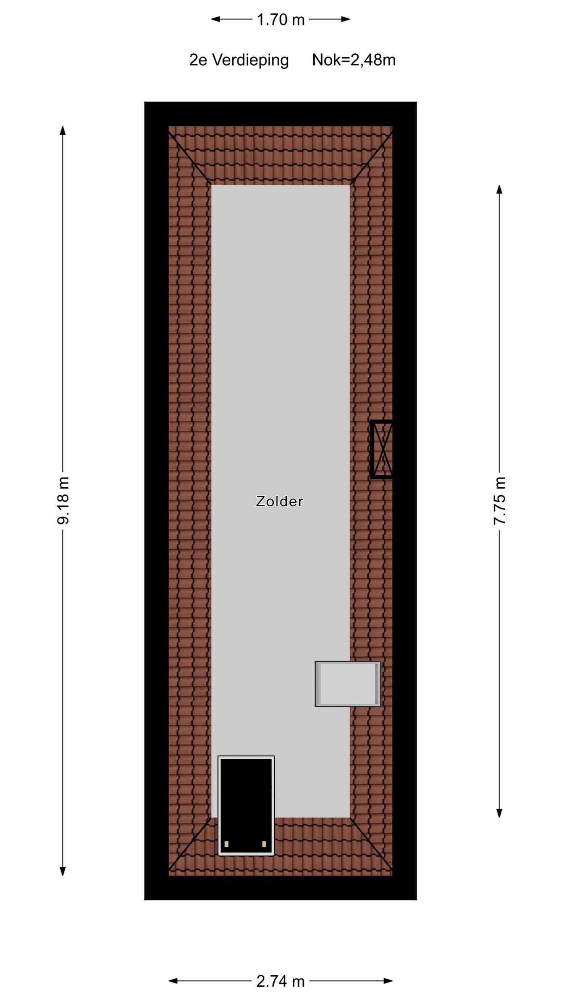 Tot slot biedt de vliering, met een dakraam, de gewenste opbergruimte.