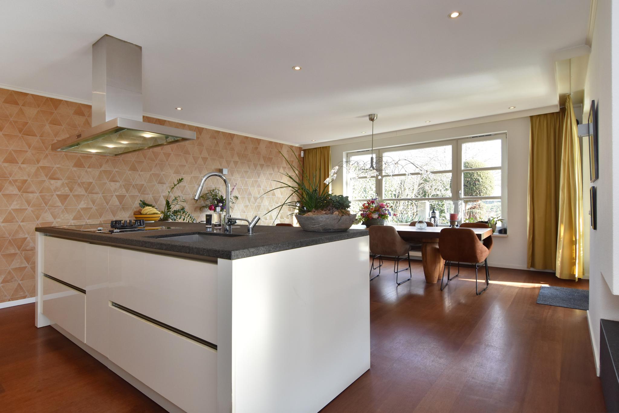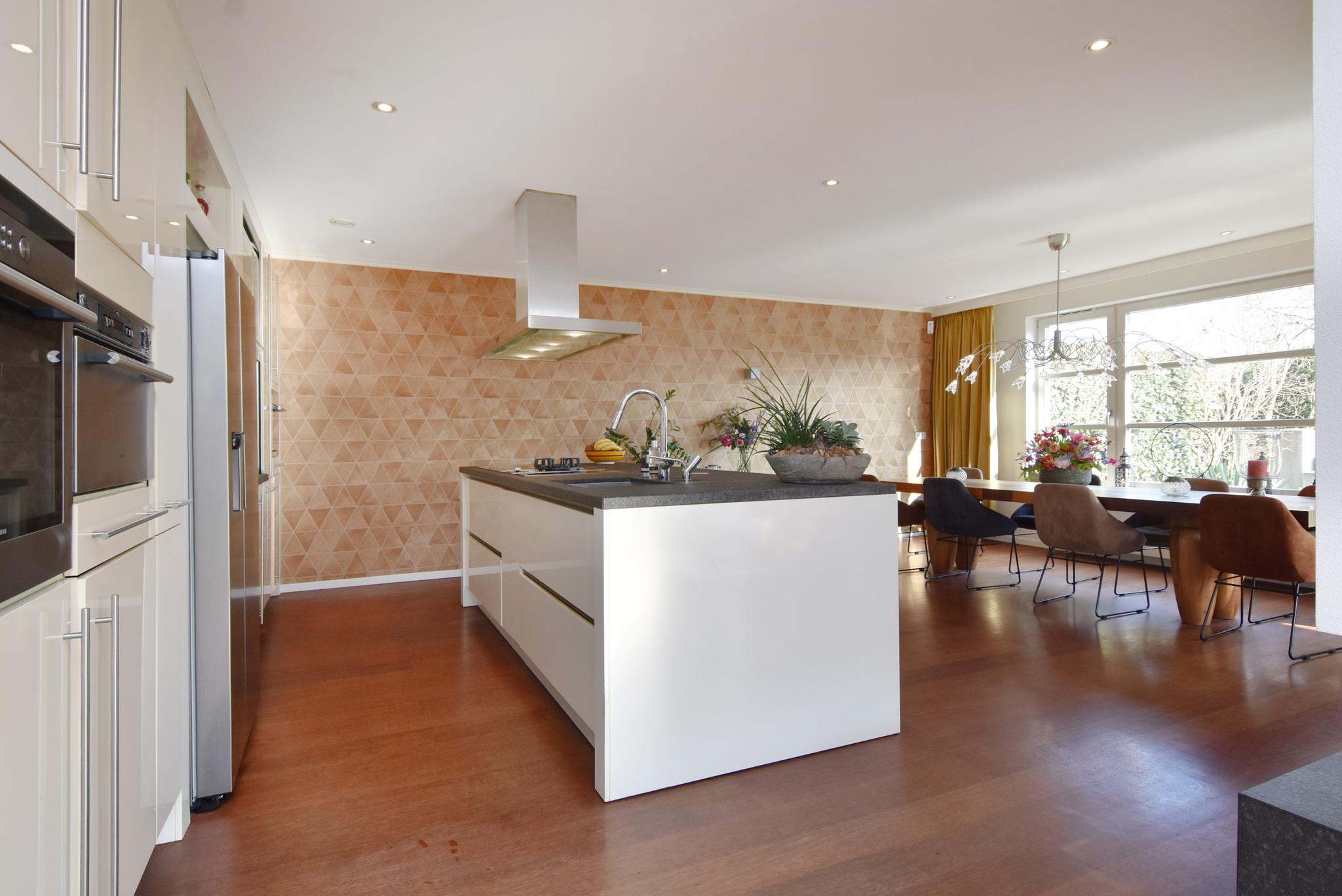 De moderne keuken met stijlvol kookeiland is tuingericht en uitgerust met uitgebreide inbouwapparatuur. De ruime opzet en doordachte indeling zorgen voor het perfecte samenspel van functionaliteit en luxe. Vanuit de keuken is de serre toegankelijk, een afsluitbare ruimte om ook tijdens de koudere dagen van het buitenleven te genieten!