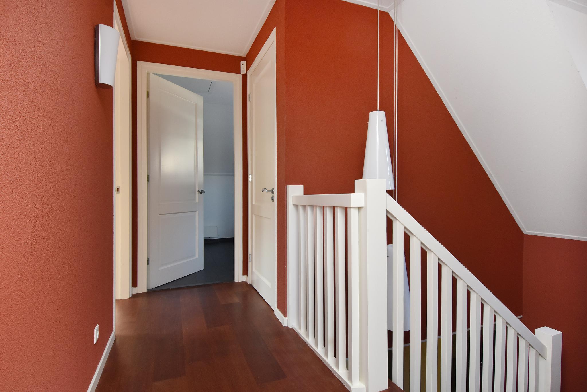 Ook deze verdieping straalt weer luxe en ruimte uit. De overloop heeft een prachtige vide en biedt toegang tot de vertrekken. De verdieping is verdeeld over drie slaapkamers. Aan de voorzijde bevindt zich de slaapkamer met de wasmachine aansluiting en toegang tot de vliering.