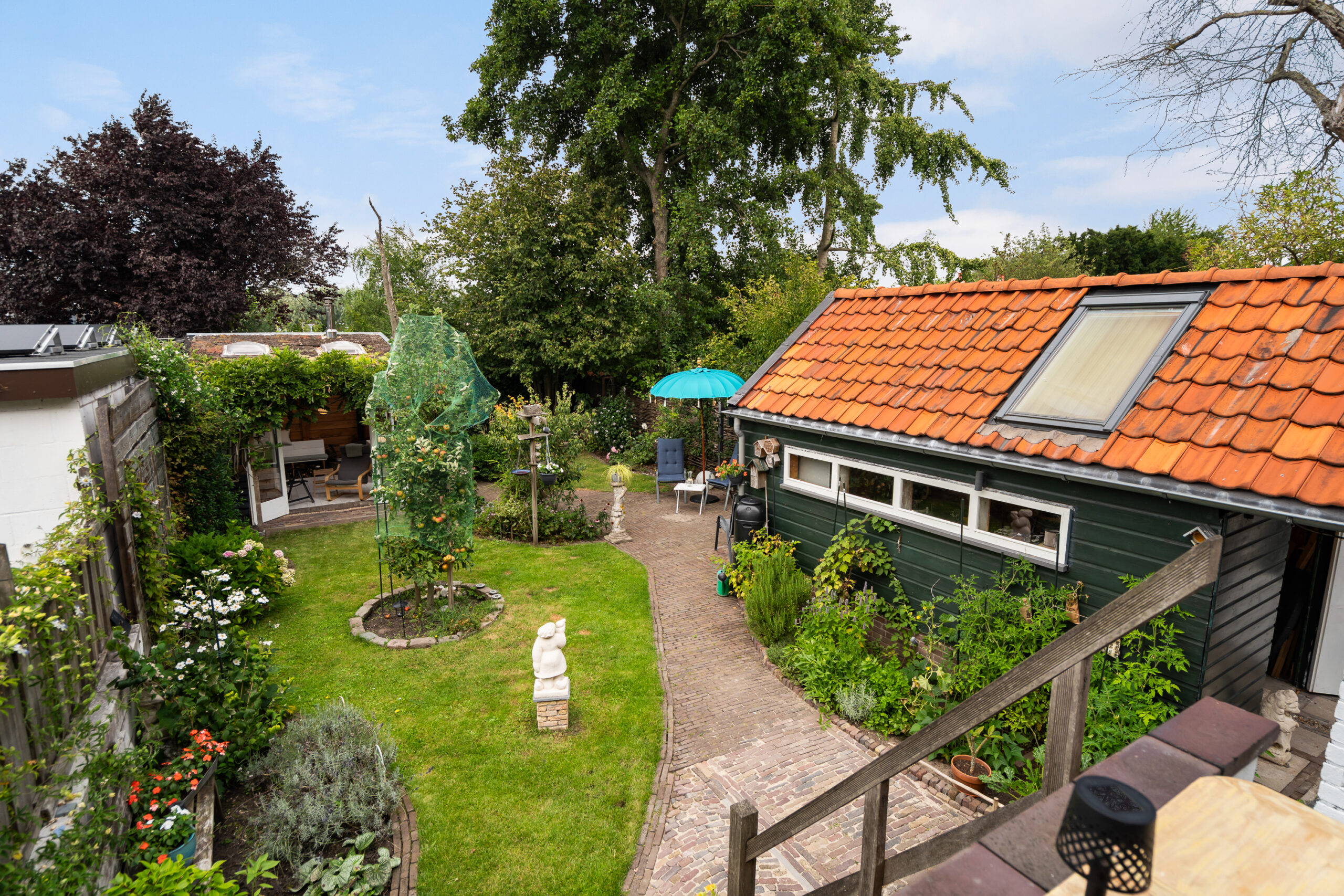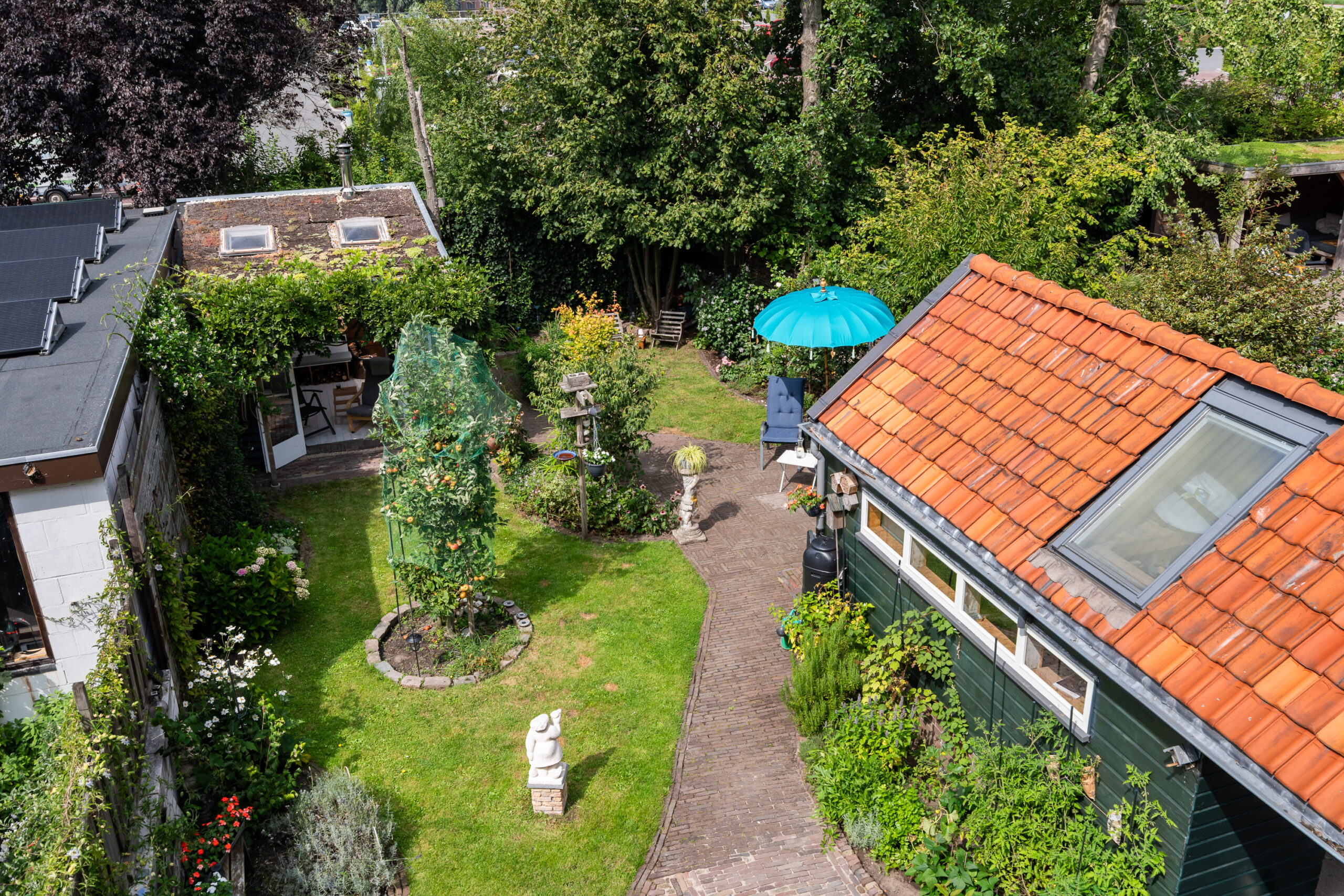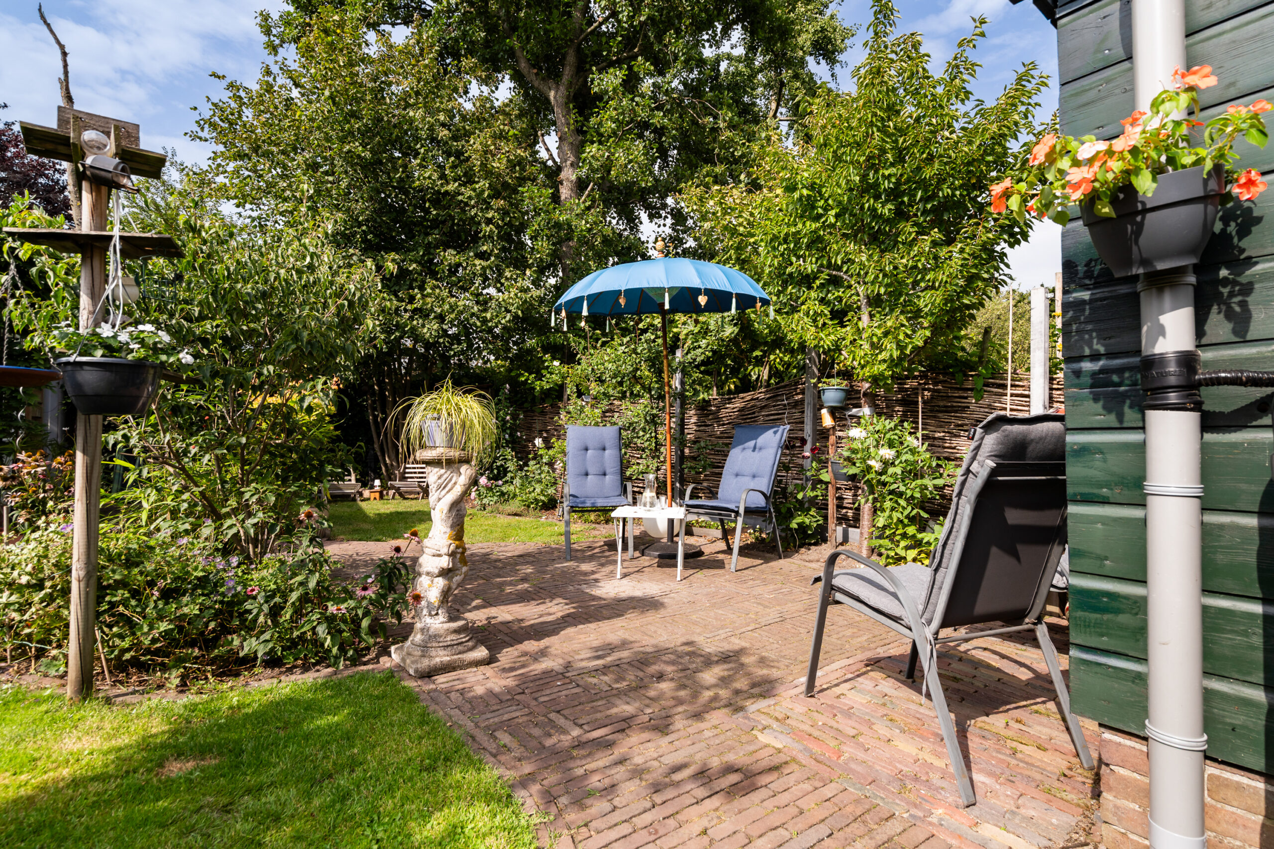 Wat een heerlijke tuin! De fraai aangelegde tuin is ingericht met diverse terrassen en zithoeken, waarbij privacy centraal staat. In de zijtuin is parkeerruimte voor auto’s en een oplaadpunt voor fietsen. De berging in de tuin is momenteel ingericht als werkruimte, ideaal voor de echte hobbyist of opslag. Achterin de tuin staat een sfeervol tuinhuis met houtkachel. Dé perfecte plek om het hele jaar door van de tuin te genieten, ook tijdens koudere avonden.