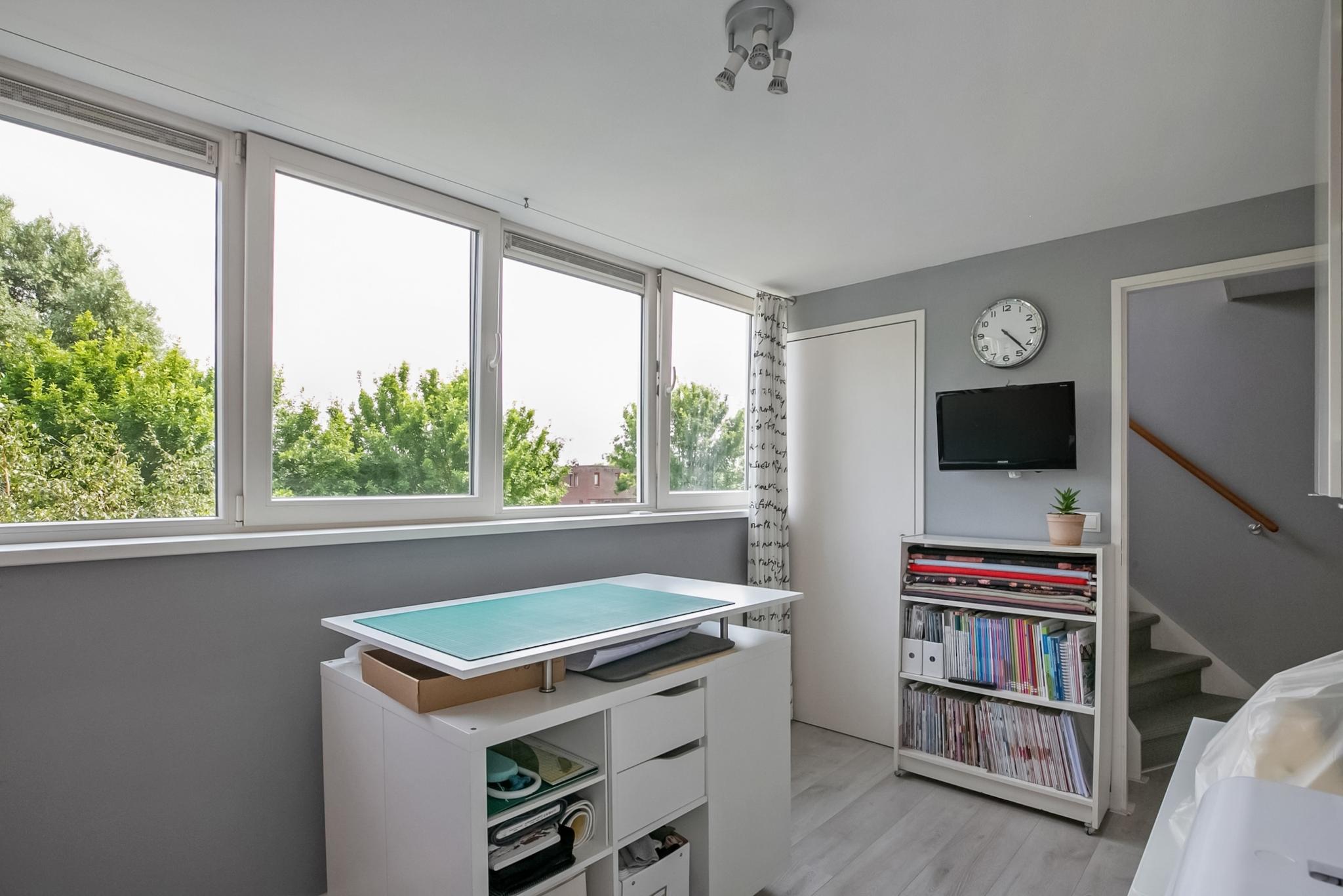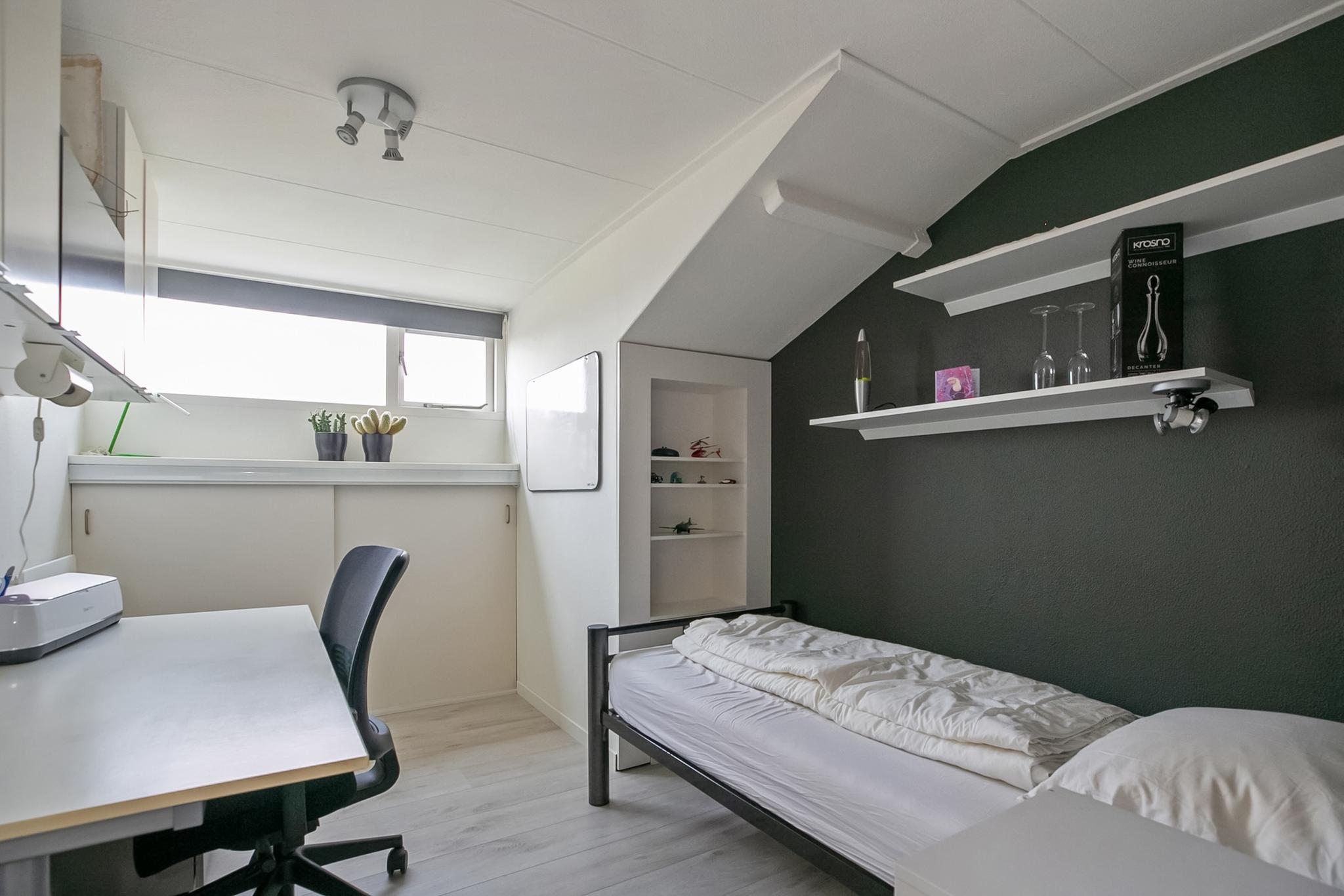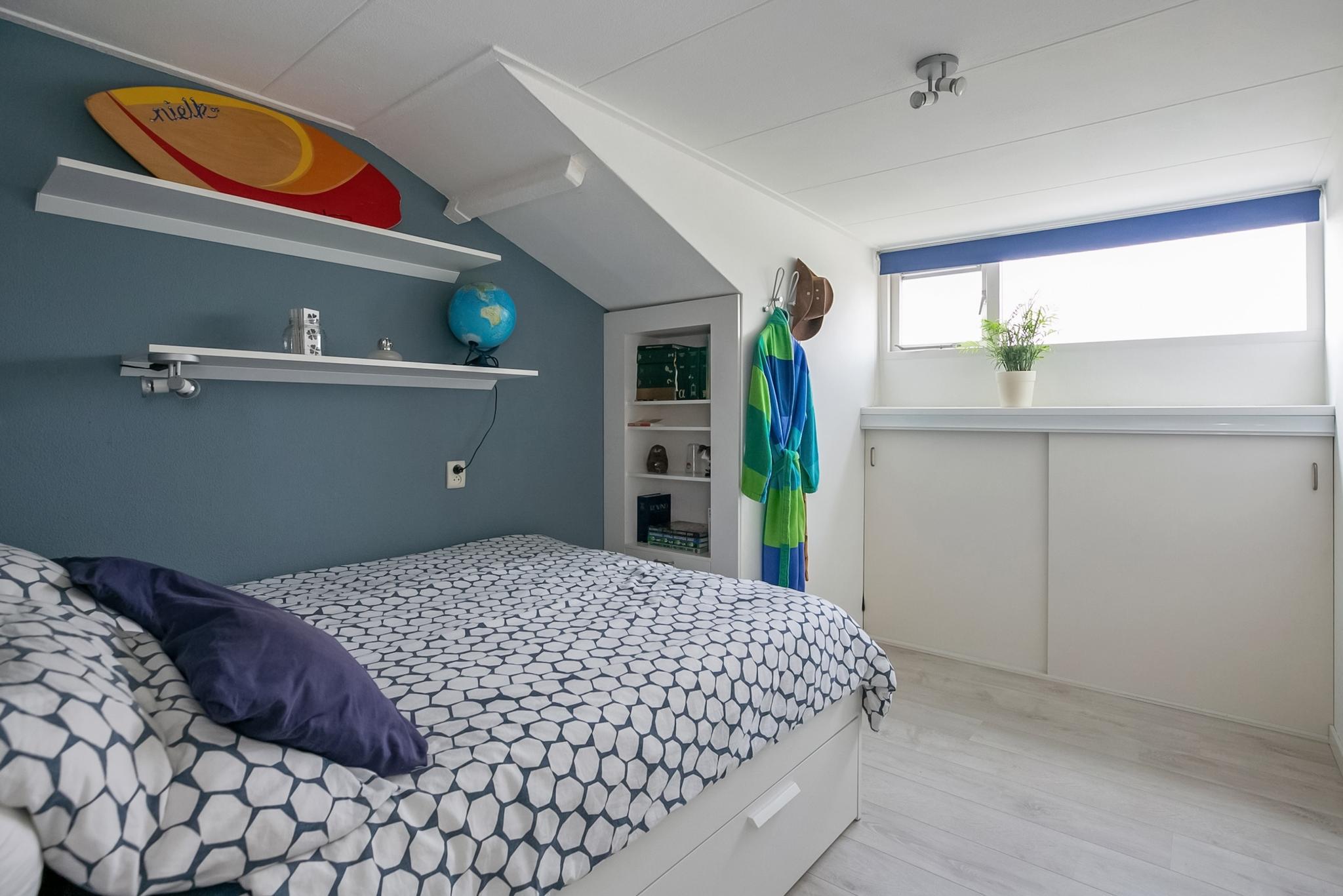 2e verdieping: Deze etage is aanmerkelijk vergroot door de uitbouw aan voorzijde, het erbij betrekken van voormalig dakterras waardoor er op deze etage maar liefst drie slaapkamers zijn gerealiseerd. Ruimtelijk goed ingericht, mede door dakkapel aan achterzijde. Aparte ruimte voor opstelling was-apparatuur en cv installatie.
