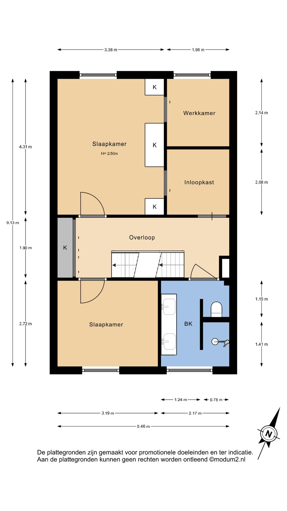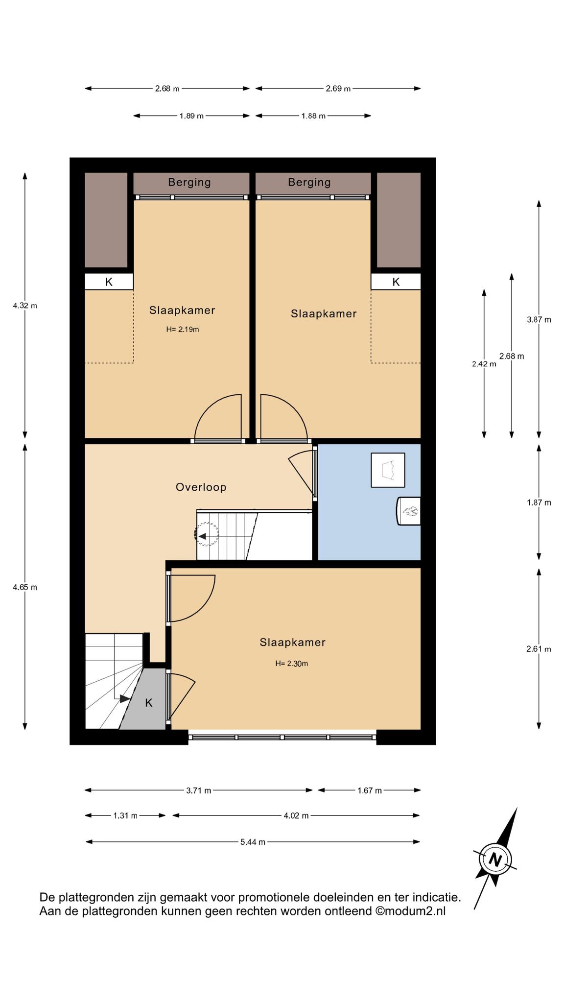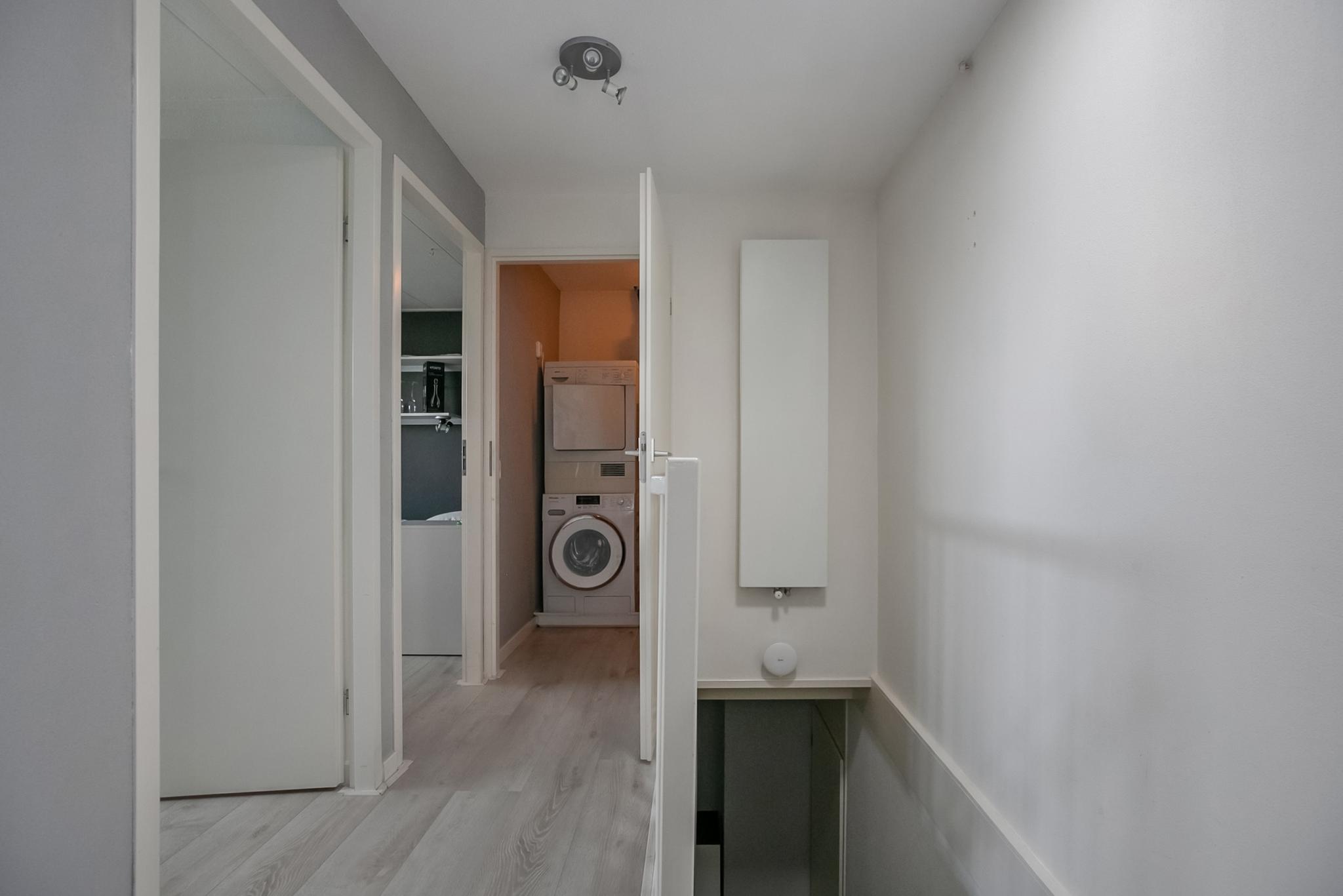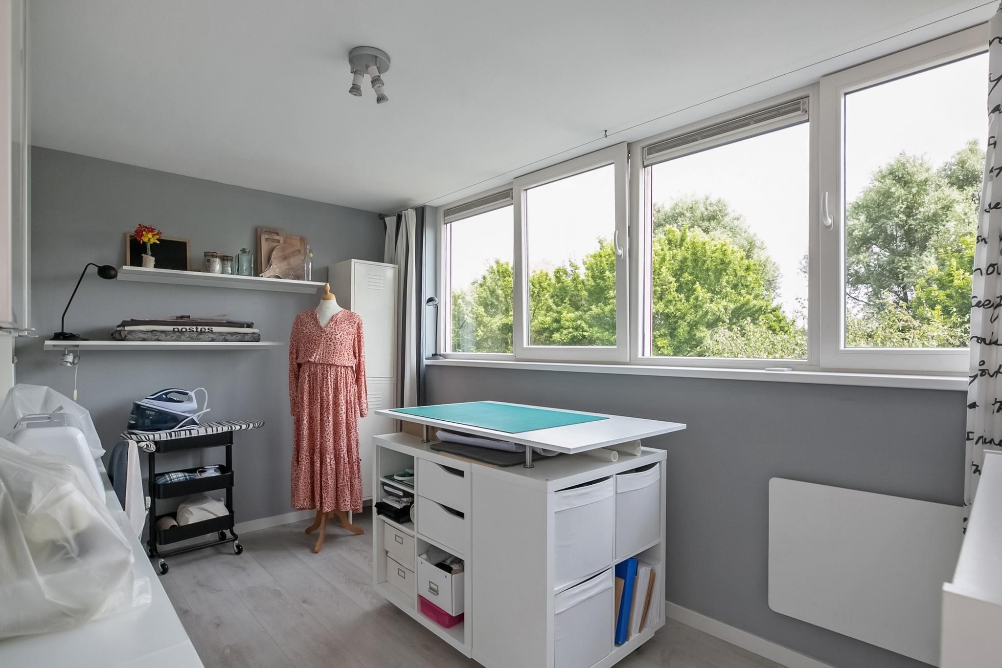 2e verdieping: Deze etage is aanmerkelijk vergroot door de uitbouw aan voorzijde, het erbij betrekken van voormalig dakterras waardoor er op deze etage maar liefst drie slaapkamers zijn gerealiseerd. Ruimtelijk goed ingericht, mede door dakkapel aan achterzijde. Aparte ruimte voor opstelling was-apparatuur en cv installatie.
